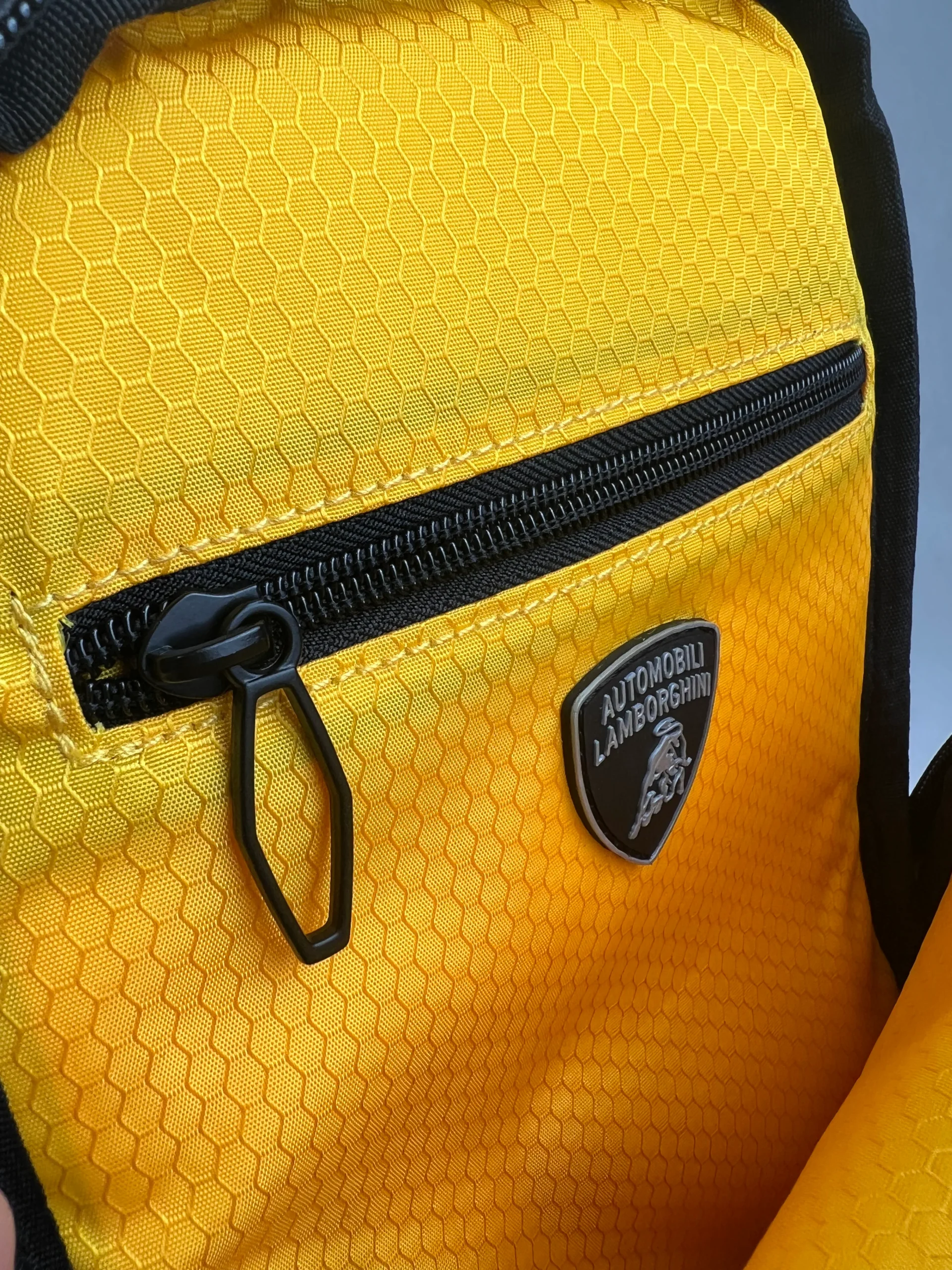Bodybag de la marque Automobili Lamborghini Ce sac est équipé d’une fermeture zippée principale, avec une poche magnétique à l’avant et à l’arrière. À l’intérieur, il dispose d’une poche zippée. Une pochette de protection est fournie avec ce sac. Matières : Polyuréthane / Neoprene