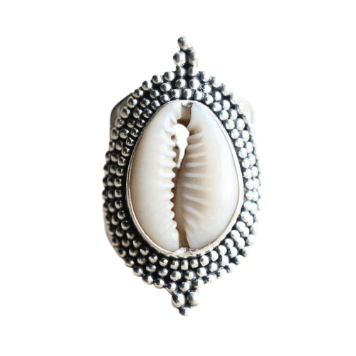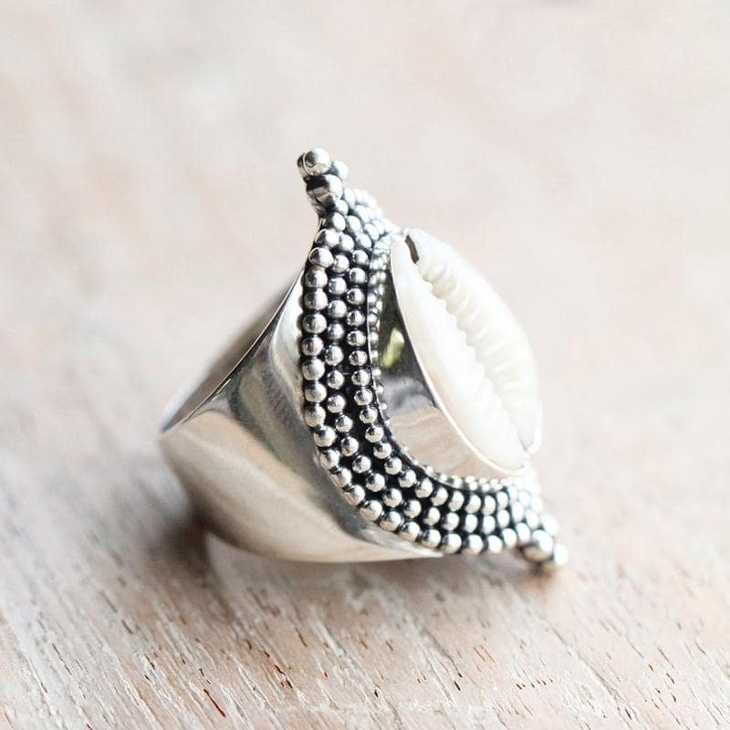 Une finition traditionnelle de choix avec cette Bague Cauri Argent.