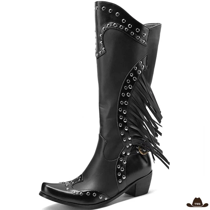 Les bottes de cowboy chic sont un classique élégant et incontournable du style cowgirl. Fabriquées à la main en simili cuir, elles se démarquent par leur découpe indémodable et leurs franges symboliques, au caractère western.