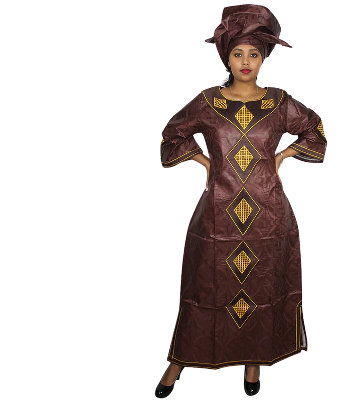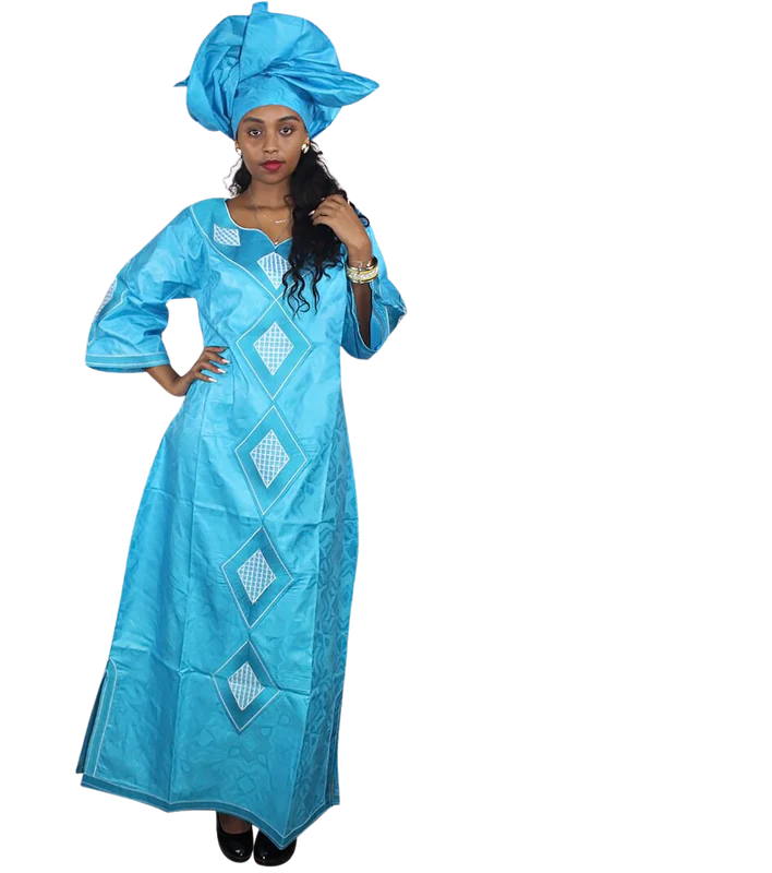 Dans ce Boubou Femme Africaine Avec Turban, vous atteindrez les sommets de l’élégance africaine. La richesse du bazin finement travaillé associée à la qualité de la broderie donnent à ce vêtement un caractère de solennité qui le rendent idéal pour les grandes cérémonies et les fêtes. Sa couture ample le rend confortable et pratique pour vos sorties même si elles doivent mettre long.