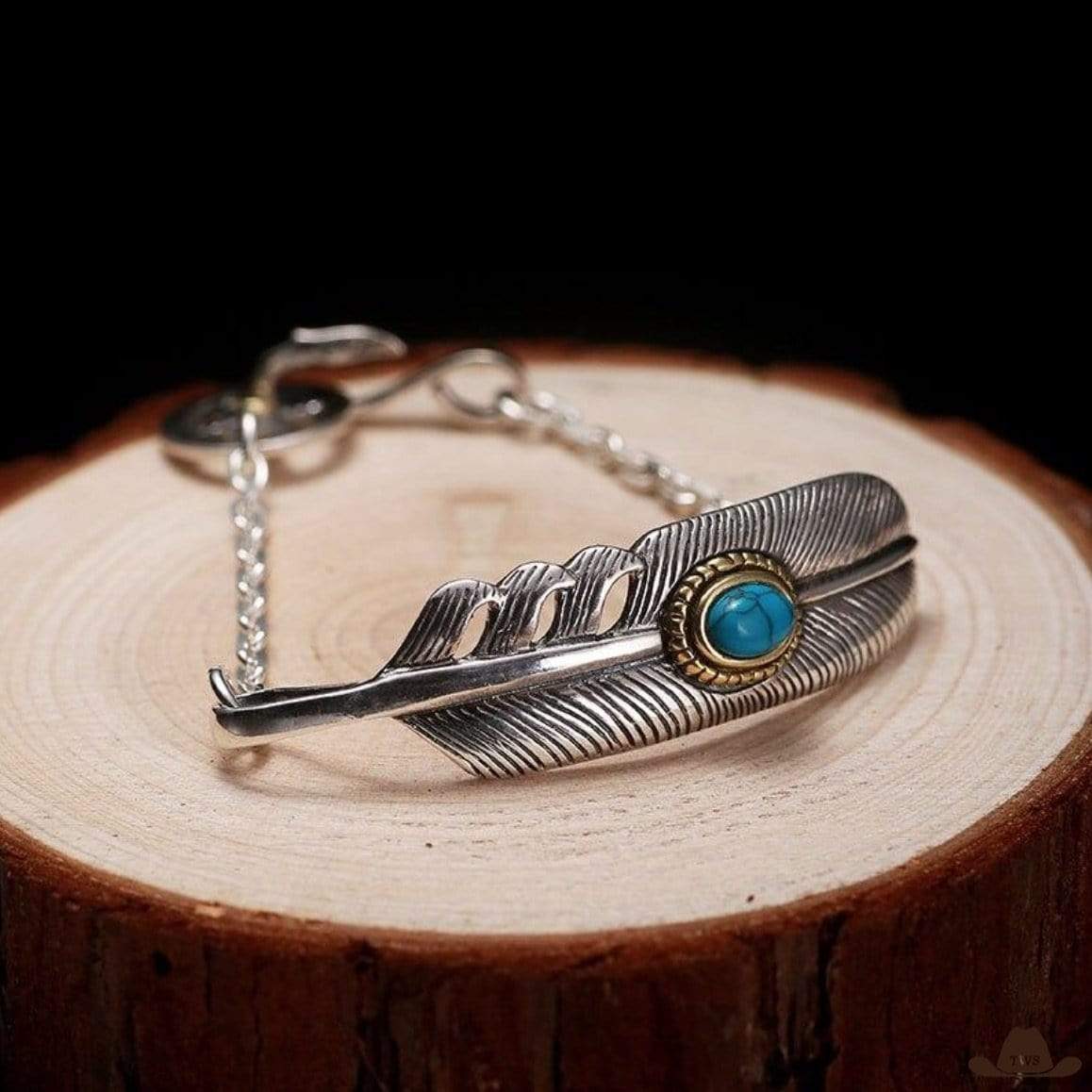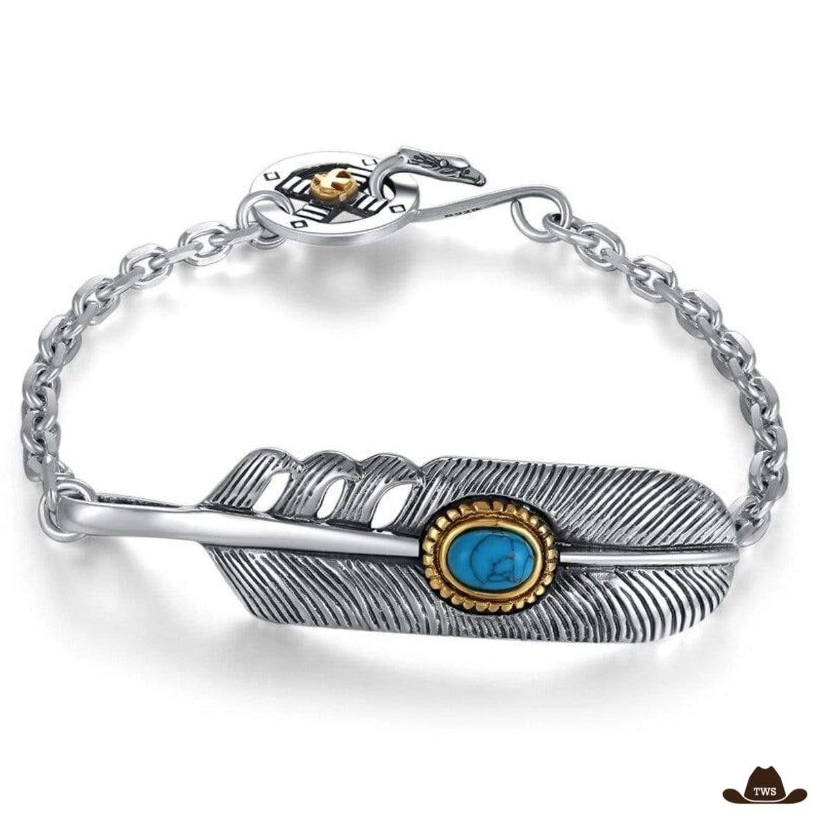 Le bracelet country est un modèle unique et authentique, au style country-western inimitable. Conçu en argent massif 925, il se distingue de par sa plume d’aigle royal aux détails raffinés et son subtil mélange doré et turquoise, pour une apparence country irrésistible.