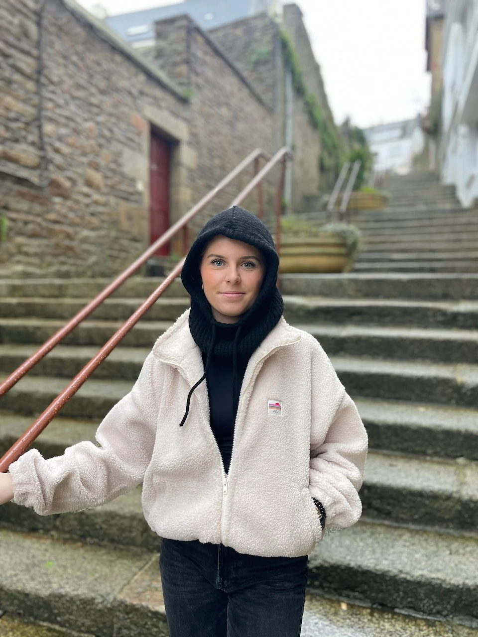 Cagoule en maille avec réglage ajustable, idéale pour rester au chaud tout en gardant un look tendance.