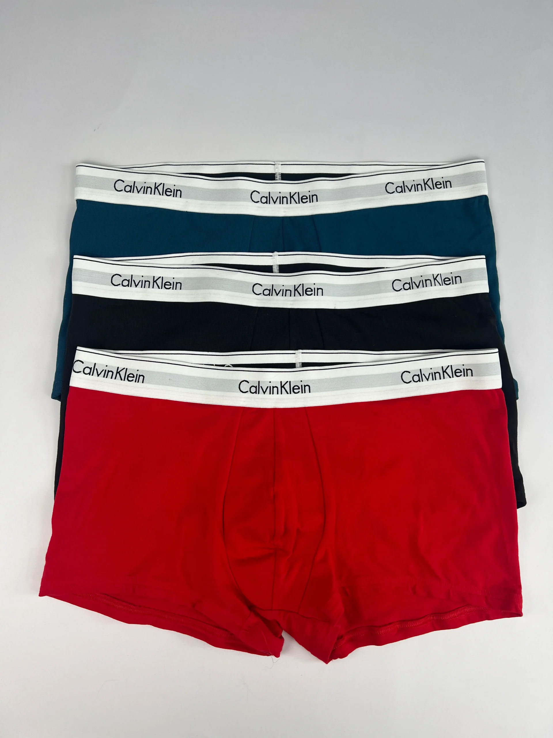 Caleçon de la marque Calvin Klein modèle Trunks. Boîte de 3 trunks. Matière: 95% Coton / 5% Élasthanne