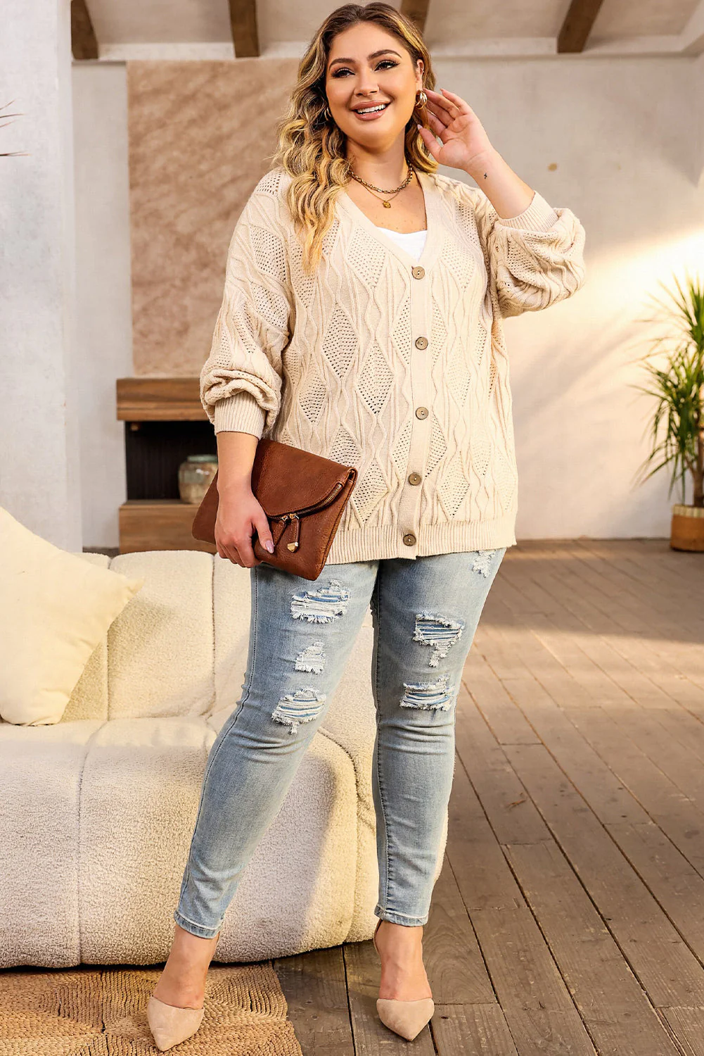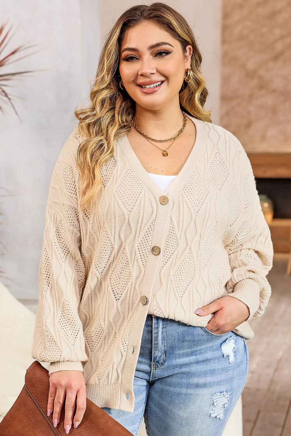Cardigan Tricoté Creux de Grande Taille