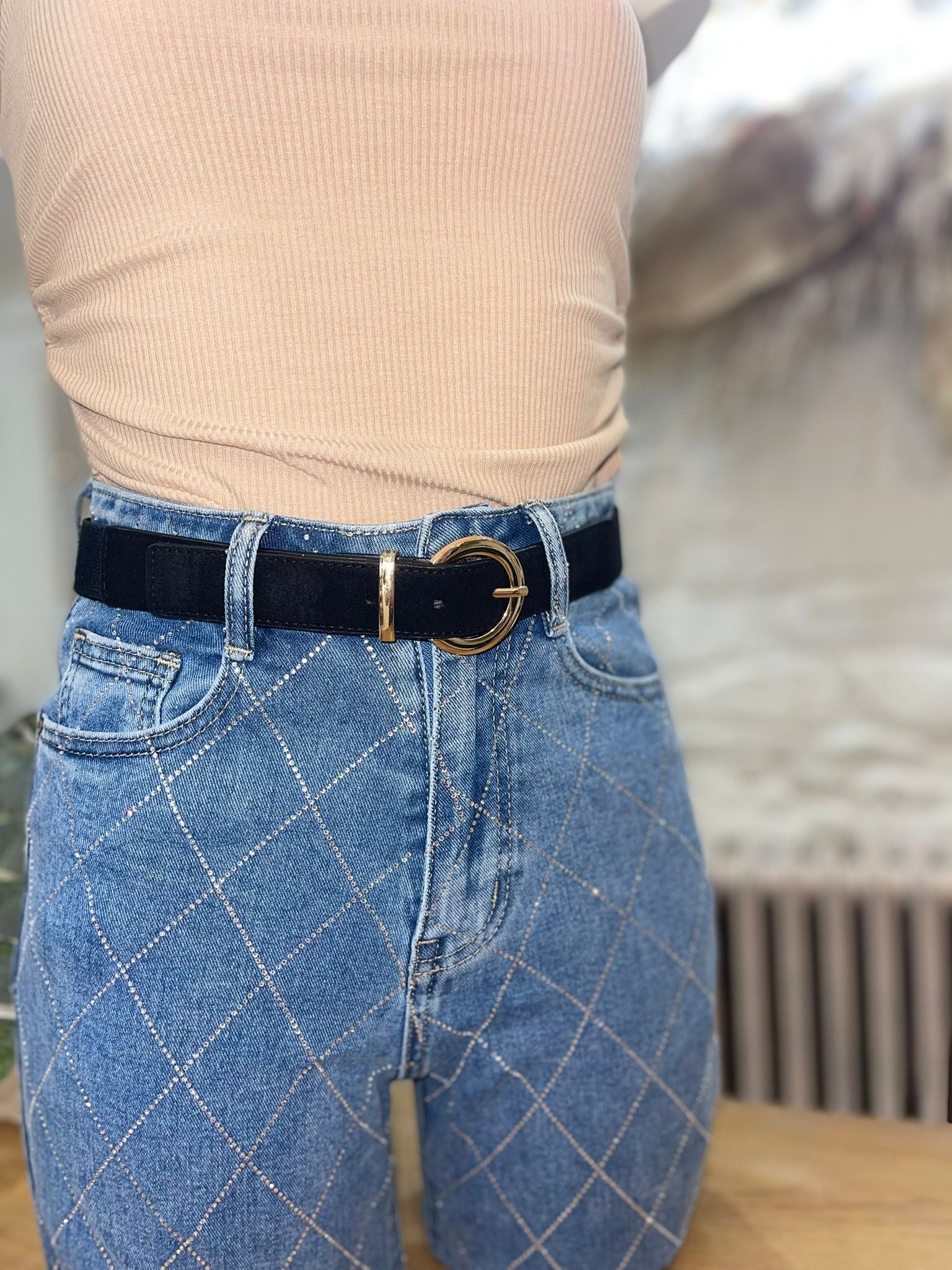 Ceinture souple. Réglable. Boucle doré. Synthétique.