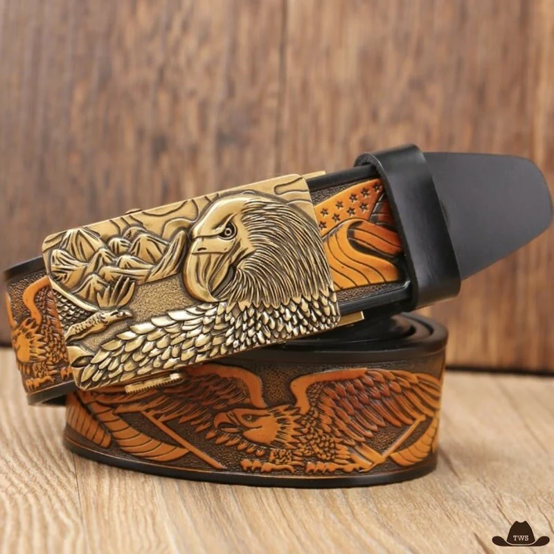 La ceinture boucle western cuir propose un design unique et détaillé de l’aigle royal d’Oregon. Sa finition unique n’est pas sans rappeler le monde des cowboys.
