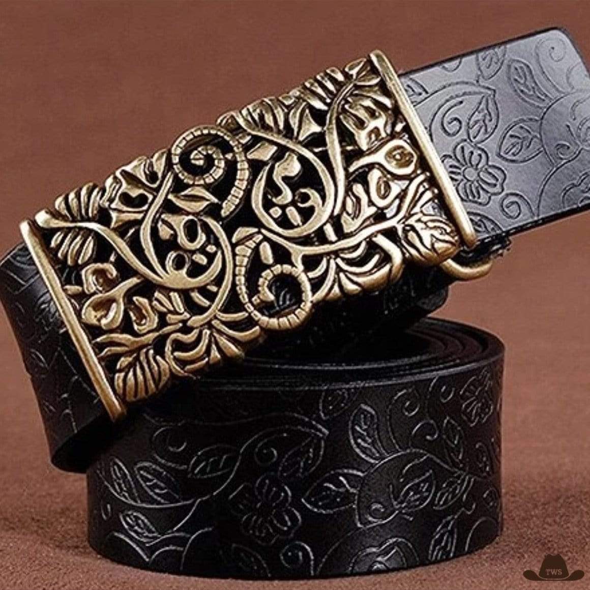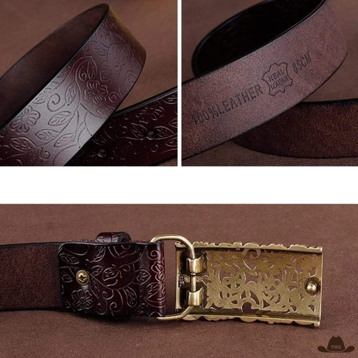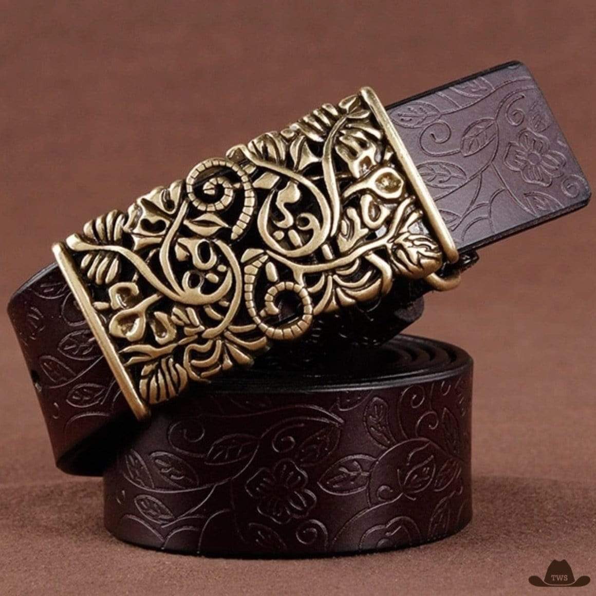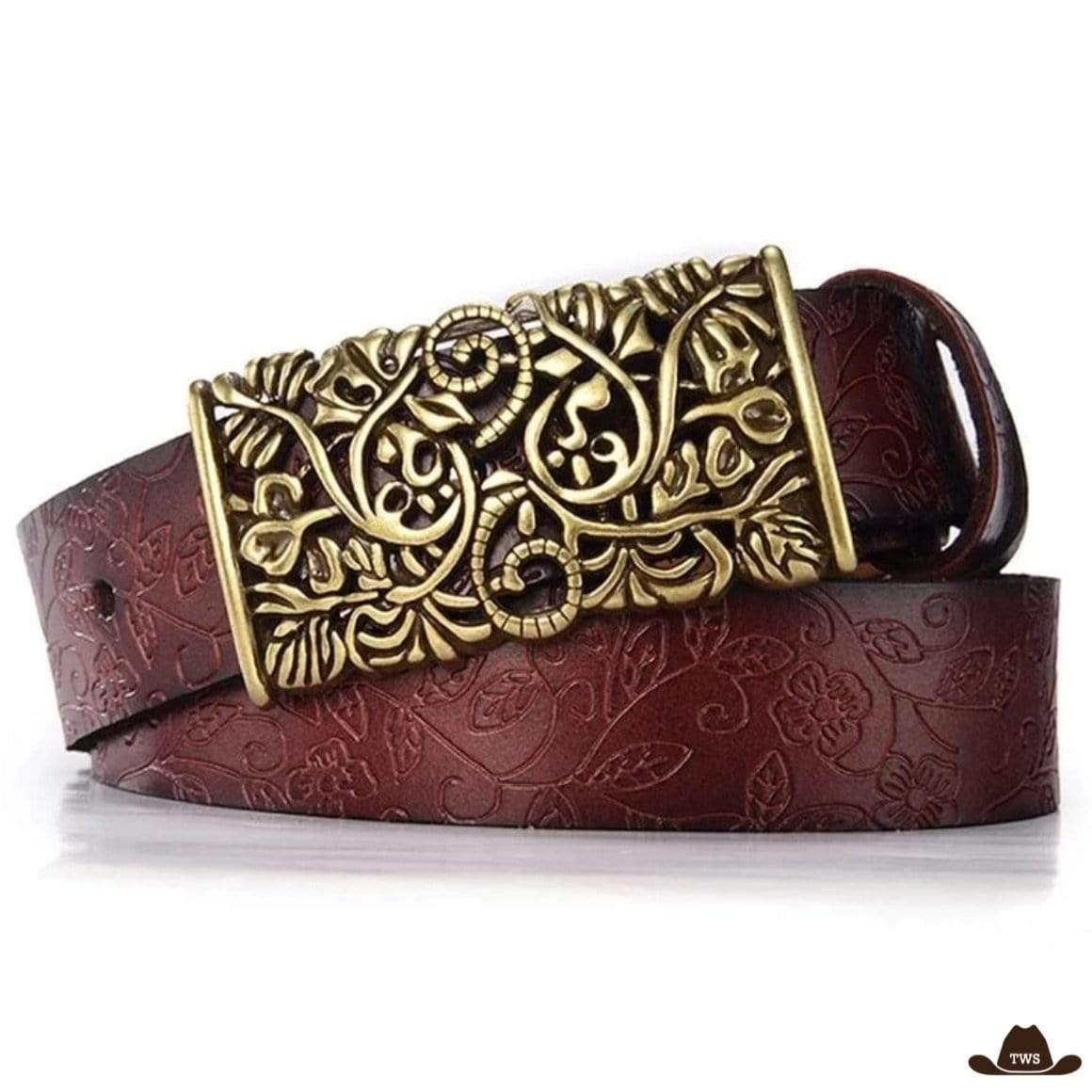 La ceinture de western en cuir pour femmes ne passera pas inaperçue auprès des amatrices de bon goût et de délicatesse. Son cuir travaillé et sa boucle caractéristique marient style country et art de vivre.
