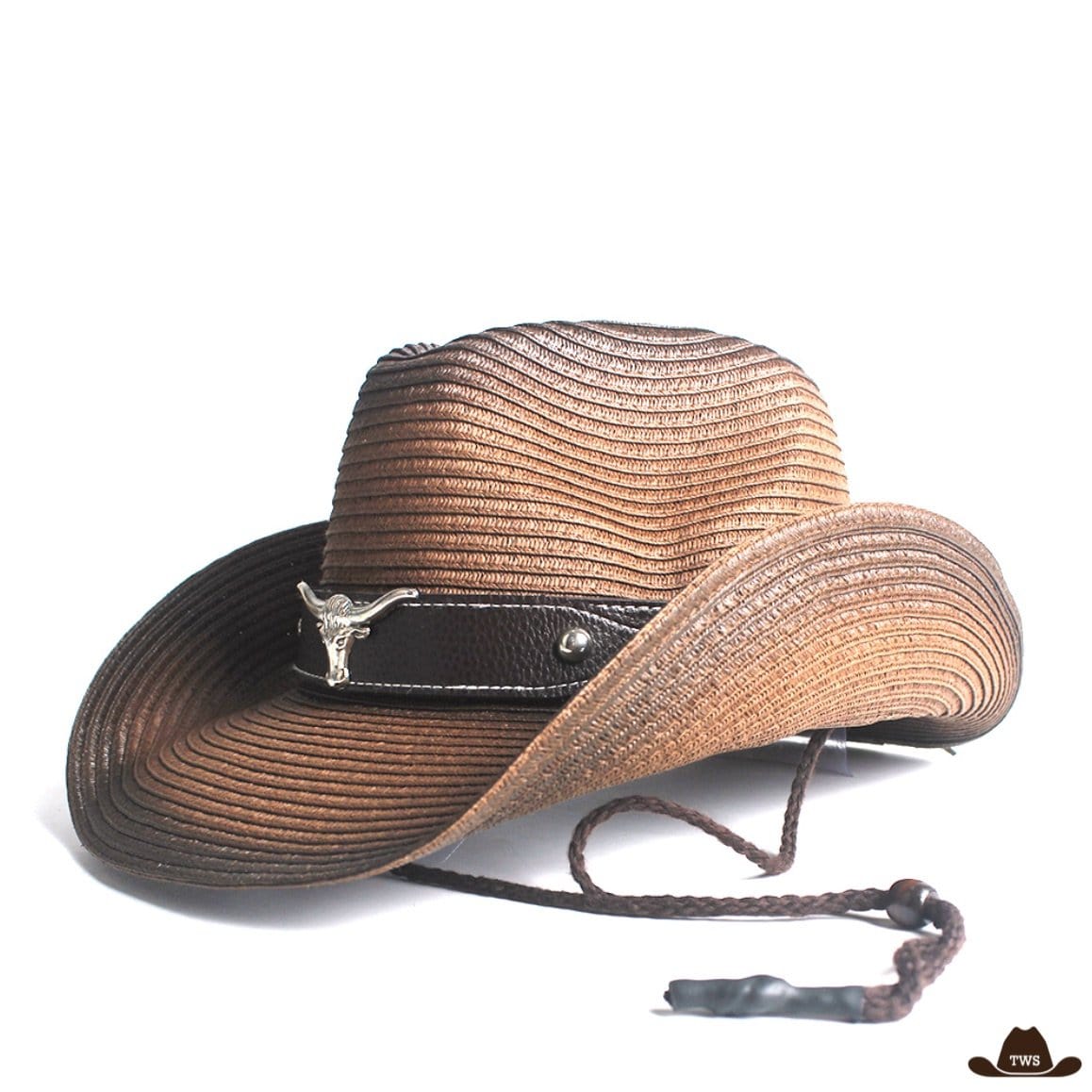 Le chapeau de country en paille, est un classique des symboles du Far West. Conçu en paille pour affronter les fortes chaleurs avec sérénité, il se distingue par sa lanière en cuir véritable représentant le fameux crâne de l’Ouest sauvage américain.