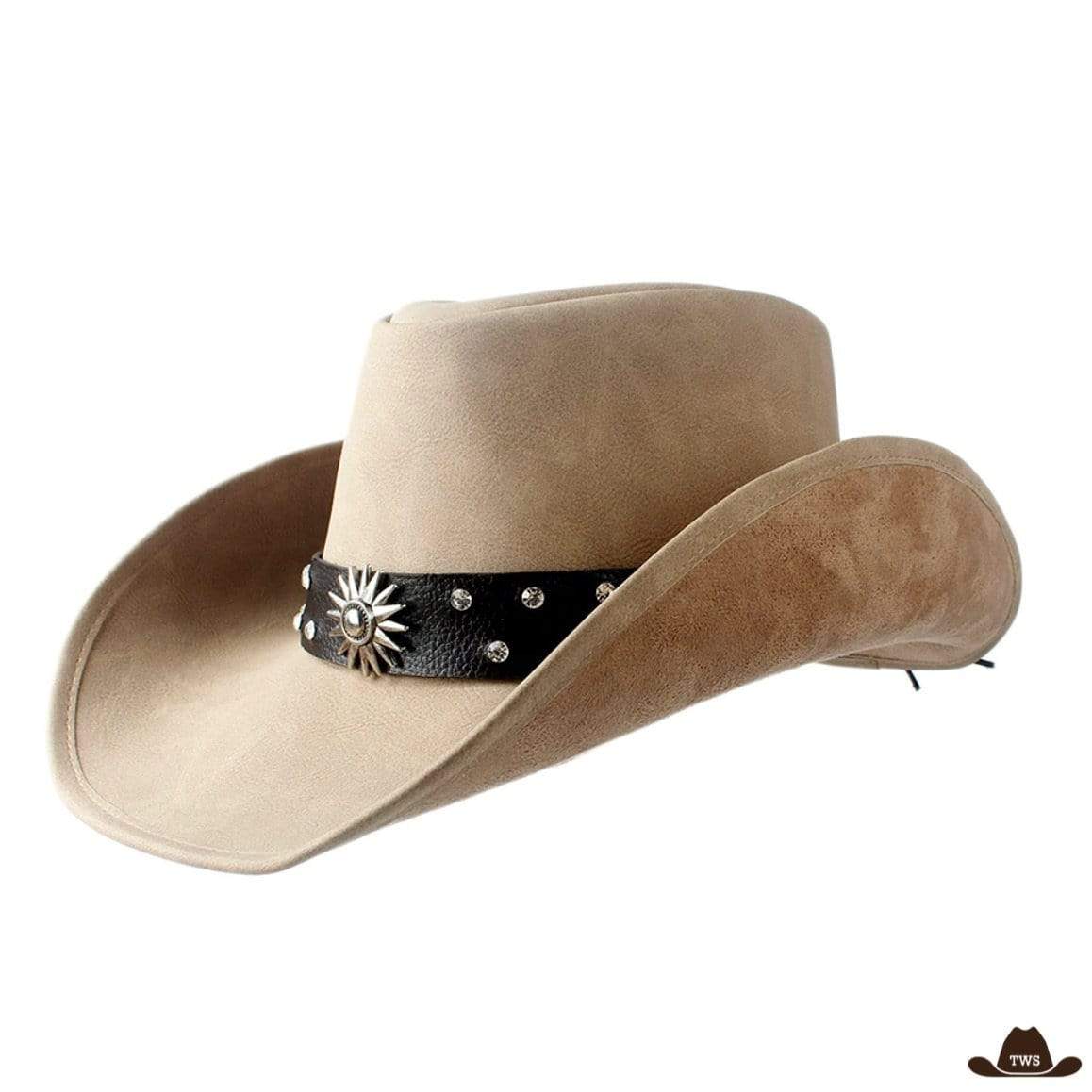 Le chapeau de cowboy de couleur sable en cuir véritable est un classique du style Far West. Pourvu d’une lanière en cuir mettant en avant un éperon, symbole de l’Ouest sauvage américain, ce chapeau n’est pas sans rappeler de nombreuses scènes de western.
