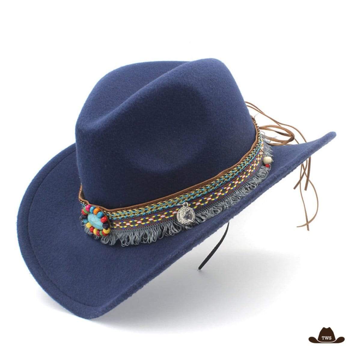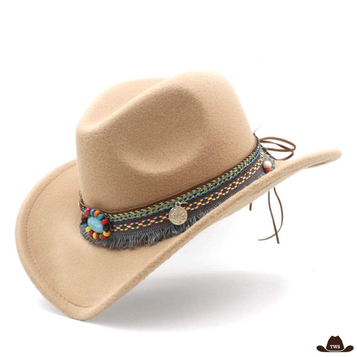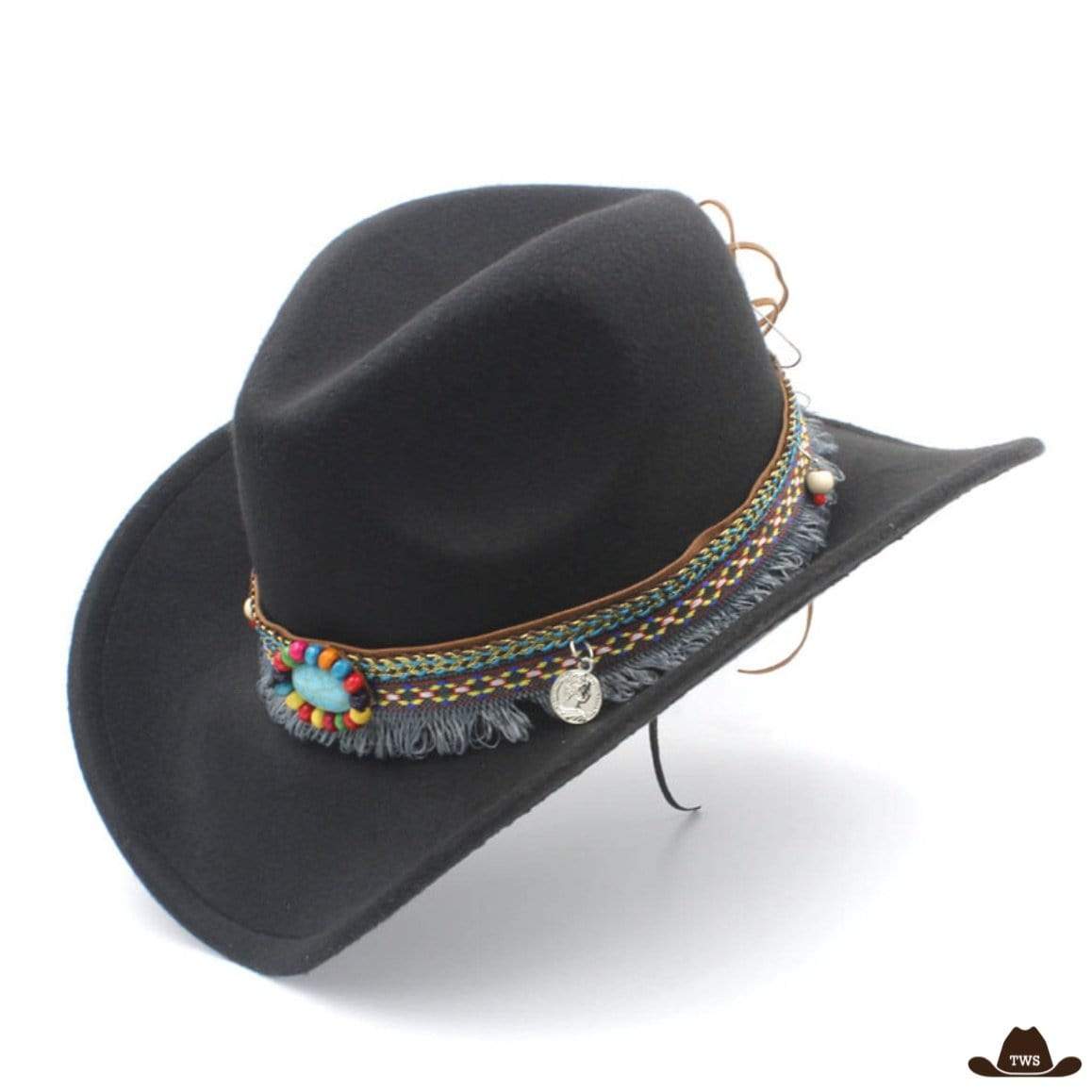 Le chapeau de style western pour femme est un classique original de la mode du Far West. Fabriqué en laine de qualité supérieure, il dispose d’une lanière représentative de l’univers Amérindien. Ce chapeau cowboy femme pas cher fera le bonheur des amatrices de western.