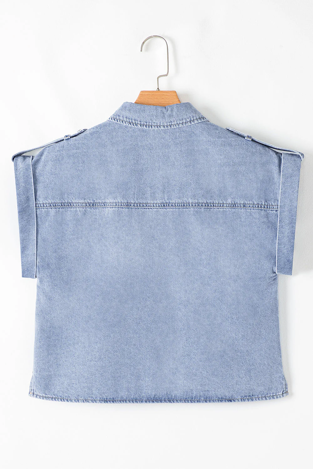 Chemise À Manches Courtes Et Rabattue En Denim Pin-Up