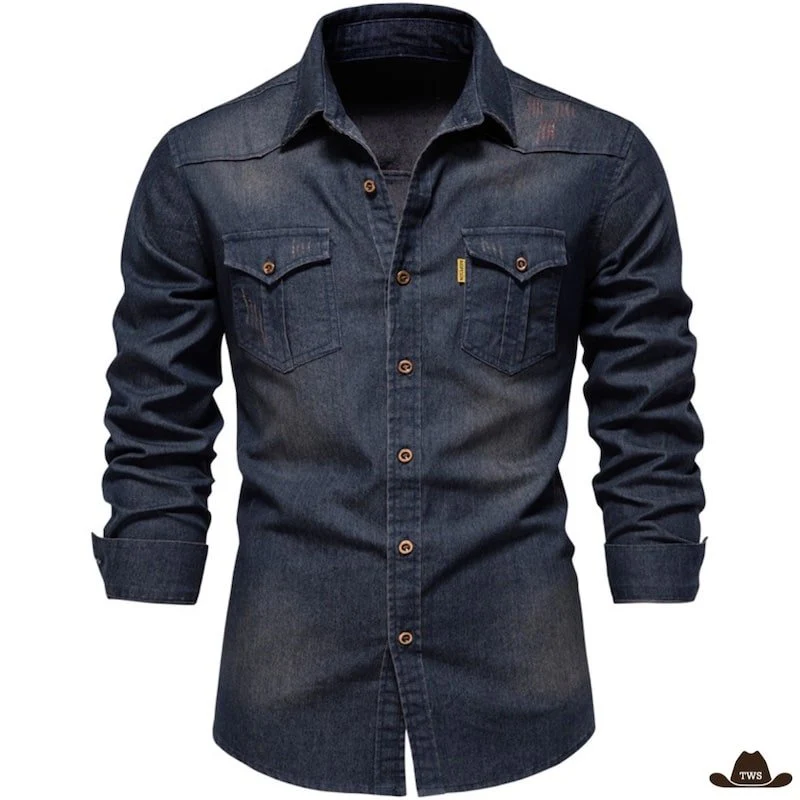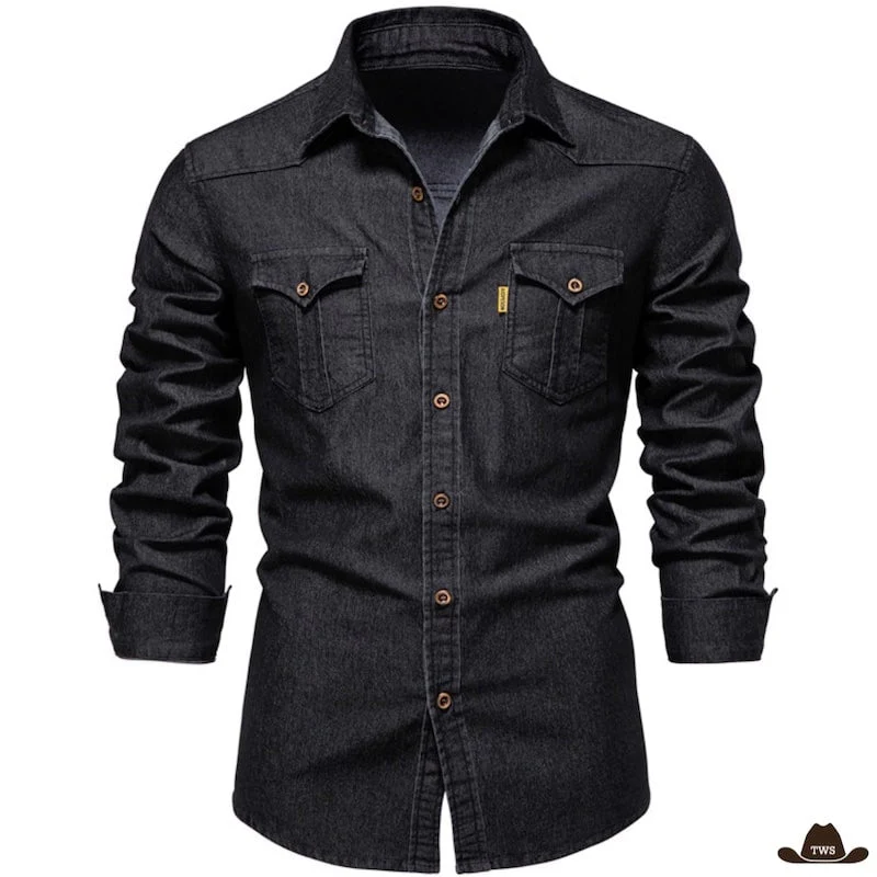 La chemise de western noire propose un niveau de détails rarement observés dans sa catégorie. Elle se distingue notamment par son style en jean effet vintage, alliant précision et harmonie à l’apparence cow-boy.