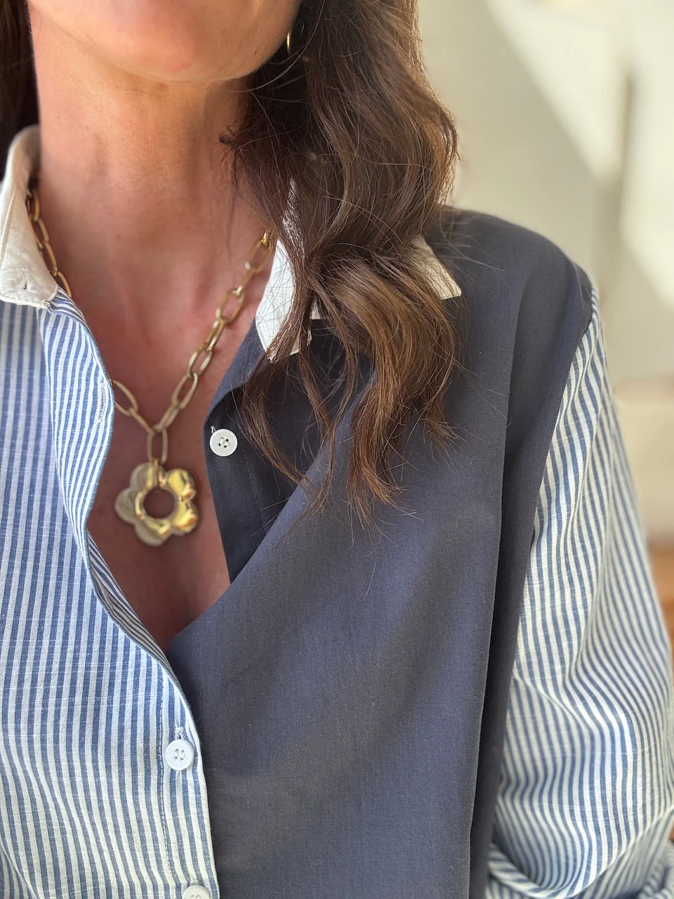 Julie mesure 1,70m et porte une taille S.