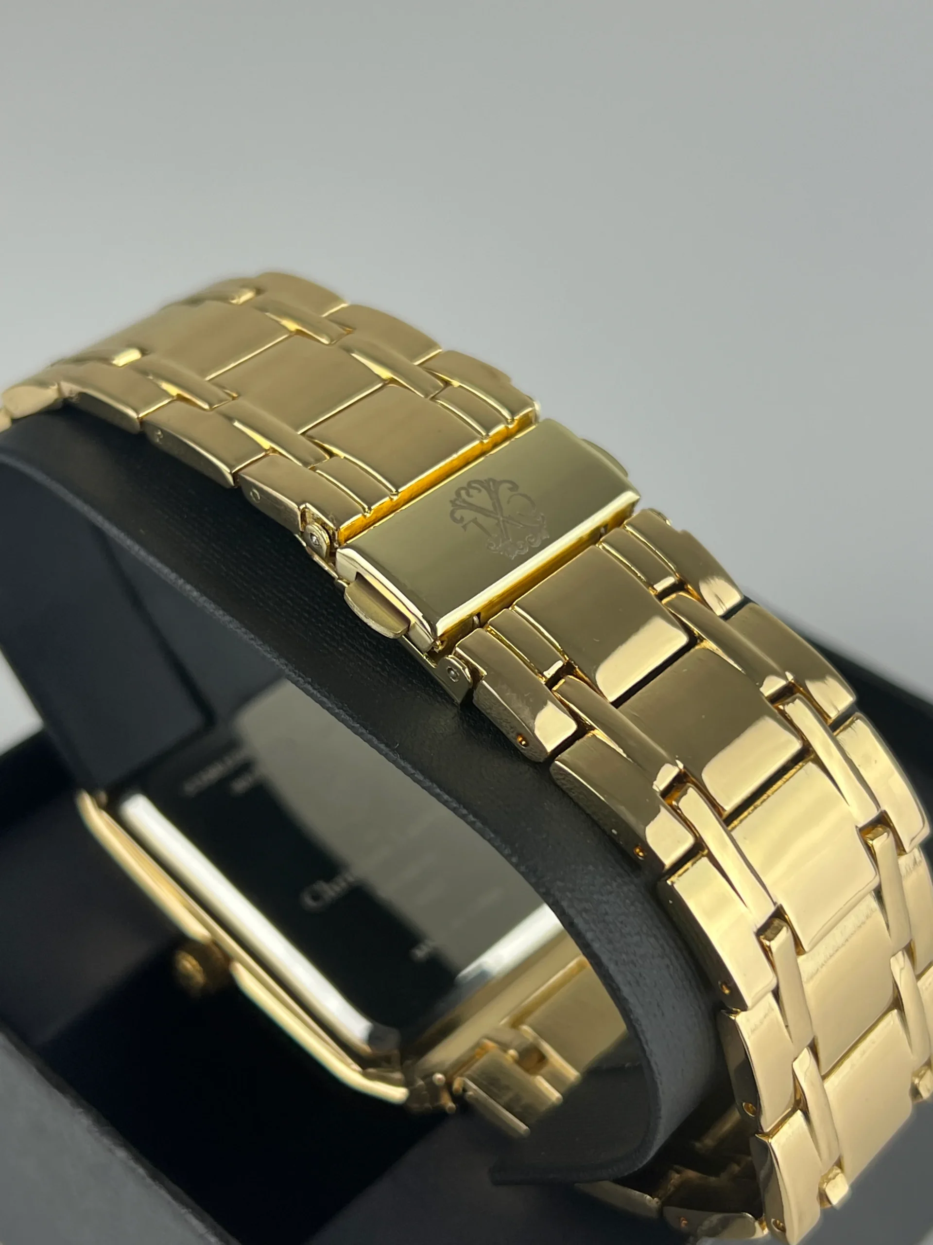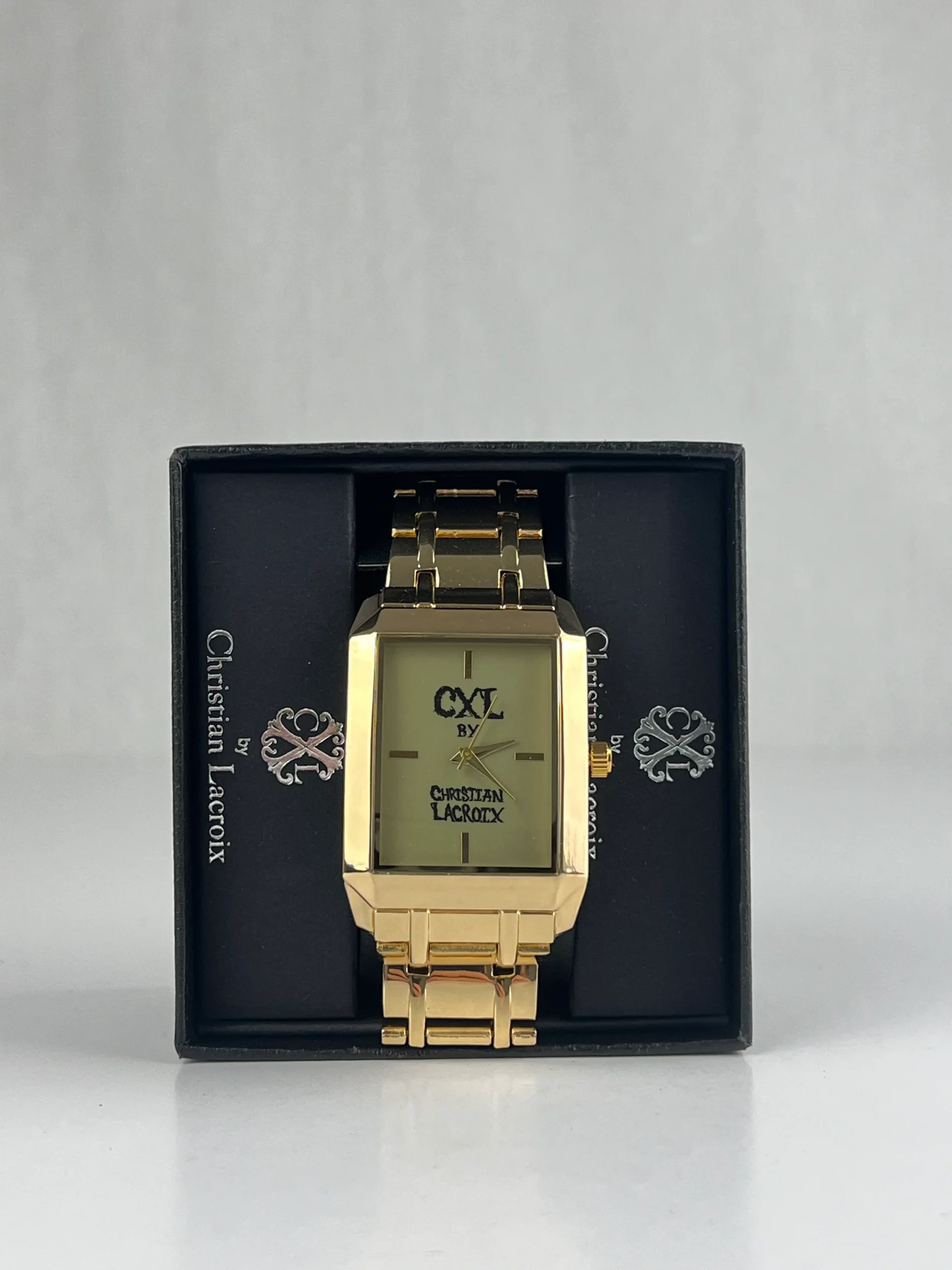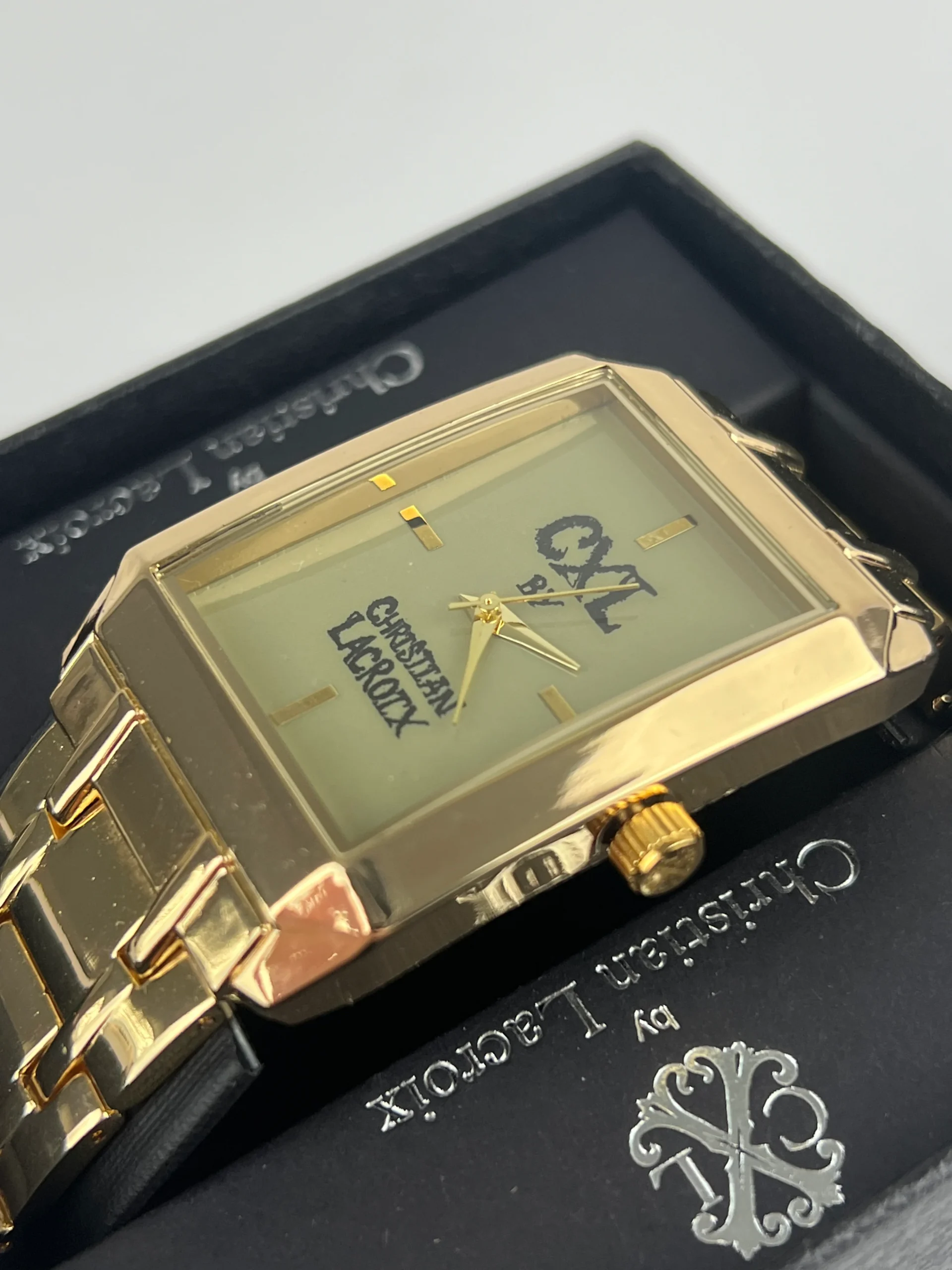 Montre de la marque Christian Lacroix. Montre rectangulaire avec fond kaki et logo. Matières : Alliage