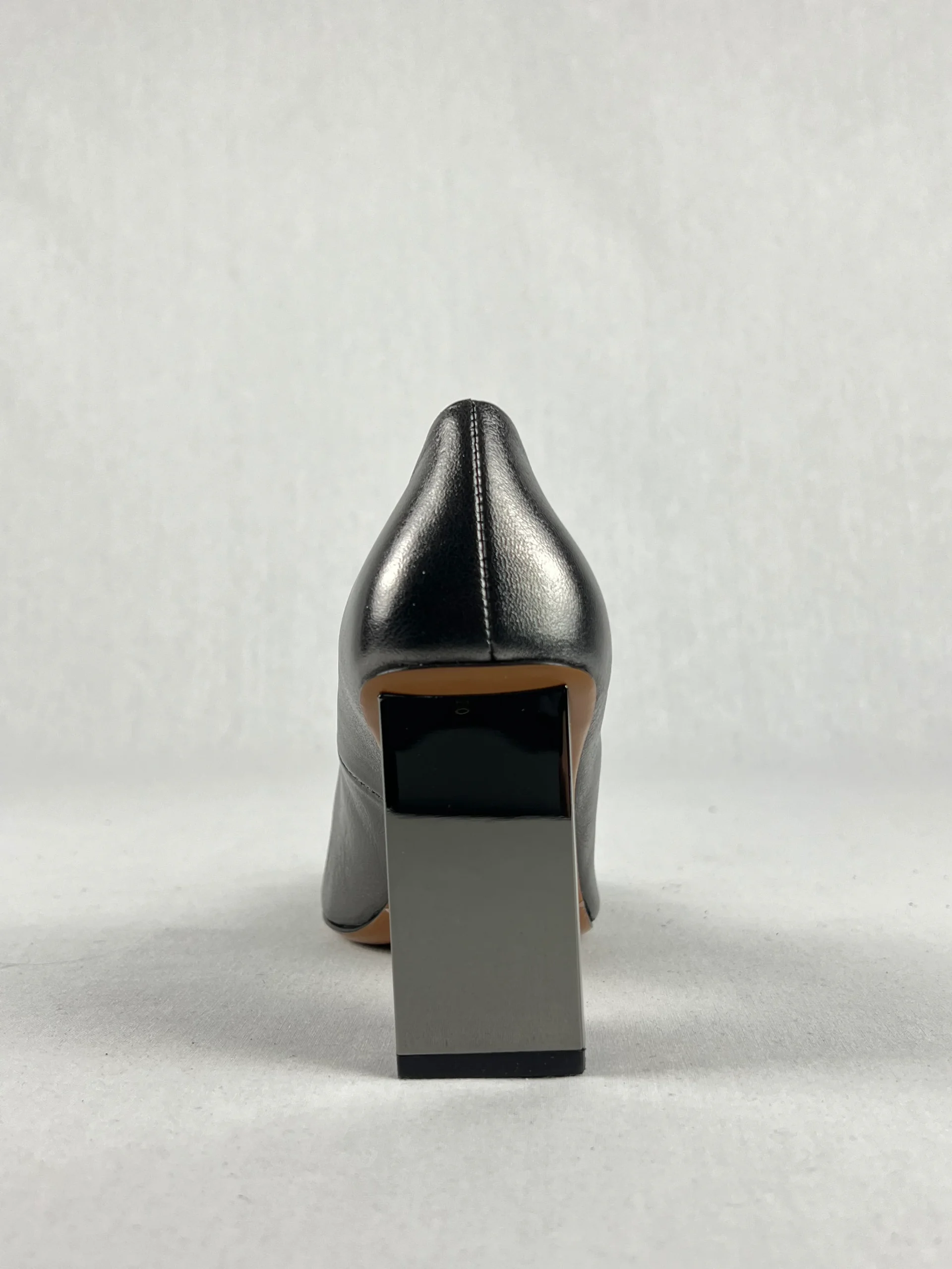 Talon en cuir argenté, de type slip-on, avec un talon de 88 mm de hauteur.