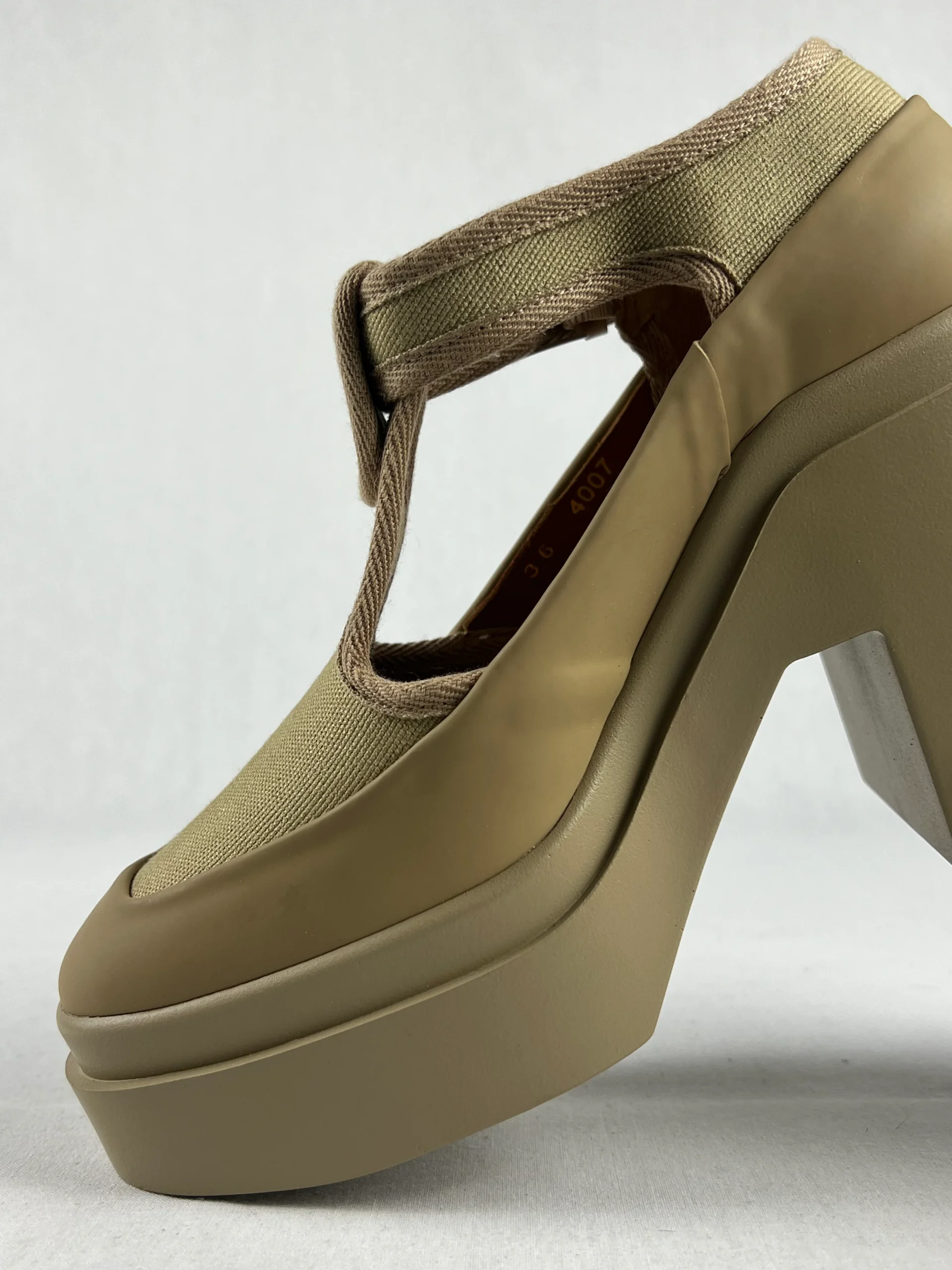 L’association des matériaux en néoprène et toile lui confère une apparence confortable et durable. Hauteur du talon : 110 mm
