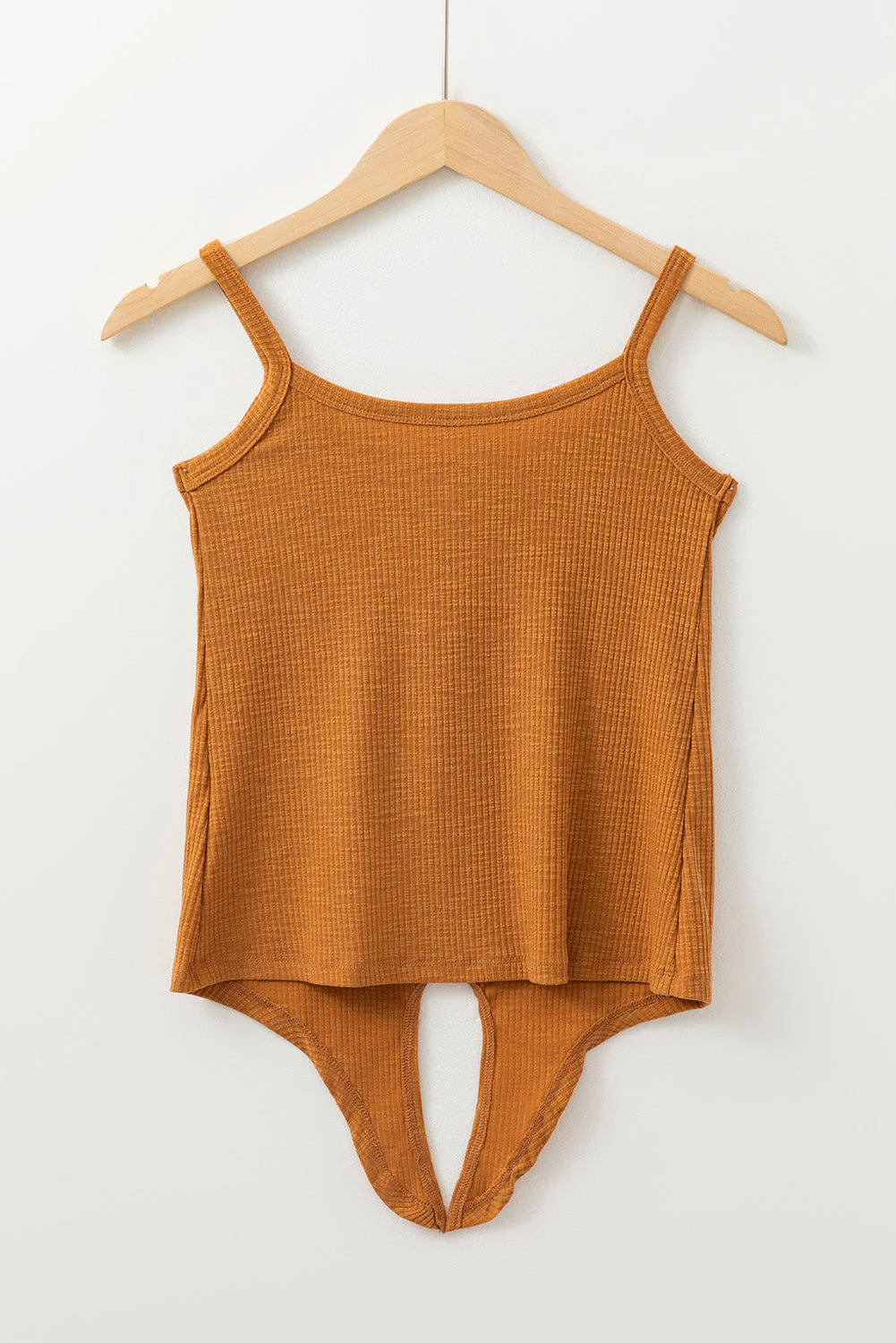 Débardeur Côtelé À Fines Bretelles Boutonnées Et Nouées Sur Le Devant