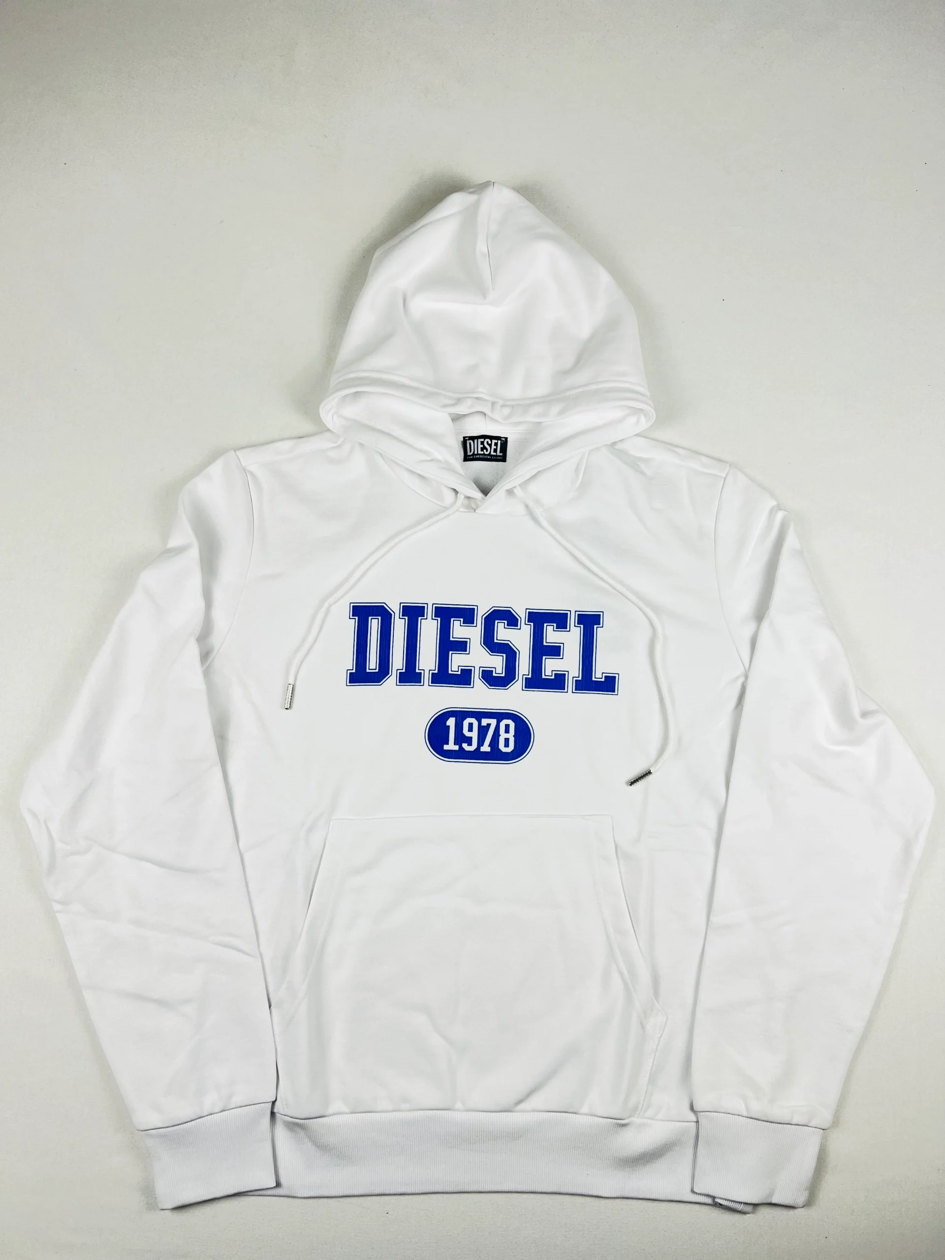 Sweat-shirt à capuche de la marque Diesel modèle S-Ginn Hood. Sweat à capuche avec cordon de serrage Visuel Diesel imprimé sur l’avant effet usé Deux poches avant Matière : 95% Coton / 5% Elasthanne