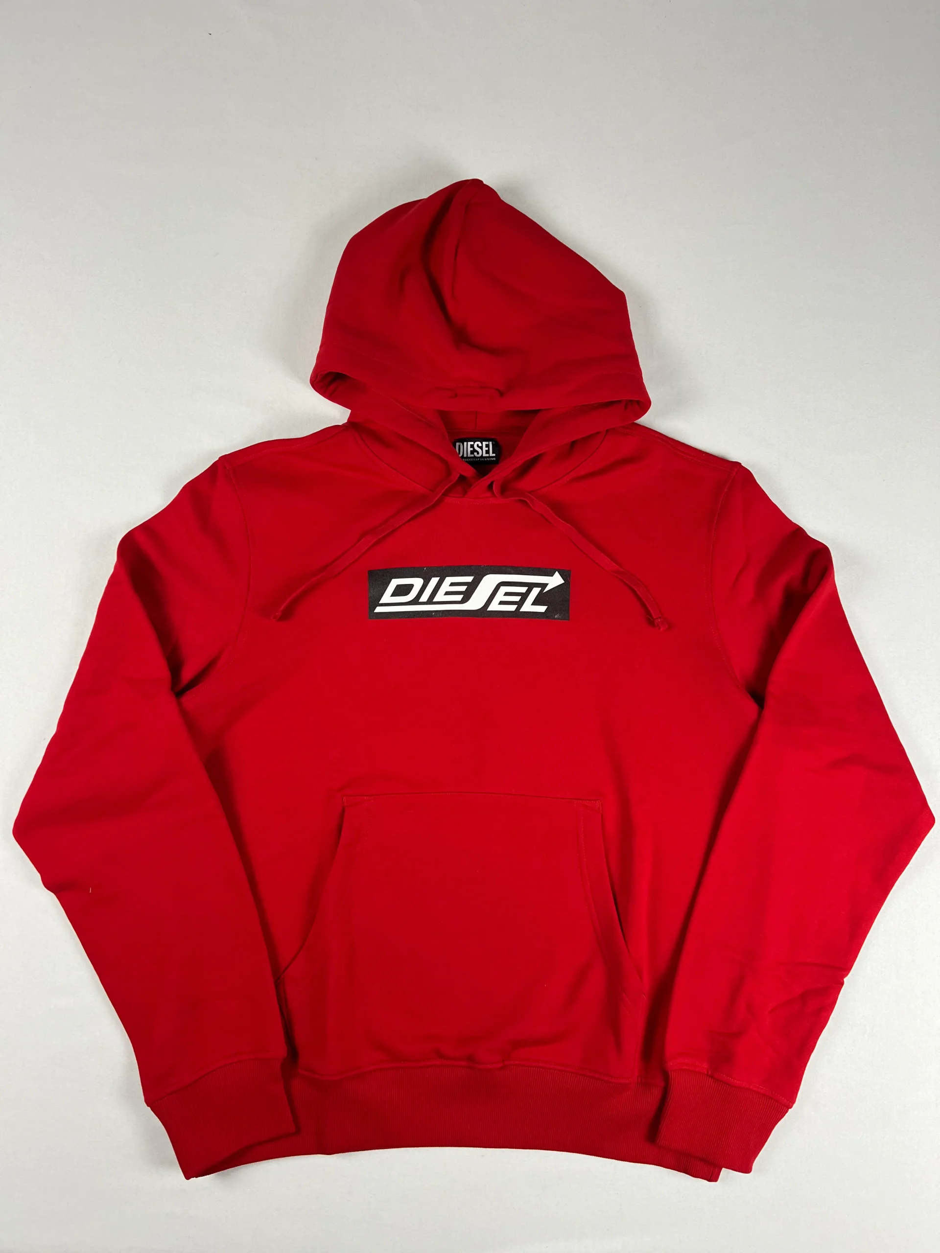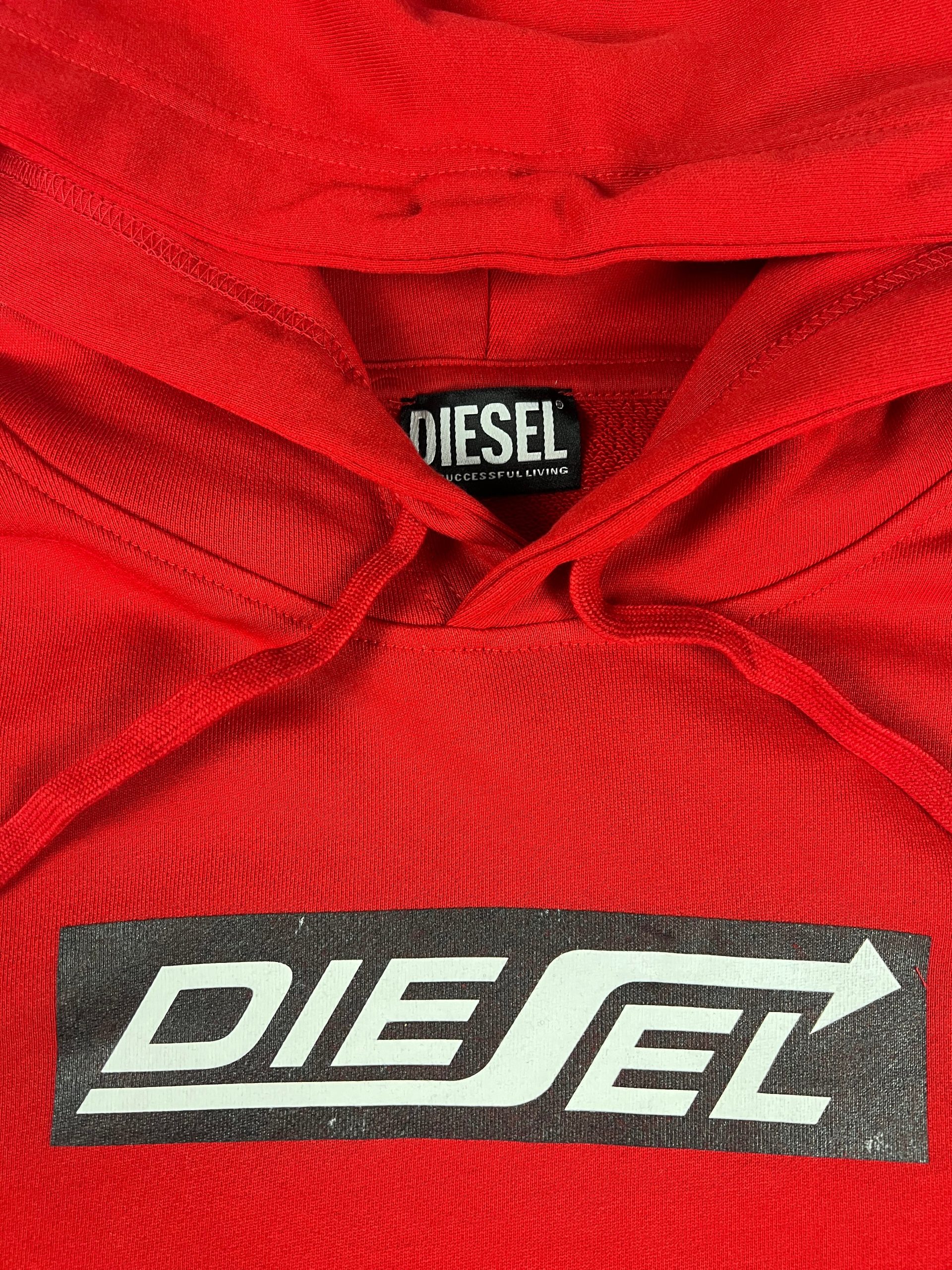 Sweat-shirt à capuche de la marque Diesel modèle S-Ginn Hood HS1 Felp. Sweat rouge à capuche épuré avec un logo imprimé sur l’avant. Matière : 100% Coton