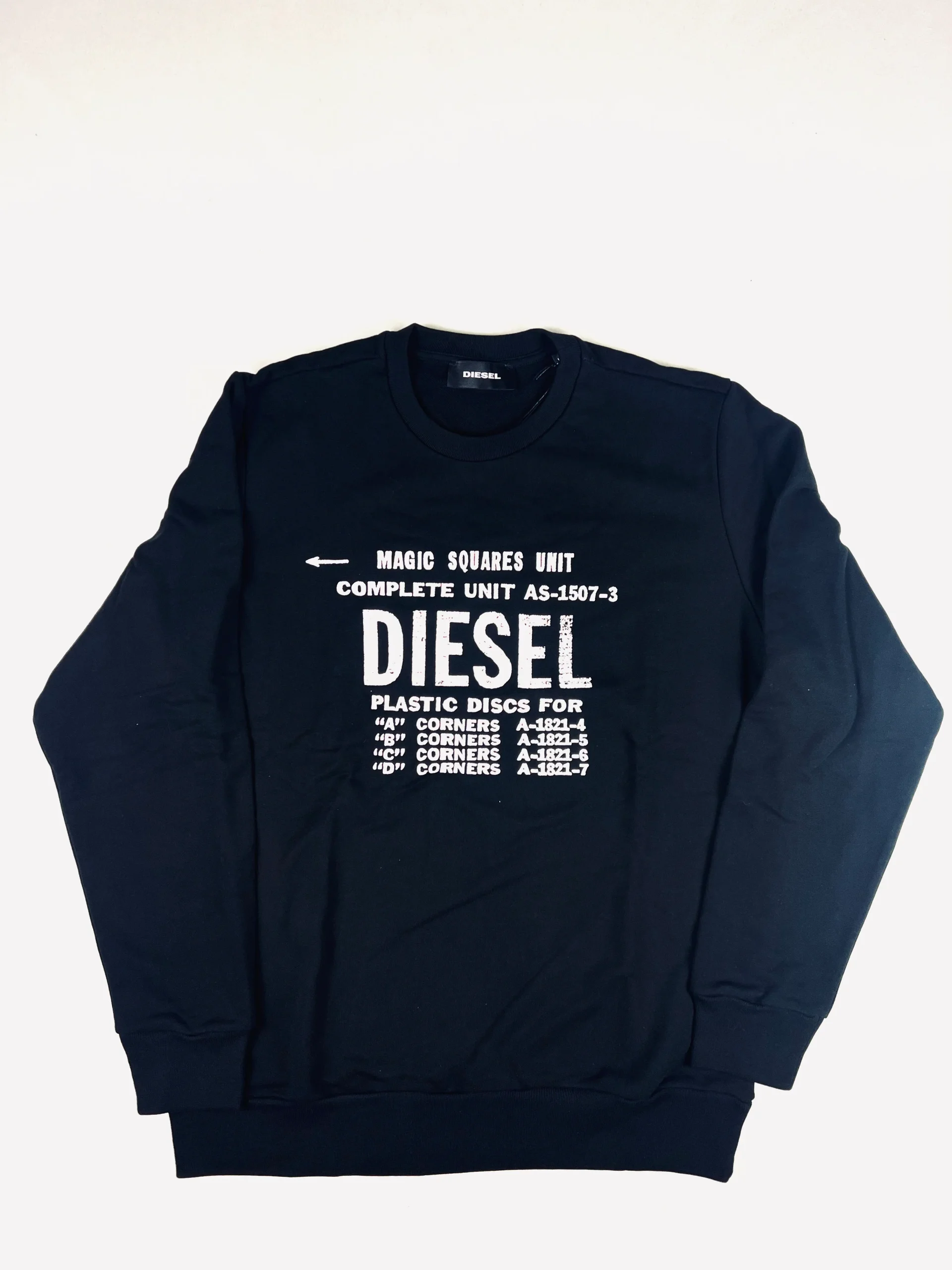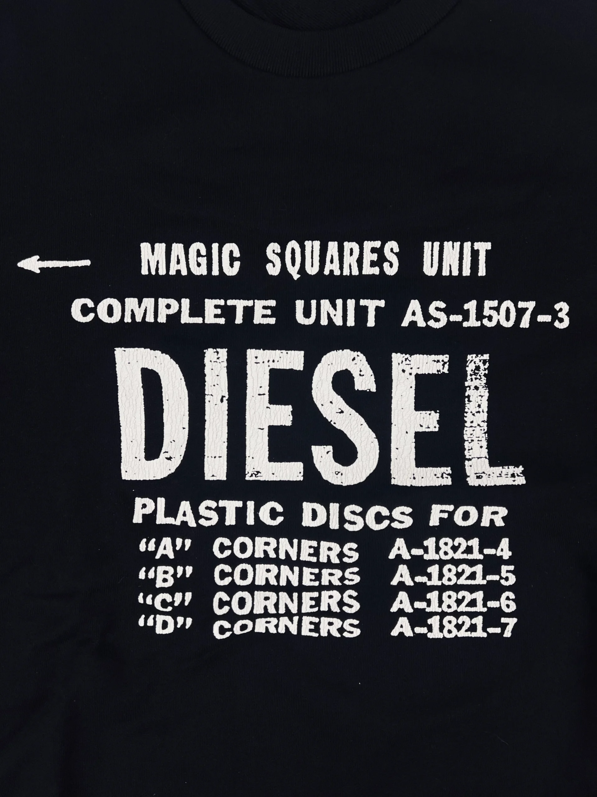 Sweat-shirt de la marque Diesel modèle S-Girk S3. Sweat crewneck imprimé Visuel Diesel imprimé sur l’avant Elastique de maintien aux poignets et à la taille Matière : 100% Coton
