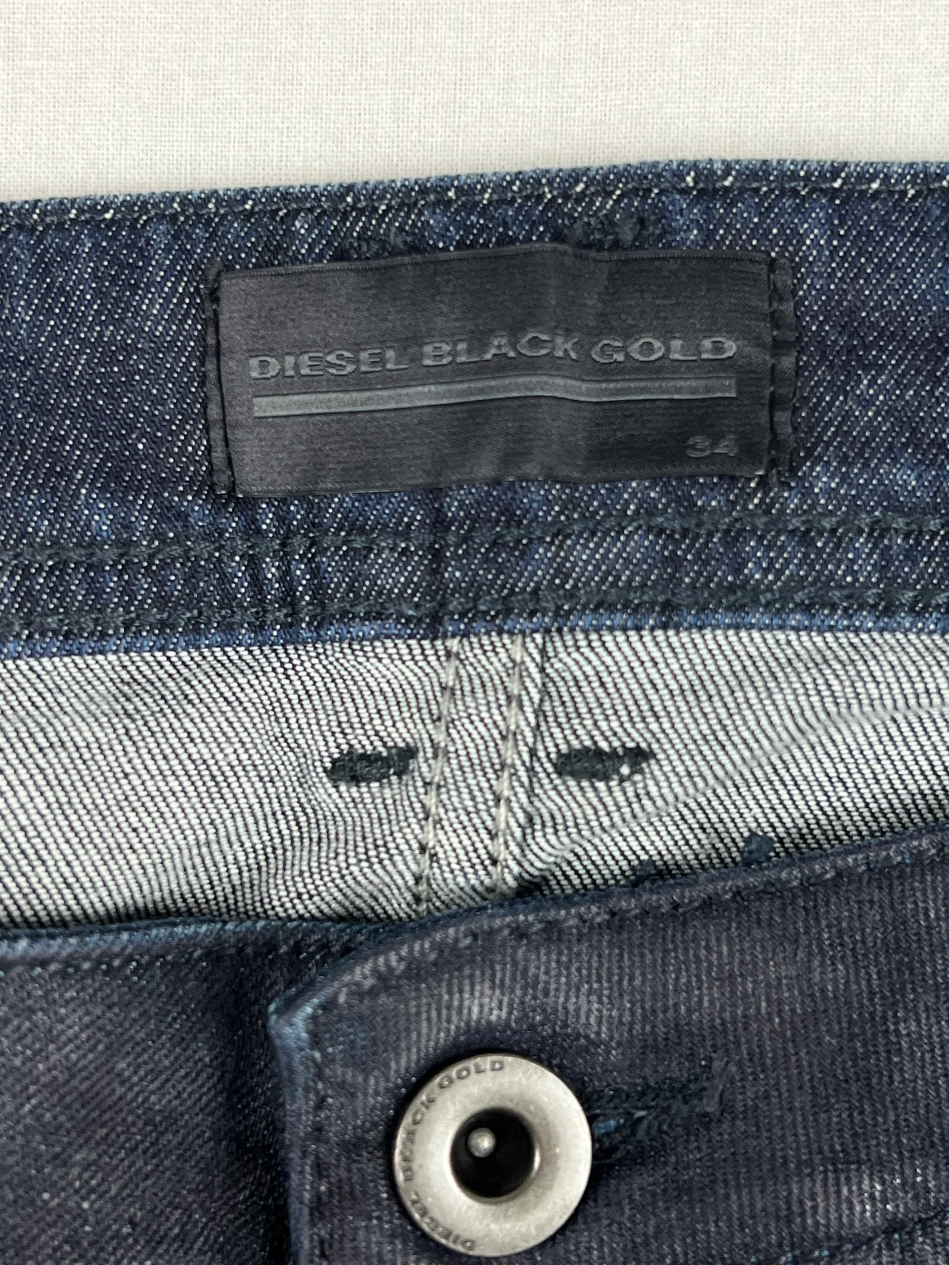 Jeans de la marque Diesel Black Gold. Skinny Jambes très longues (particularité du modèle) Matière : 95% Coton / 4% Polyester / 1% Elasthanne