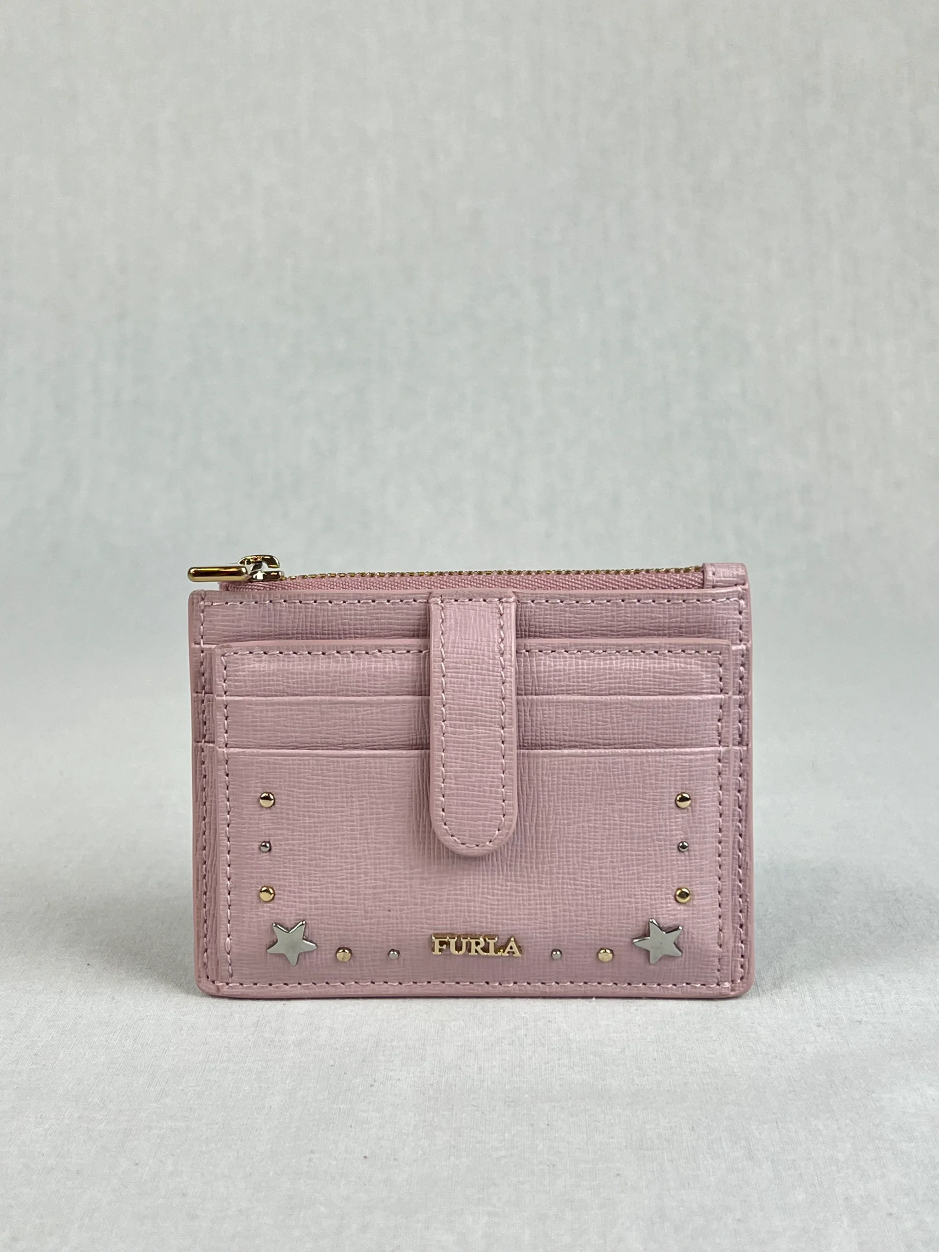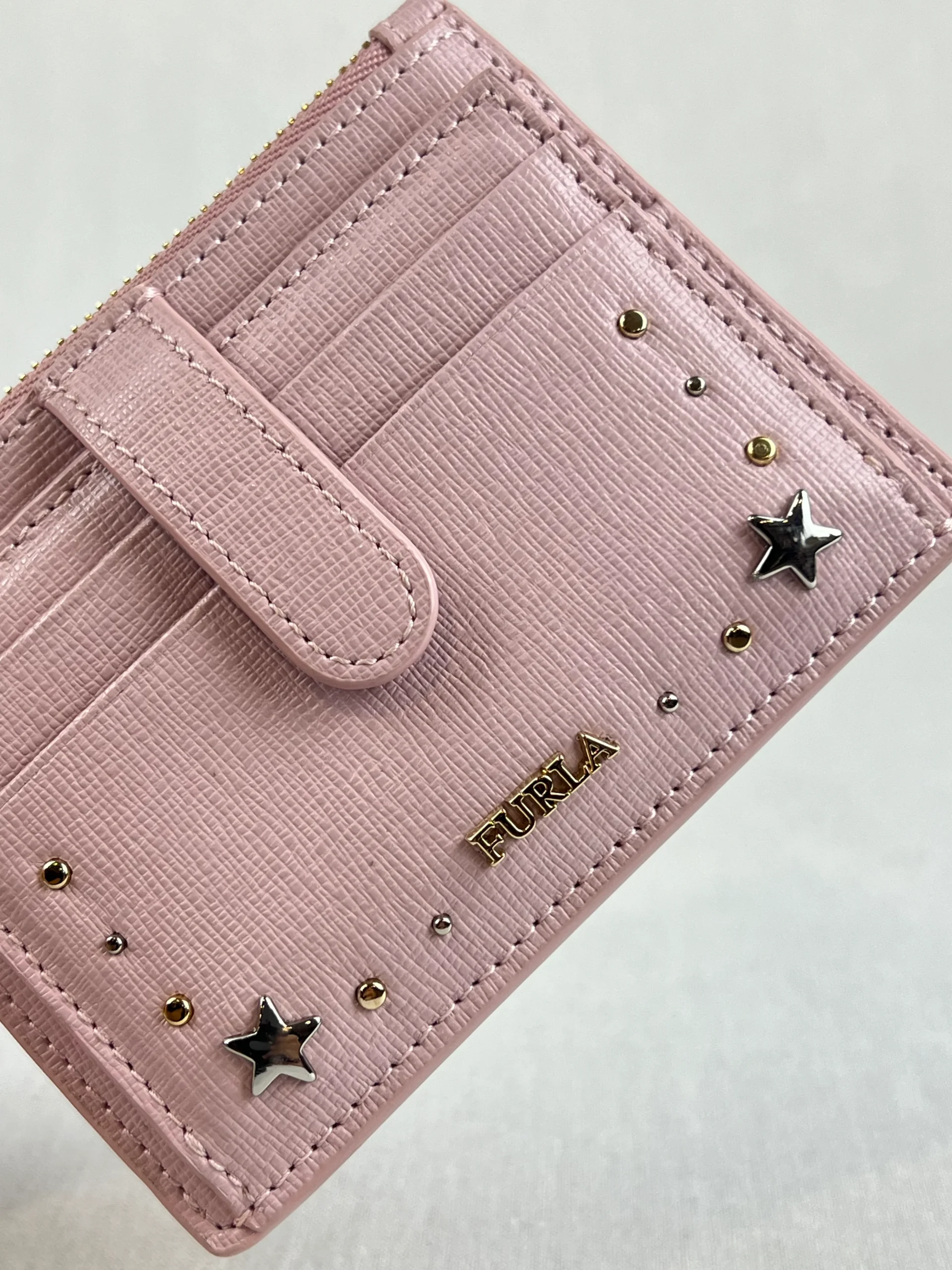 Portefeuille de la marque Furla modèle Allegra Ce modèle compact dispose d’une poche zippée pour les pièces, d’une poche à l’arrière et d’une fermeture à bouton. Lorsqu’on déplie le portefeuille, il révèle un miroir, cinq fentes pour cartes, ainsi qu’une poche cachée derrière le miroir. Une pochette de protection est fournie avec ce portefeuille. Matières […]