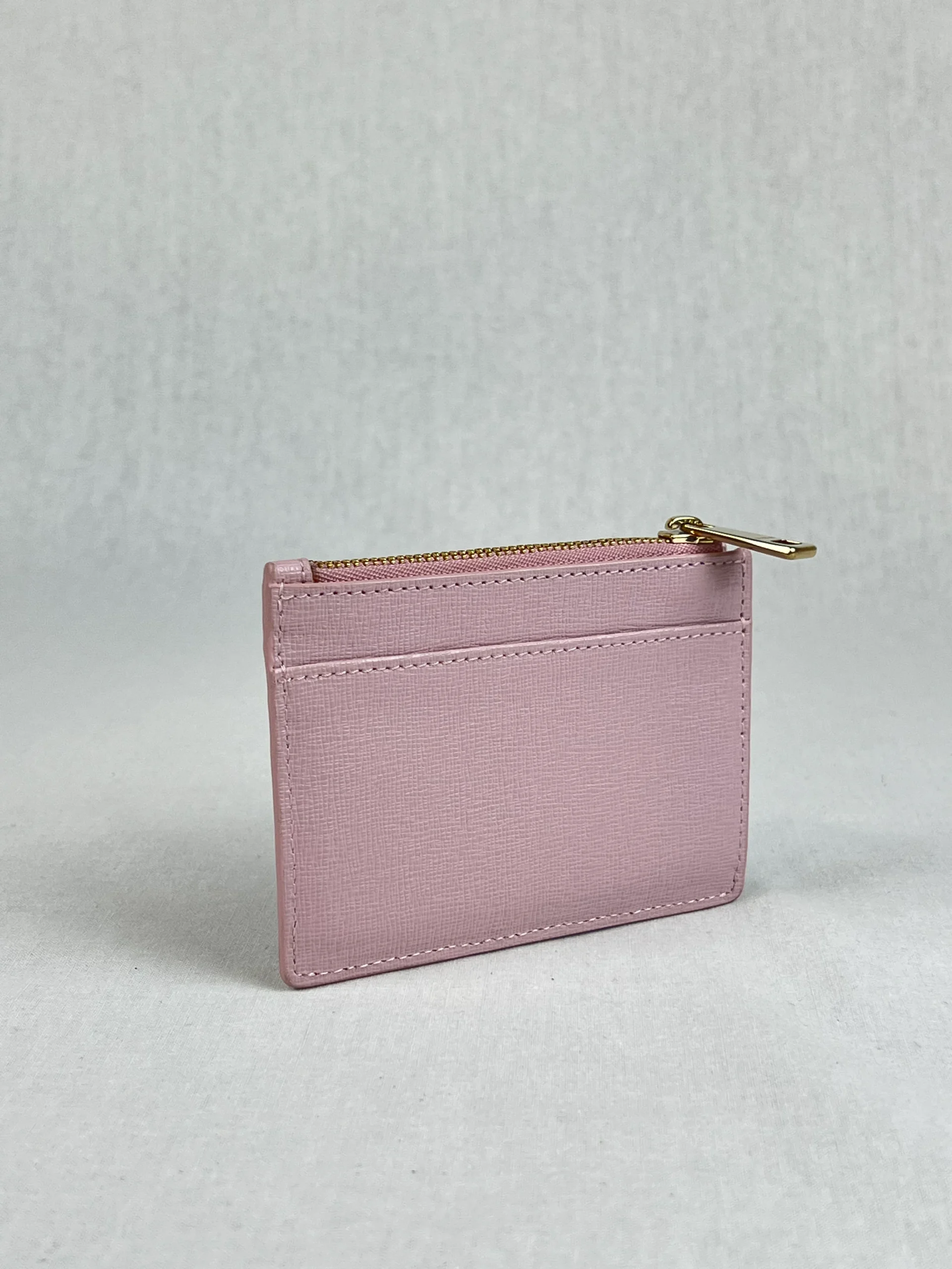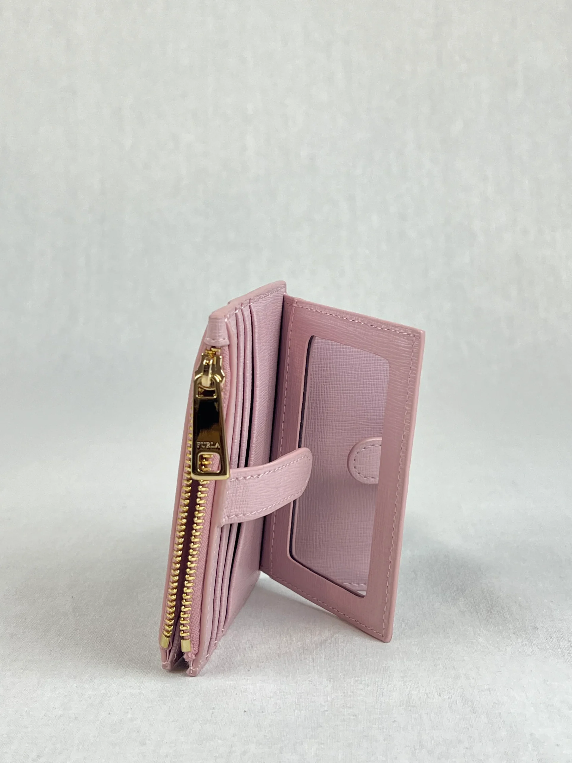 Ce modèle compact dispose d’une poche zippée pour les pièces, d’une poche à l’arrière et d’une fermeture à bouton. Lorsqu’on déplie le portefeuille, il révèle un miroir, cinq fentes pour cartes, ainsi qu’une poche cachée derrière le miroir.