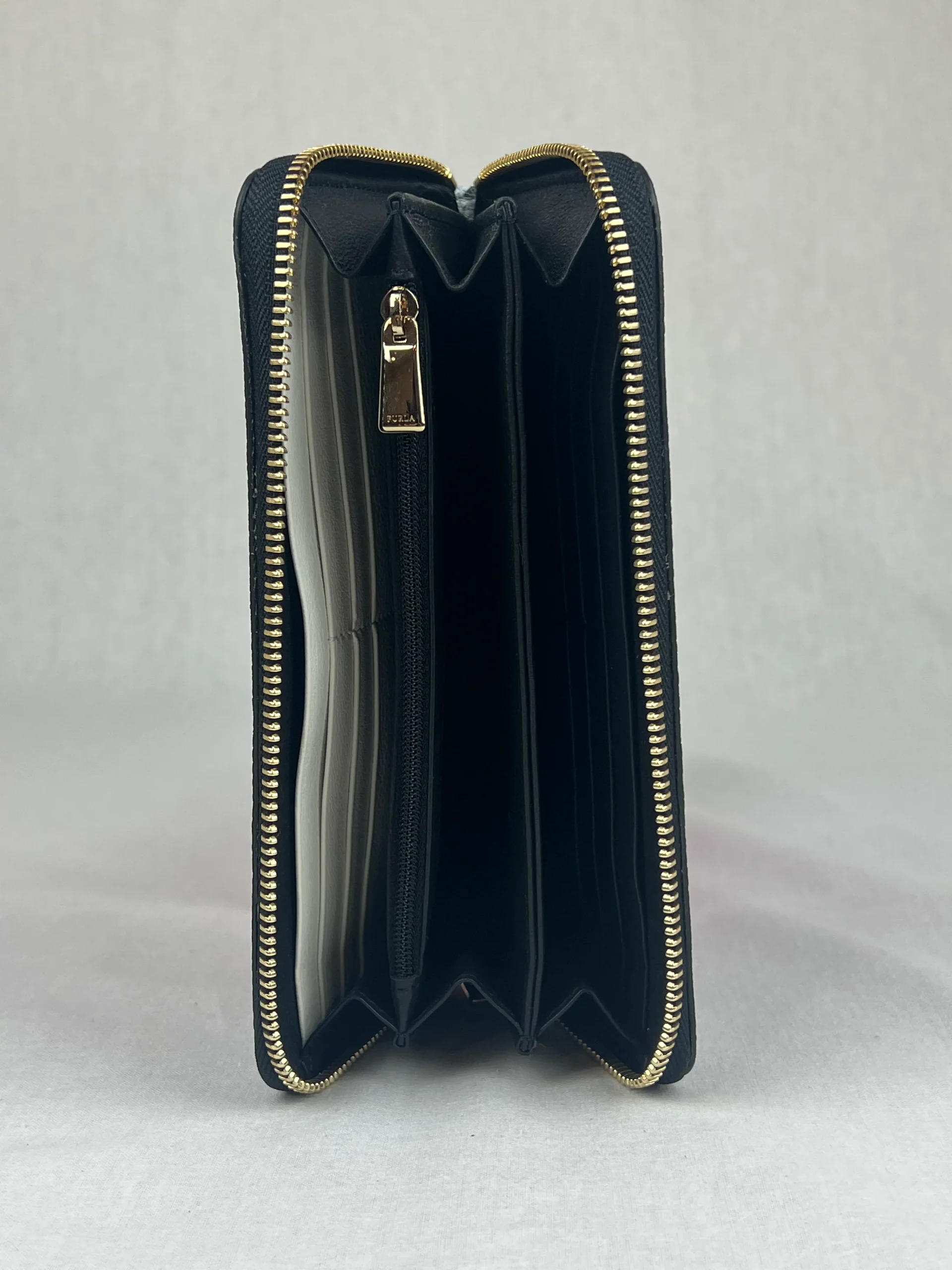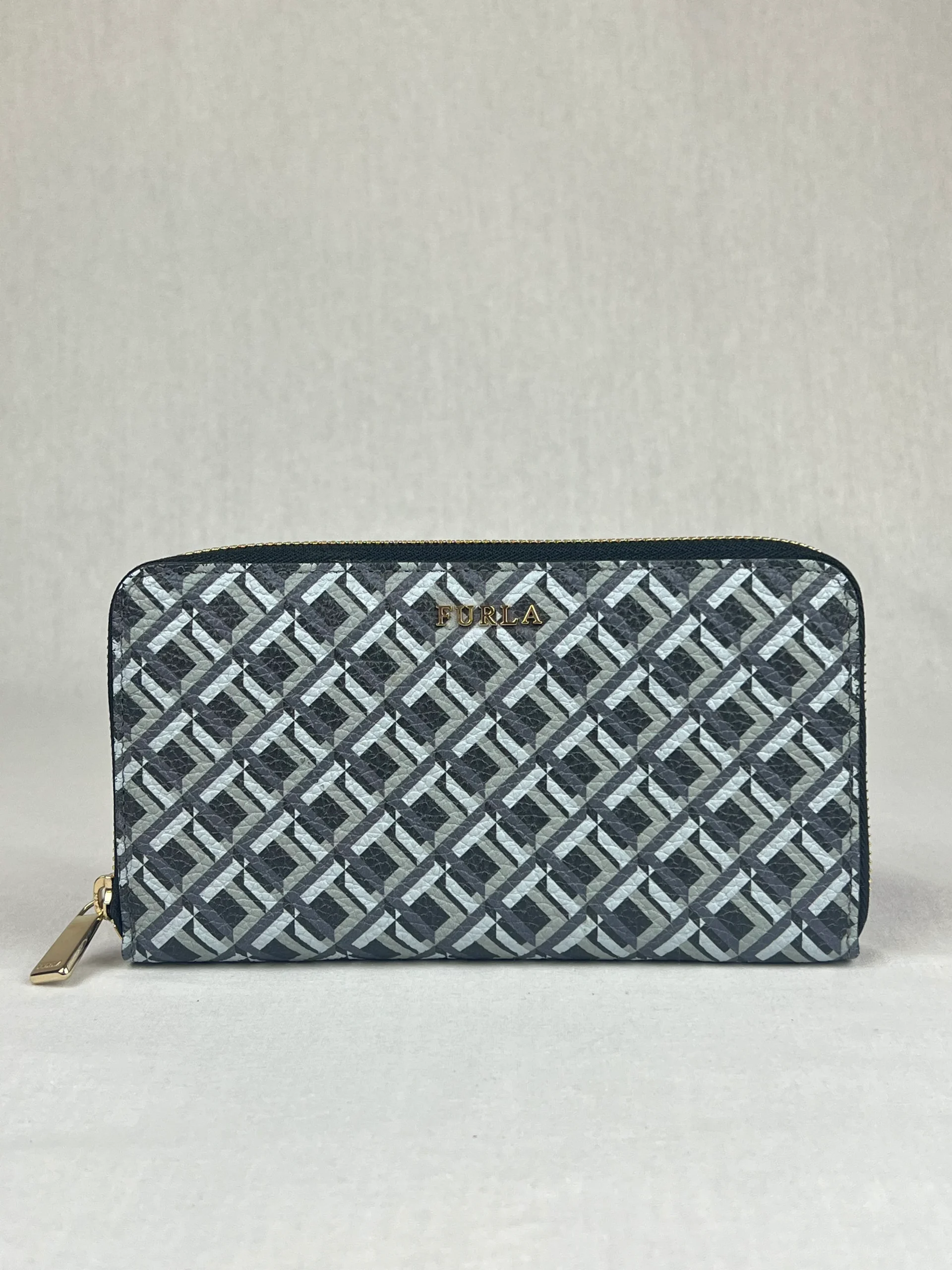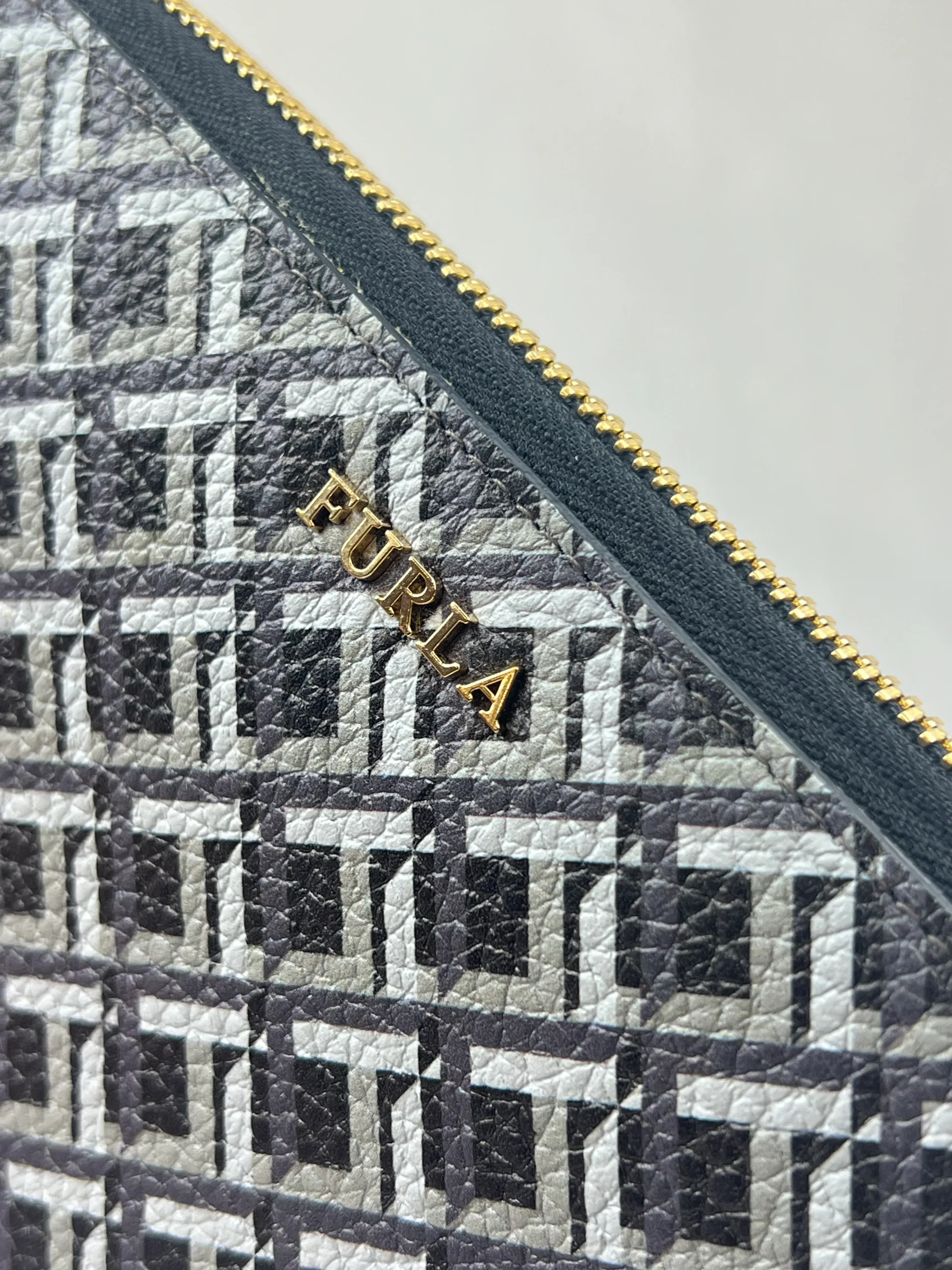 Portefeuille de la marque Furla Derrière sa fermeture à glissière, ce modèle plat présente un intérieur bien agencé avec quatre grands compartiments, une poche zippée pour la monnaie, deux poches pour les billets, ainsi que plusieurs emplacements pour cartes de crédit. Matières : 100% Cuir