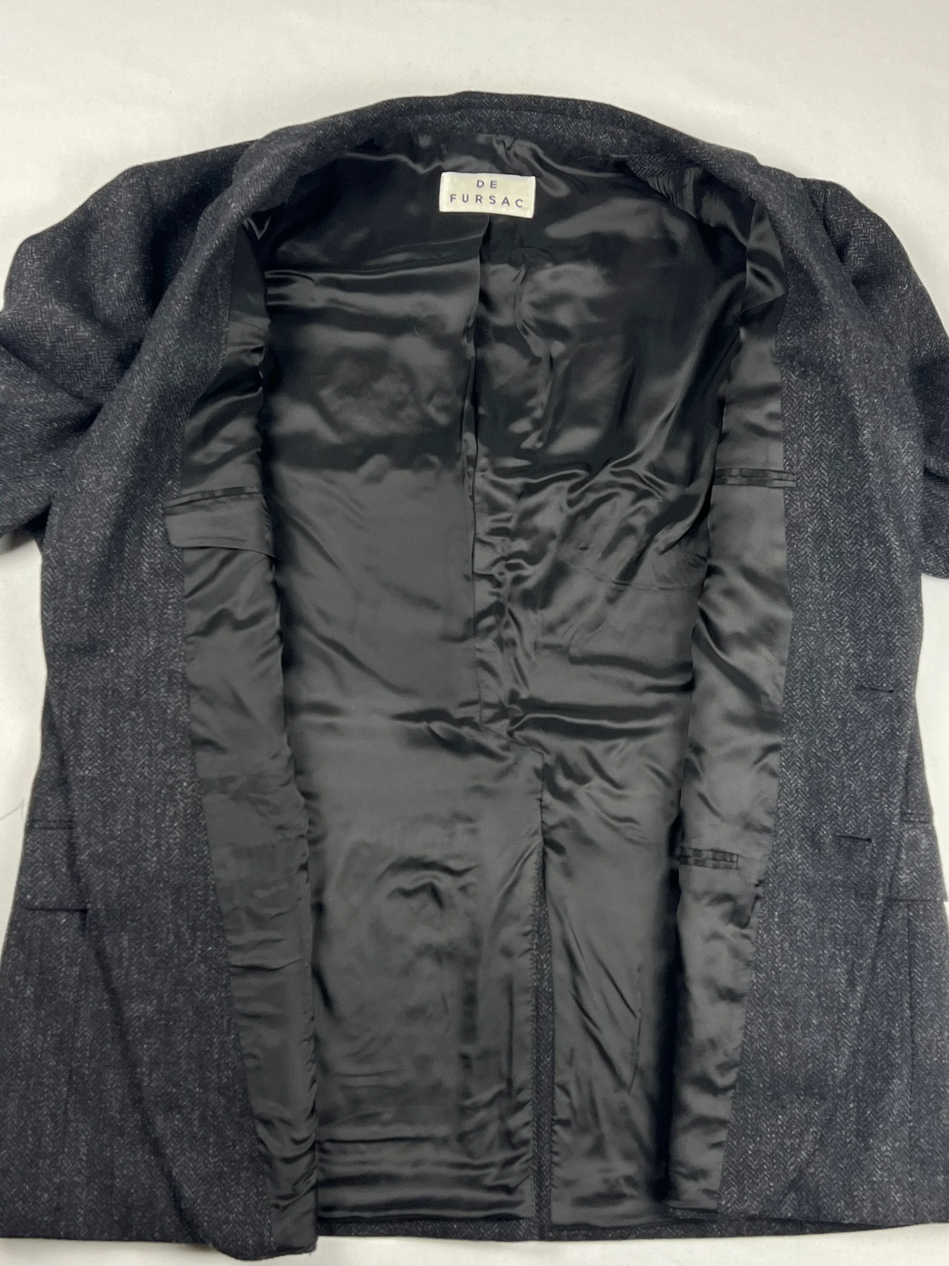 Veste en laine de la marque Fursac. Coupe droite, 2 boutons Veste doublée Double fentes Tissu confectionné en Italie Matière : 100% Laine Doublure : 100% Viscose