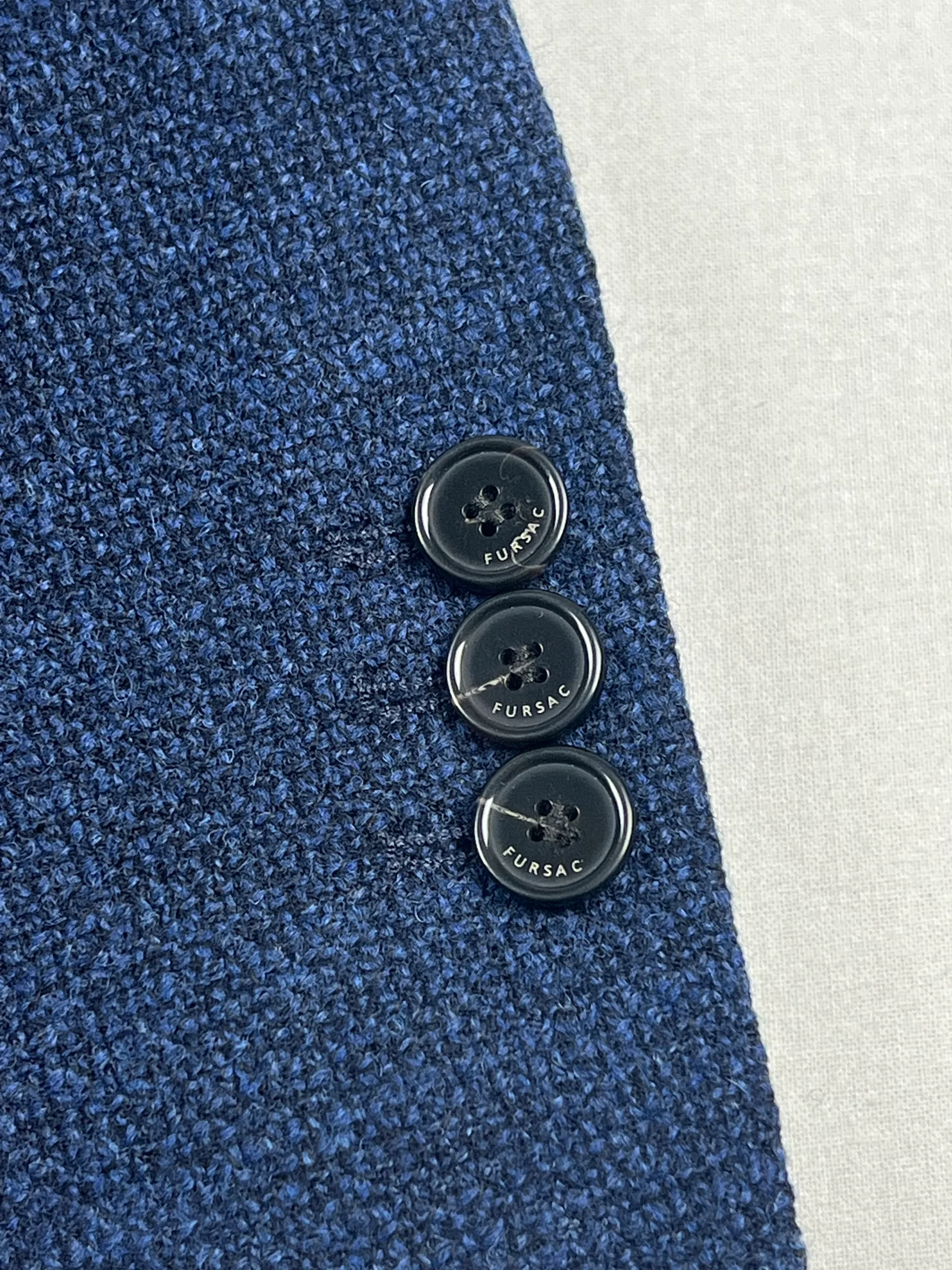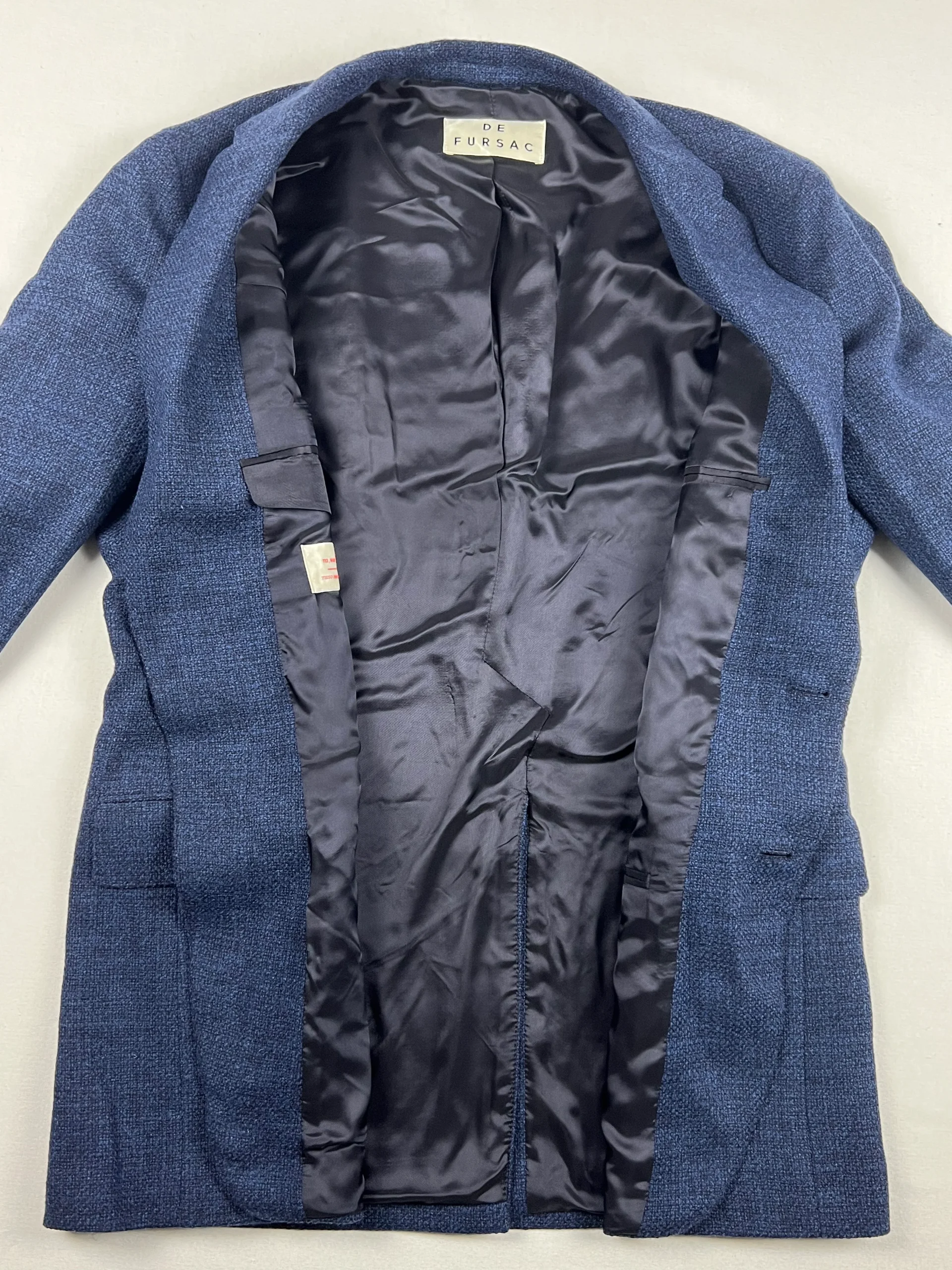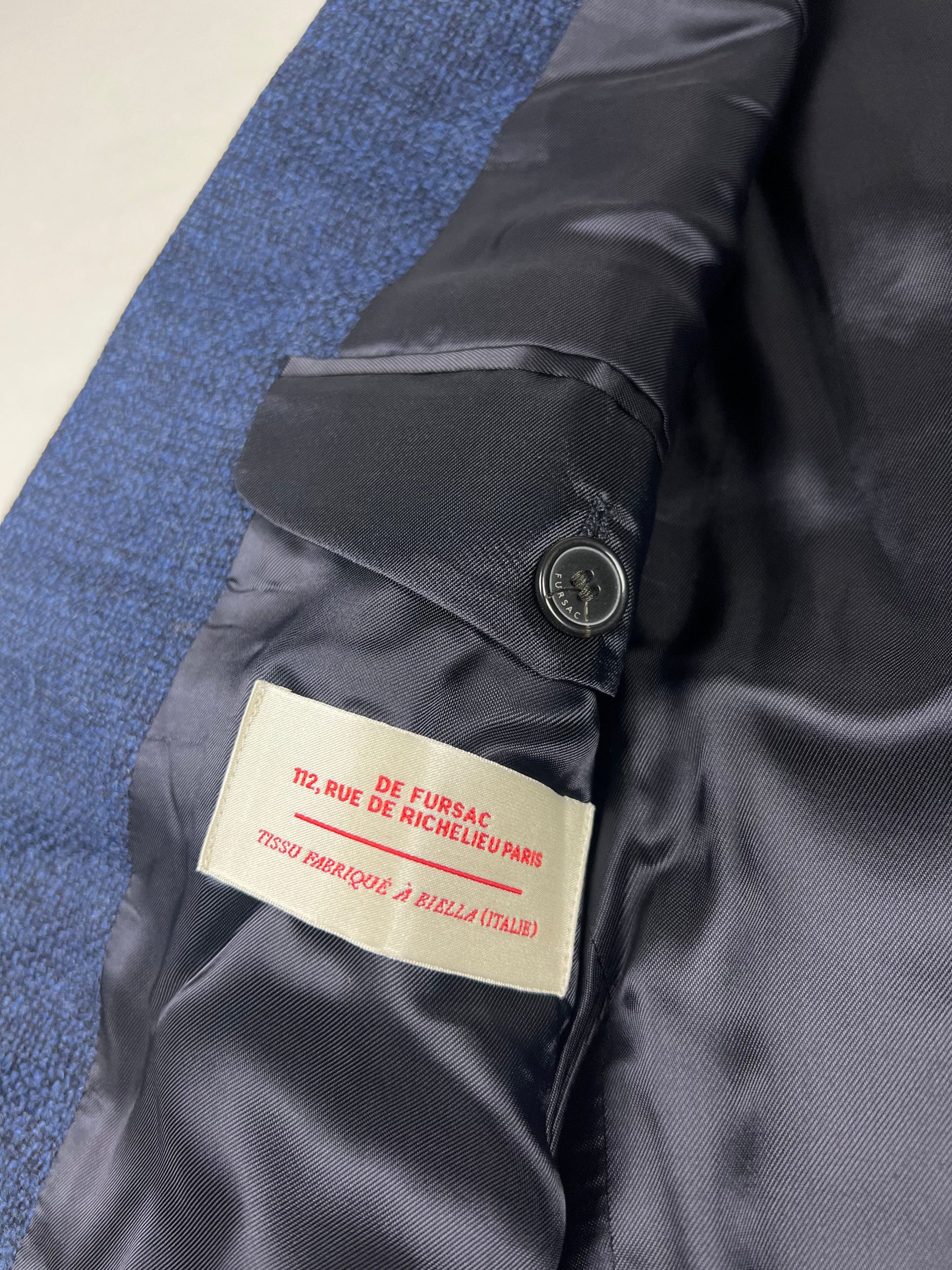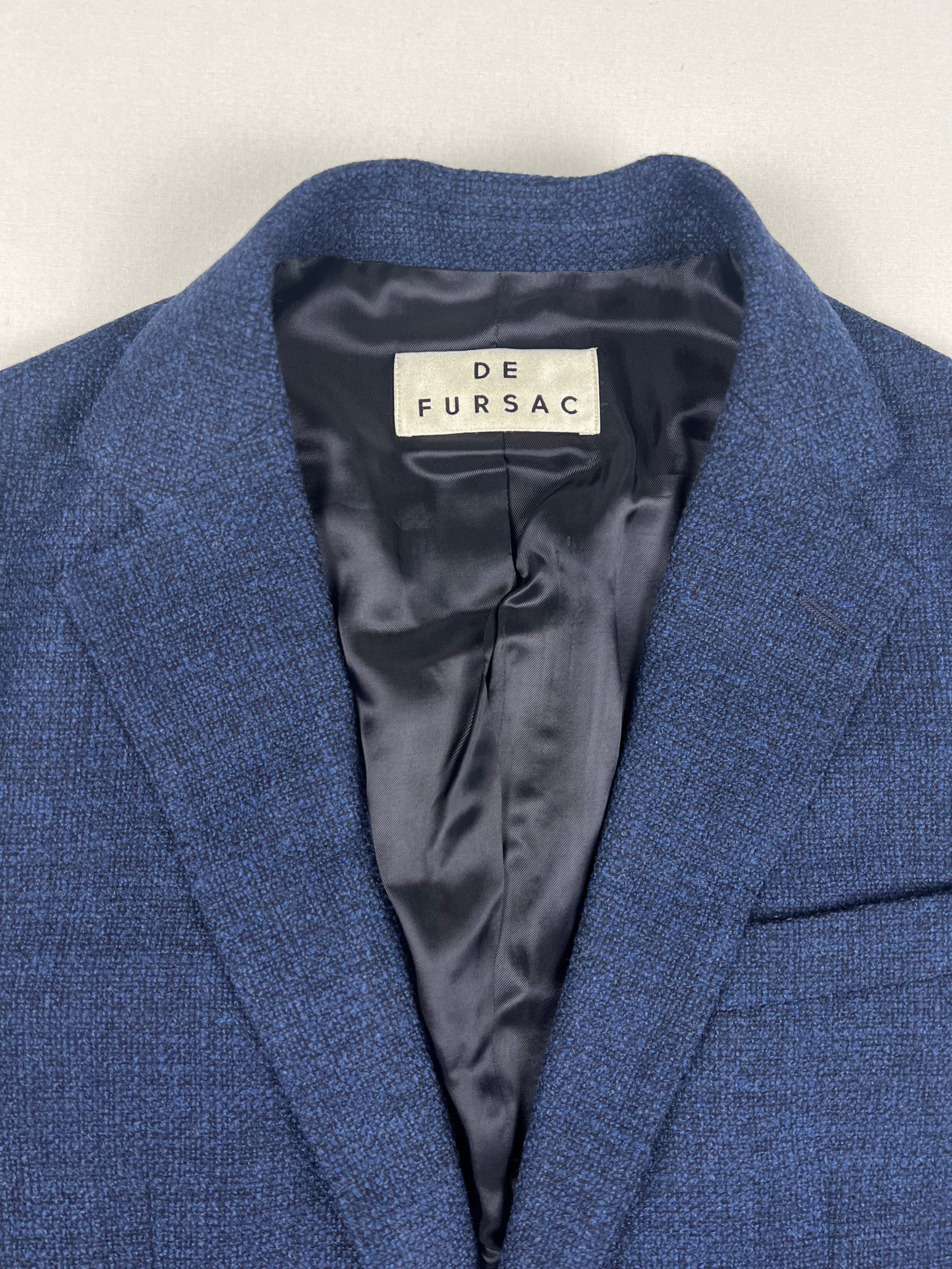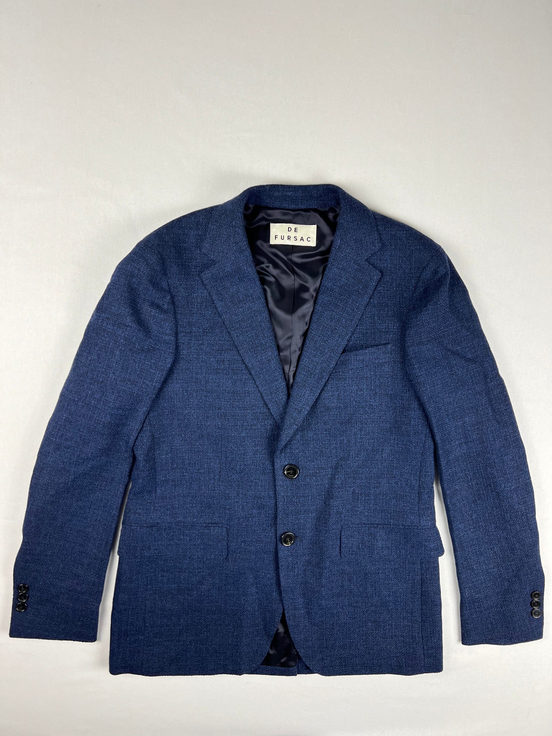 Veste en laine de la marque Fursac. Coupe droite, 2 boutons Veste doublée Double fentes Tissu confectionné en Italie Matière : 100% Laine Vierge Doublure : 100% Viscose