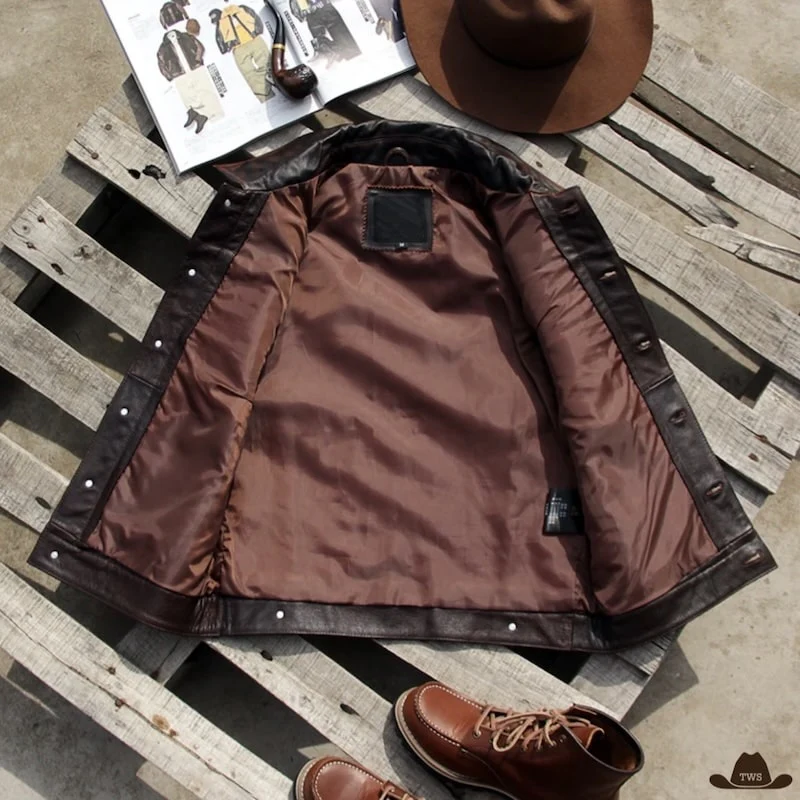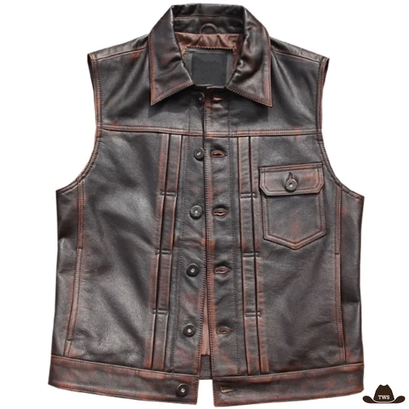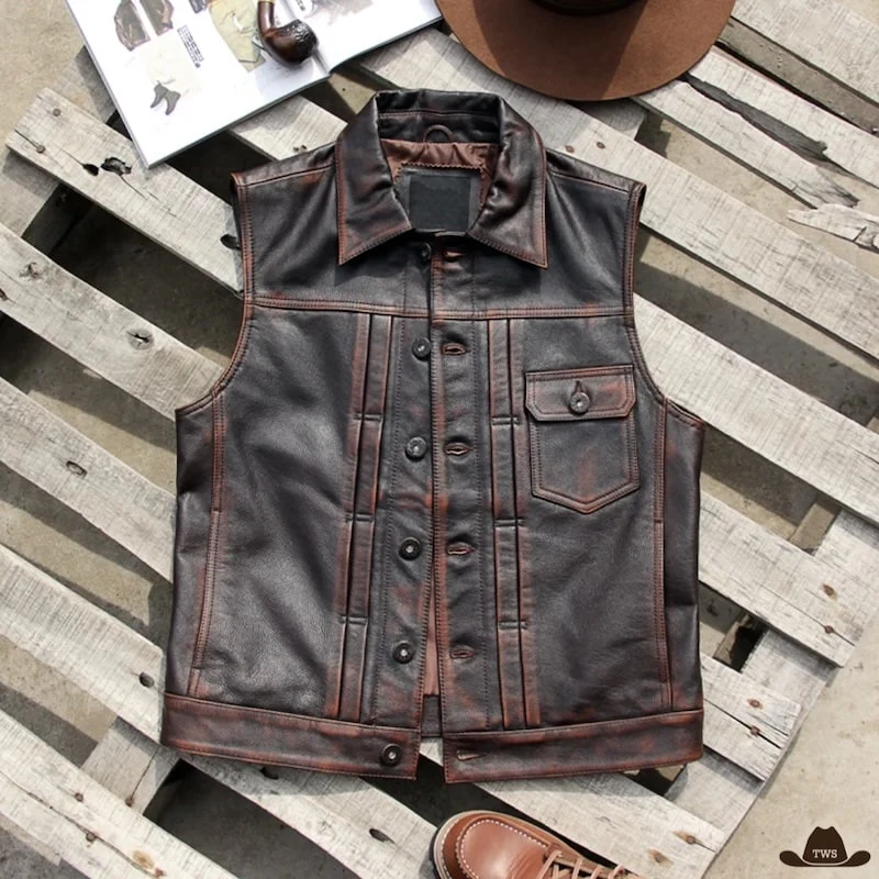 Gilet Homme Sans Manche en Cuir Western