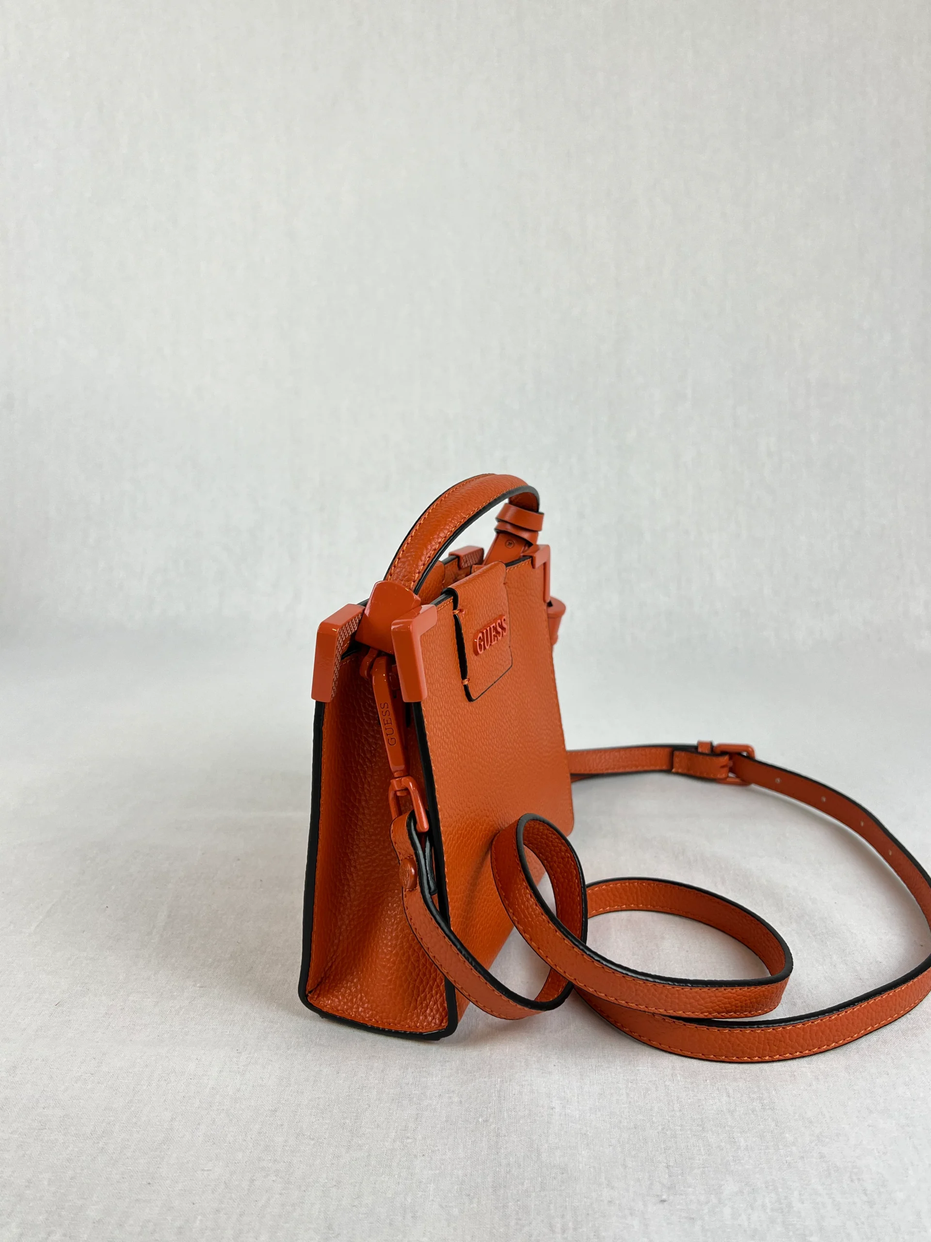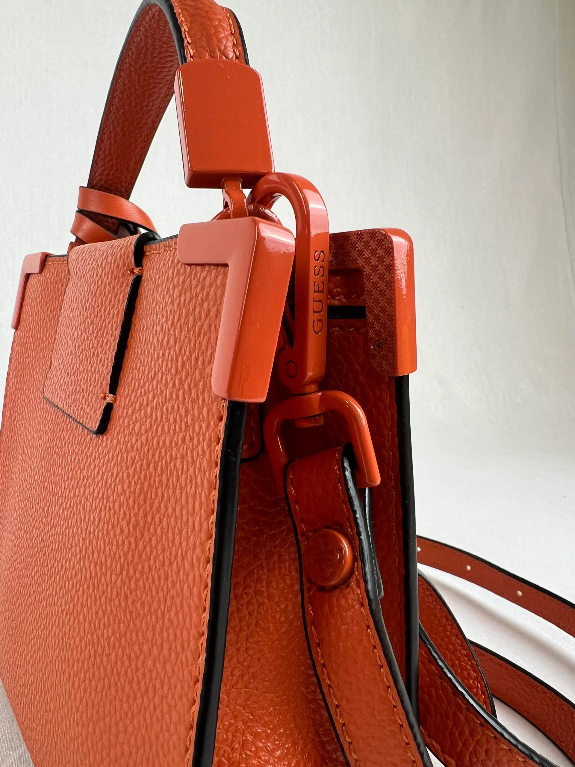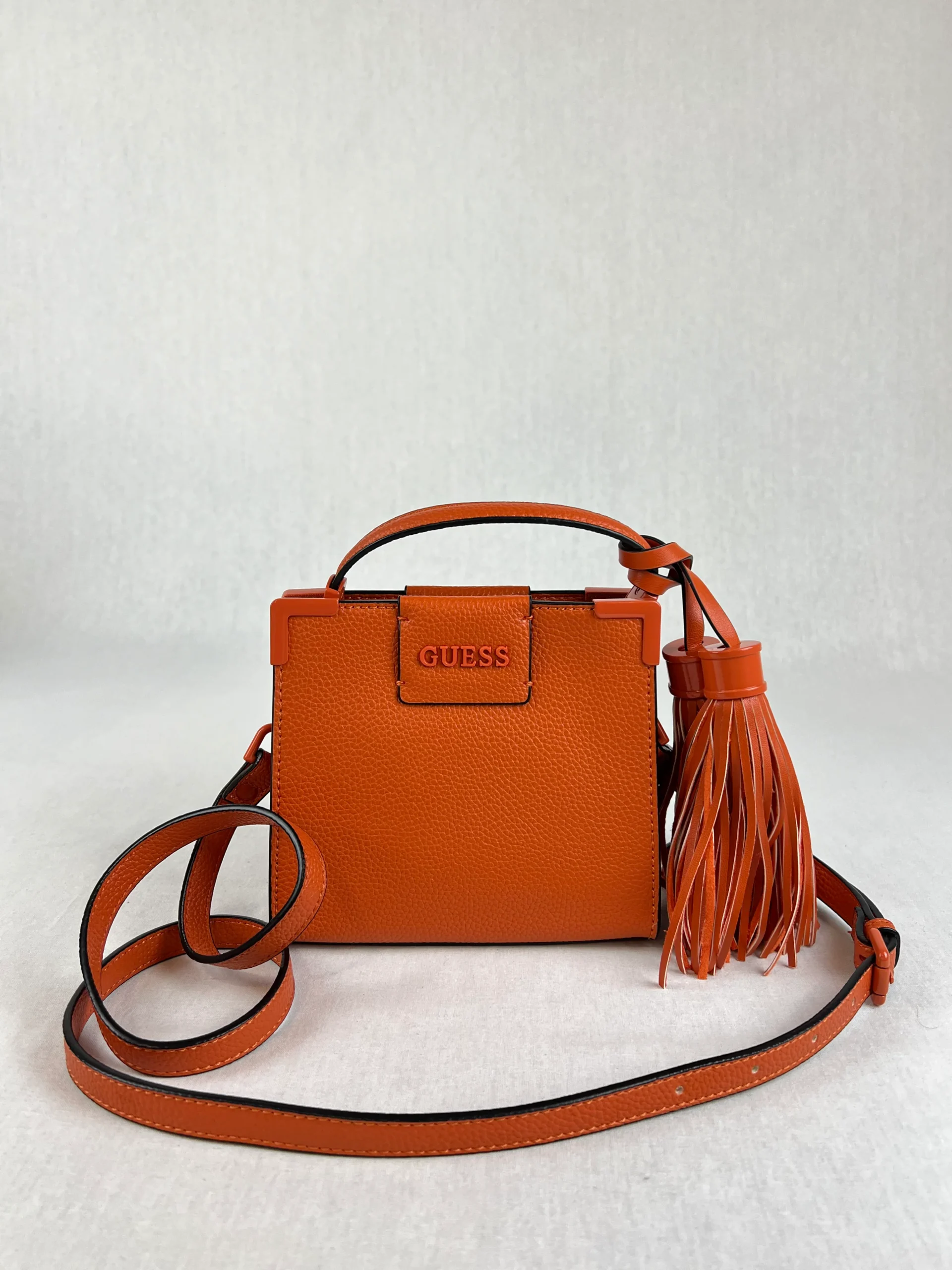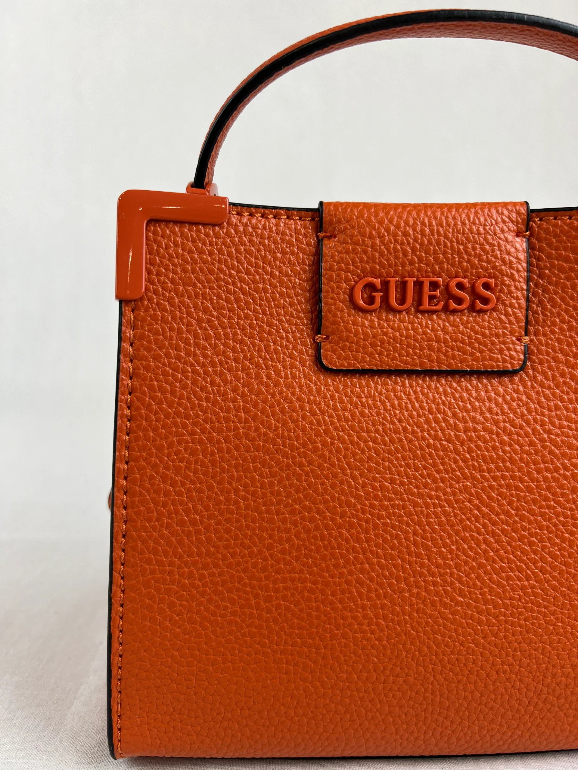 Sac à main de la marque Guess modèle Catania Mini Ce sac est équipé d’une fermeture à bouton magnétique et dispose d’une poche intérieure zippée. Matières : Simili Cuir / Polyuréthane Couleurs : Orange Couleurs : Jaune Taille : 15cm x 17cm x 6cm