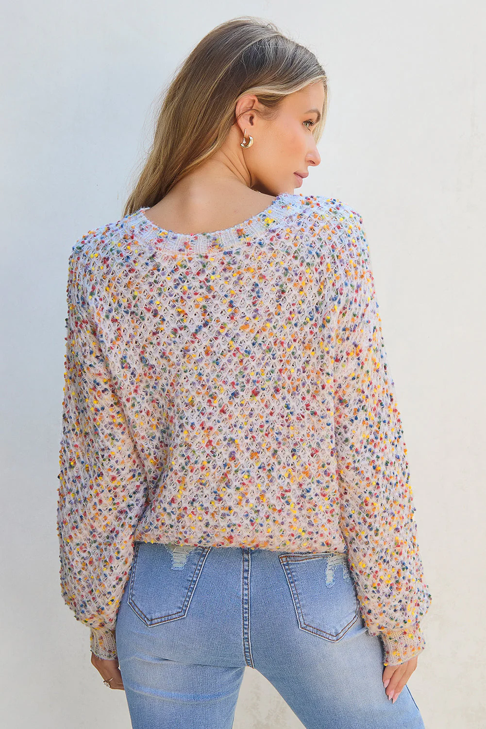 Impressionnez avec un motif de confettis colorés. La texture chic du pop-corn rehausse le style. Tricot doux et confortable pour le confort. Pull polyvalent pour toutes les occasions. Restez au chaud avec style avec nos pulls pour femmes.
