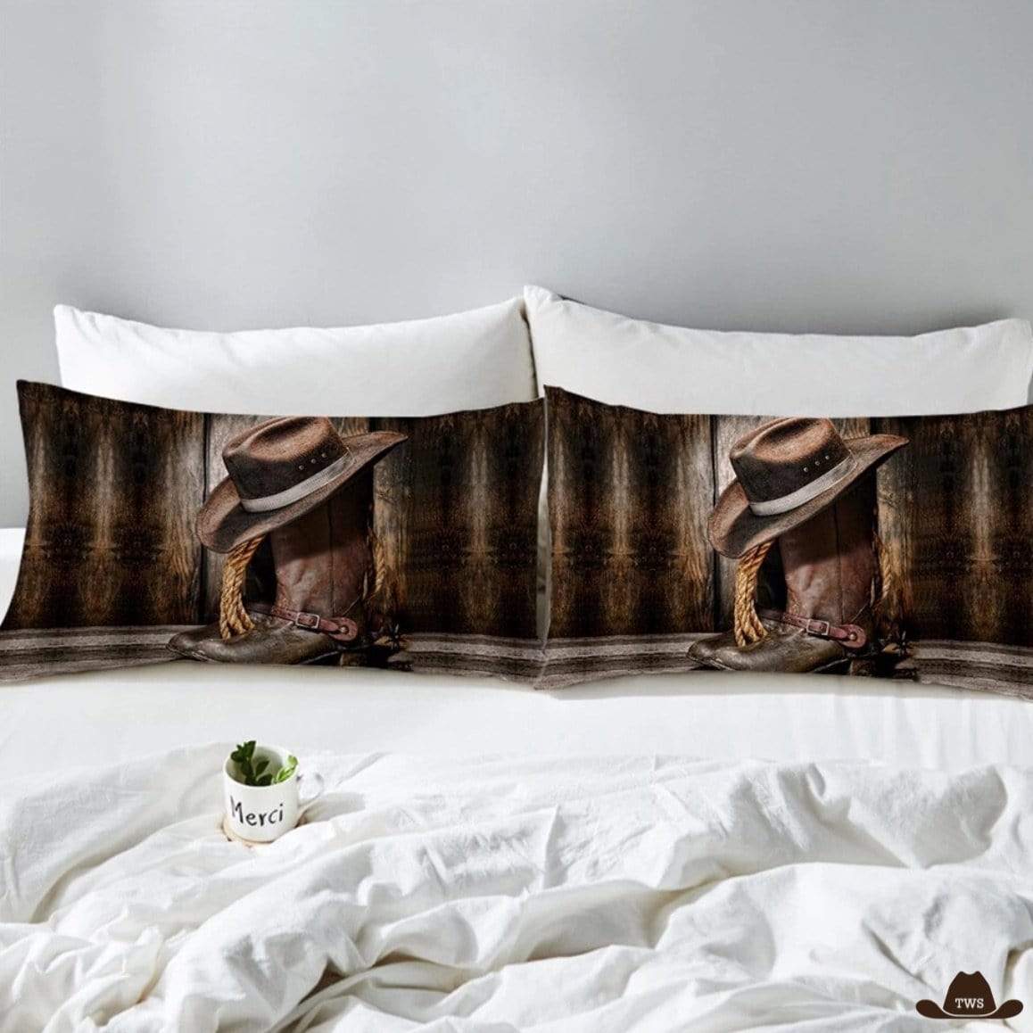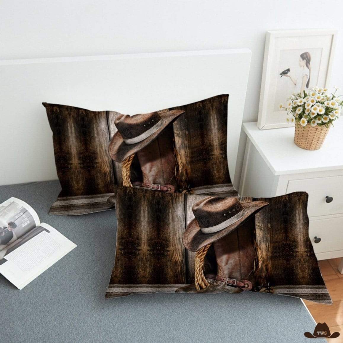 La housse d’oreiller western a été pensée pour les ardents passionnés de l’univers des cowboys. Son motif met en avant les éléments indispensables de ces hommes du Far West, tels que les bottes et le mythique chapeau de cowboy.