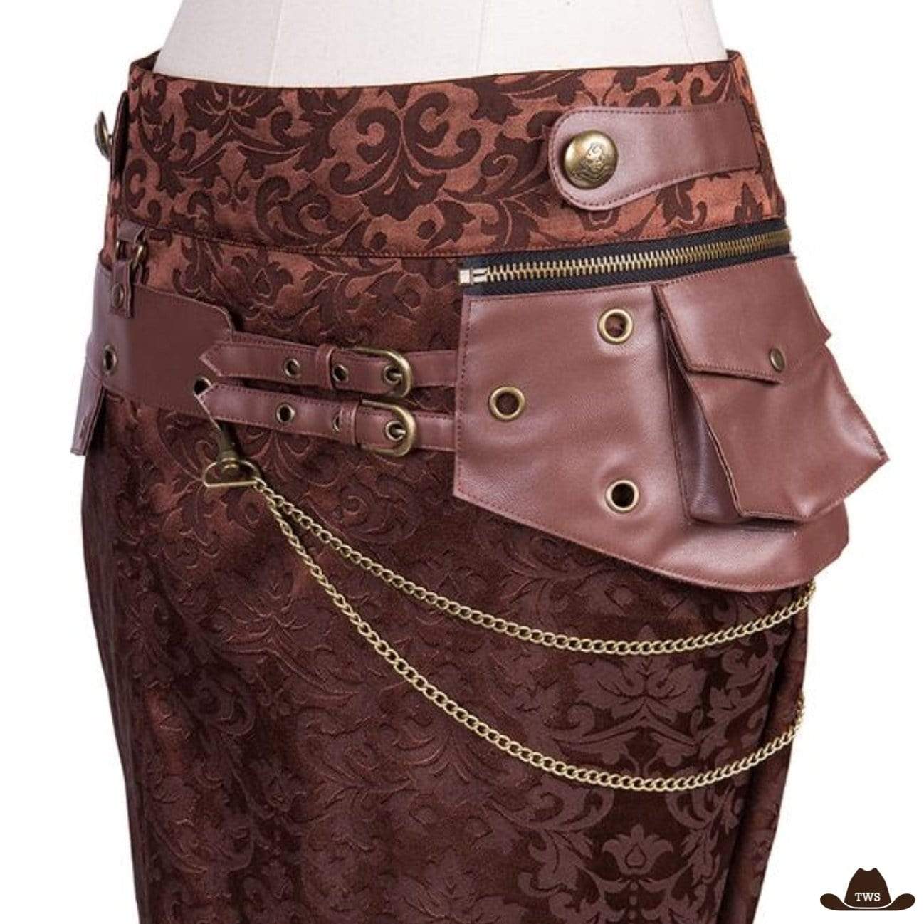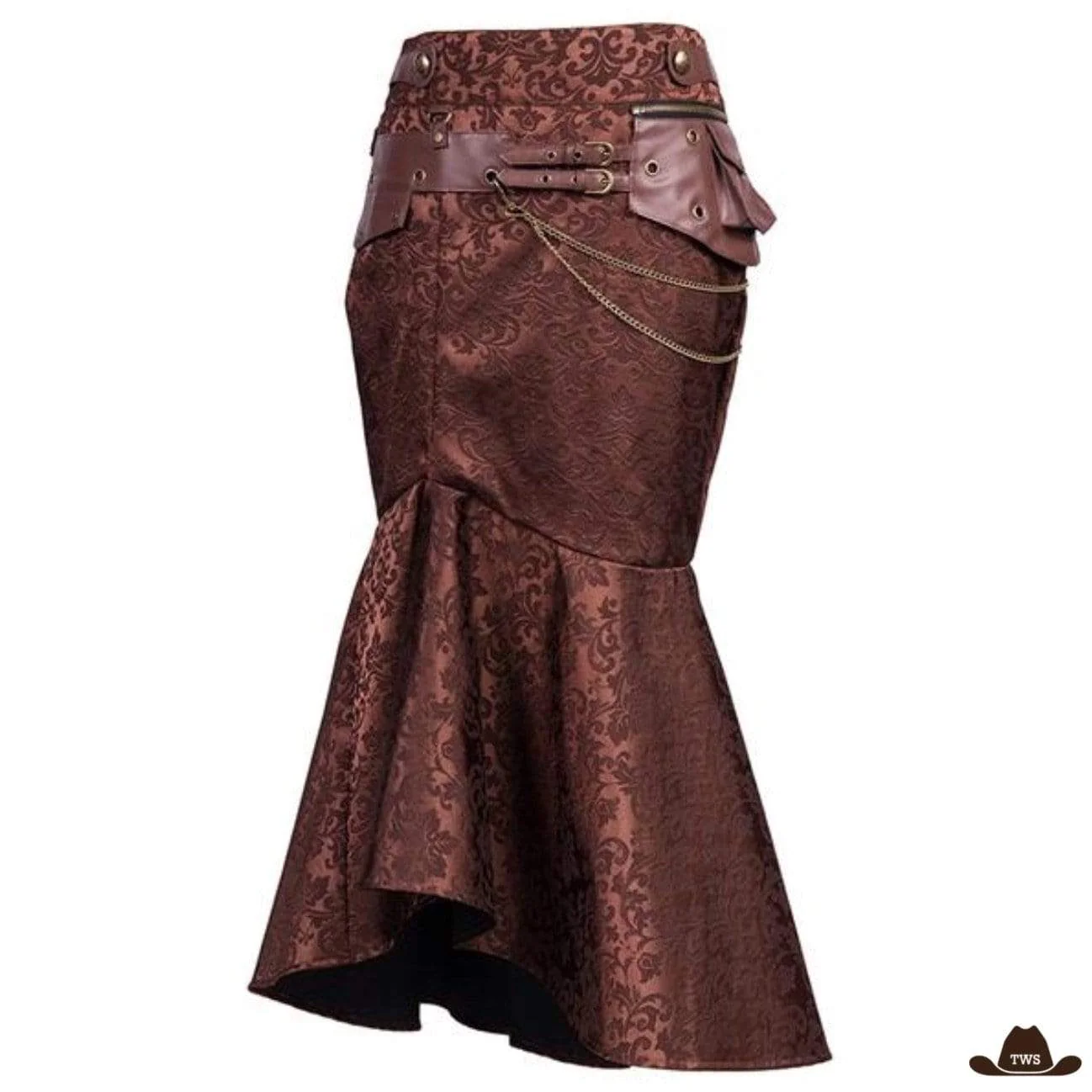 La jupe de cowgirl Western Costume fait partie intégrante des grands classiques du style western. Jupe indémodable, elle se démarque par sa couleur marron foncé et son tissage brocart facilement reconnaissables.