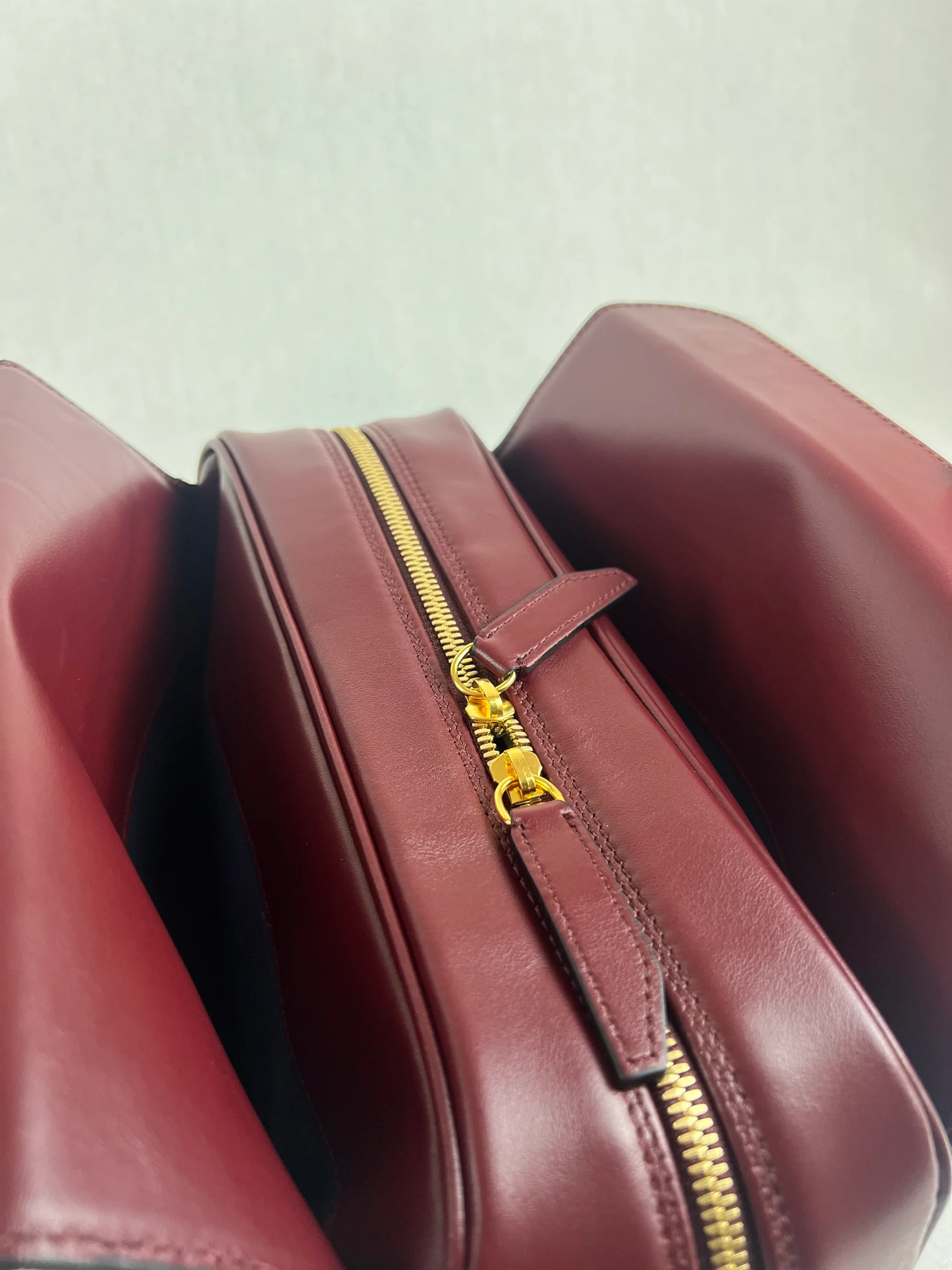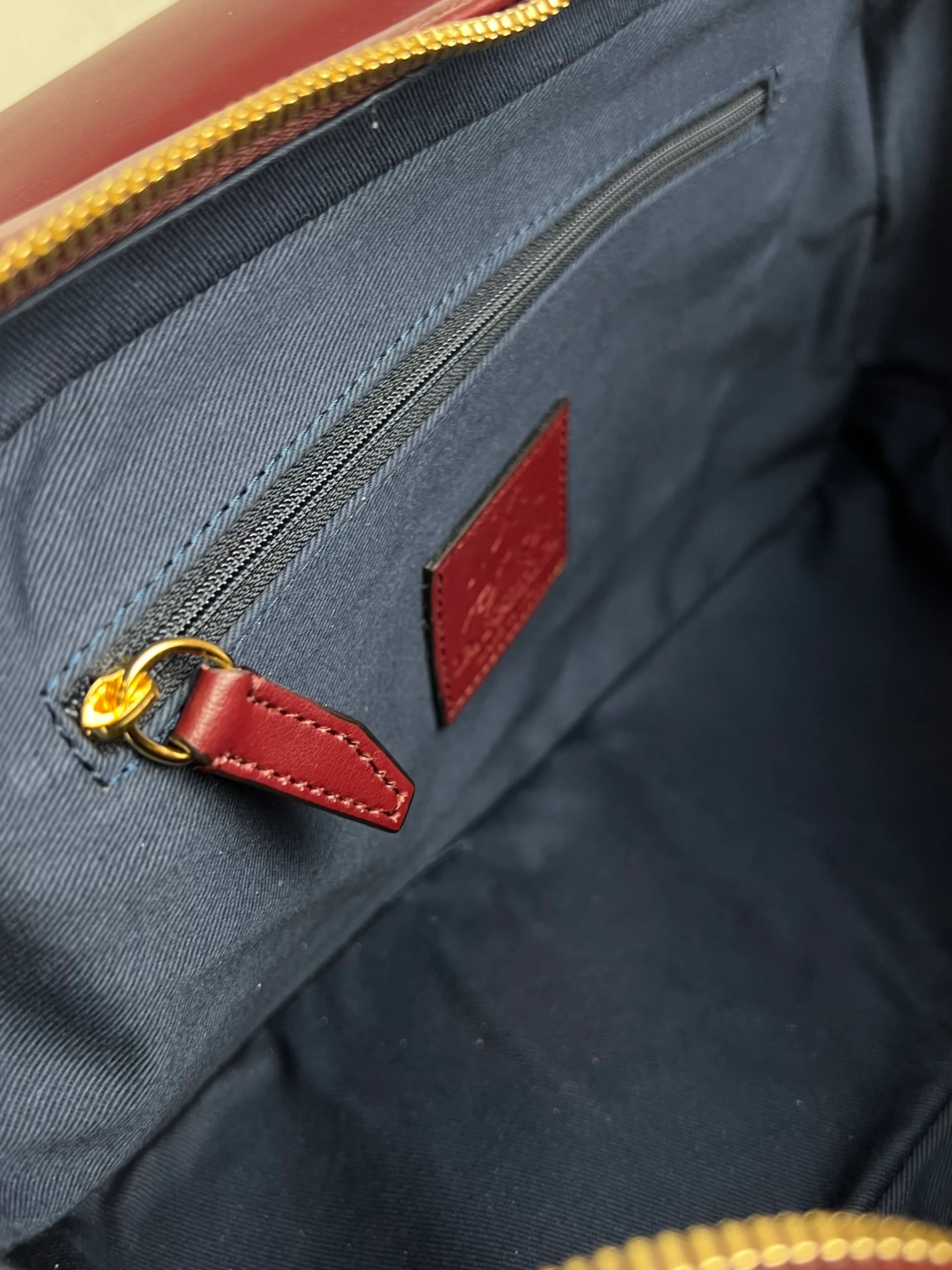 Ce sac est muni d’une longue fermeture magnétique et d’une fermeture zippée centrale, avec une poche zippée à l’intérieur.