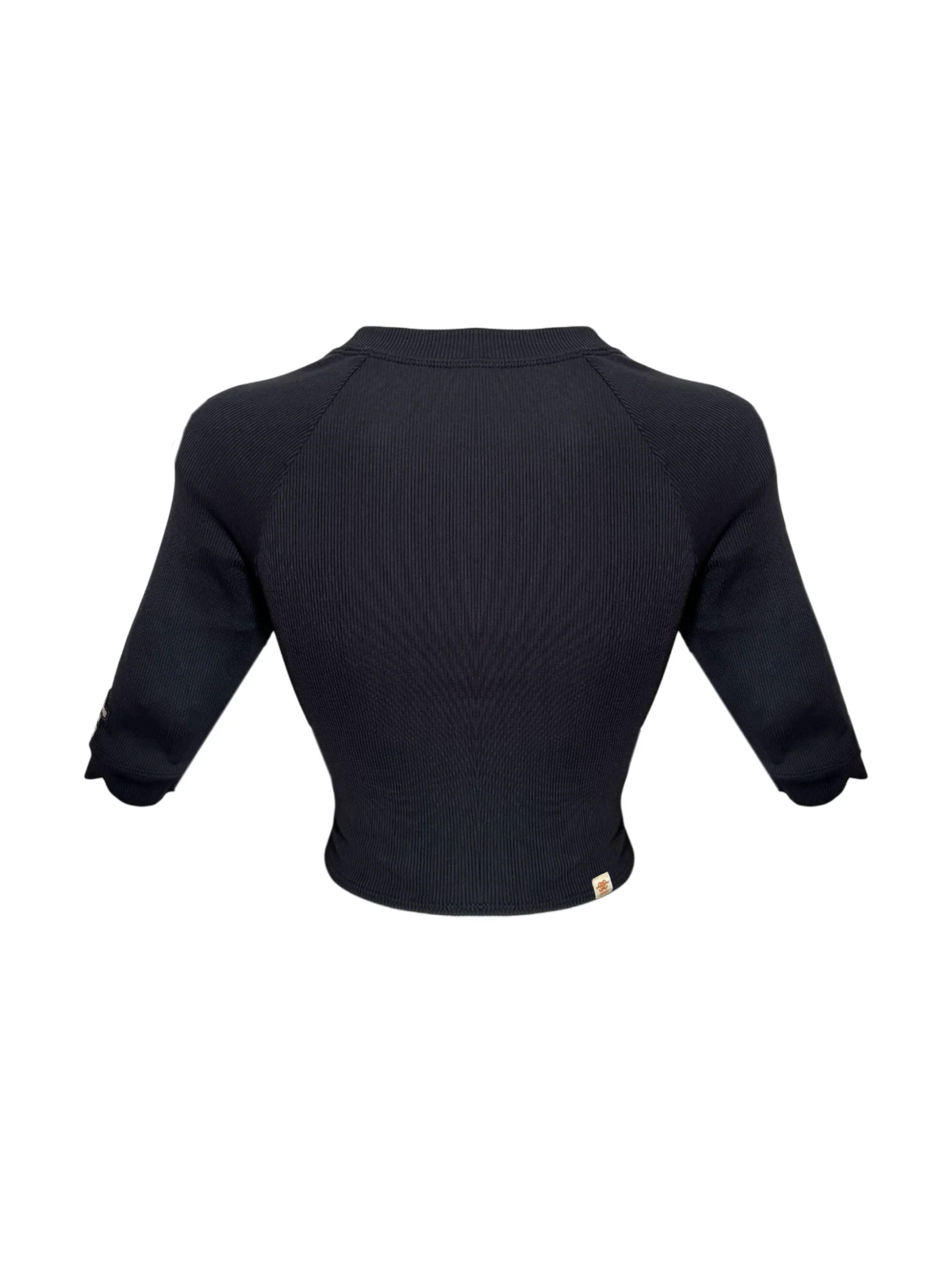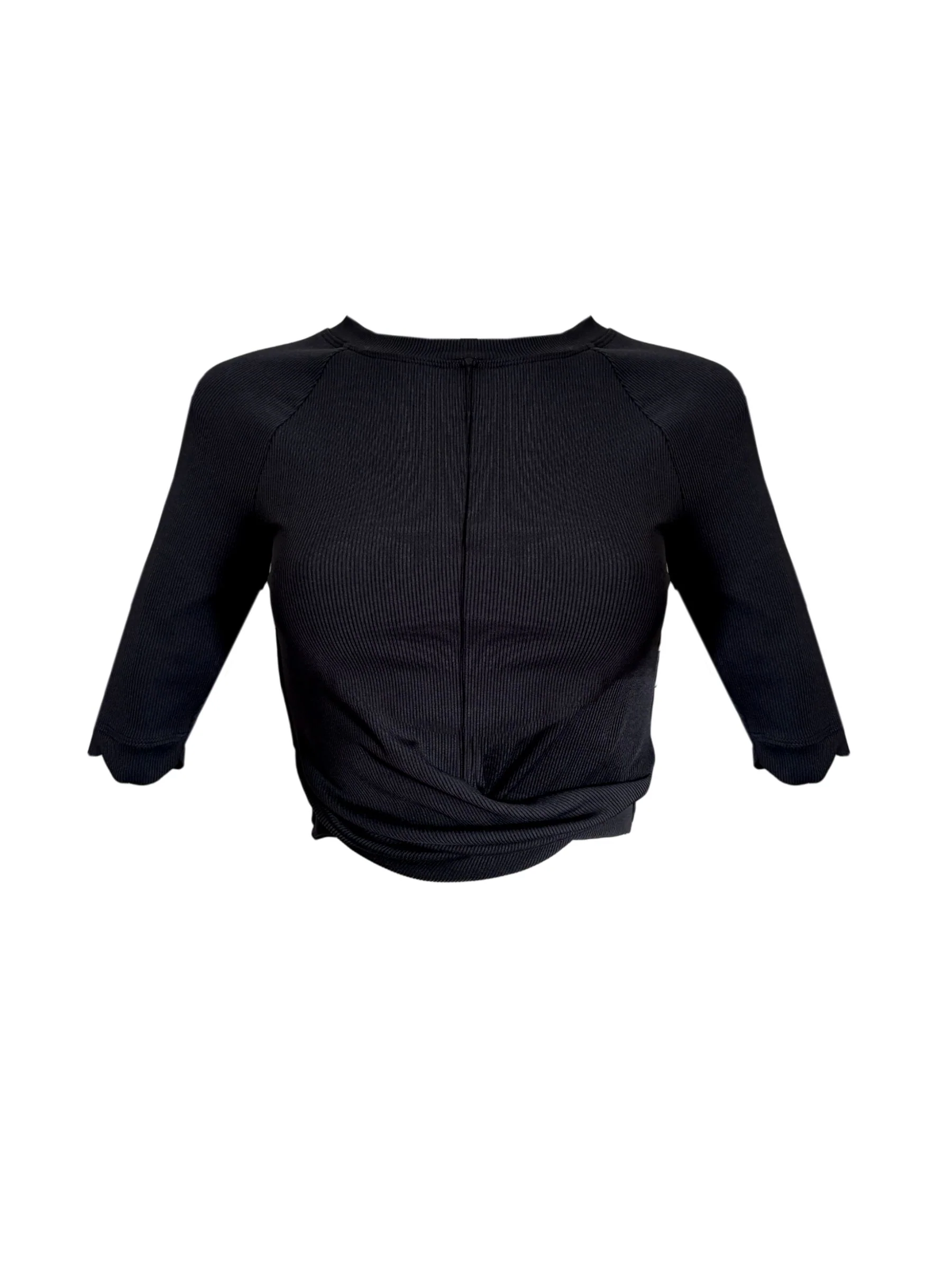 Le T-shirt PAM est réalisé dans notre nouveau tissu côtelé recyclé. La coupe et le design dessinent la silhouette avec harmonie et souci du détail. Le nœud drapé vient sublimer la coupe ajustée avec grâce. Disponible en Noir.