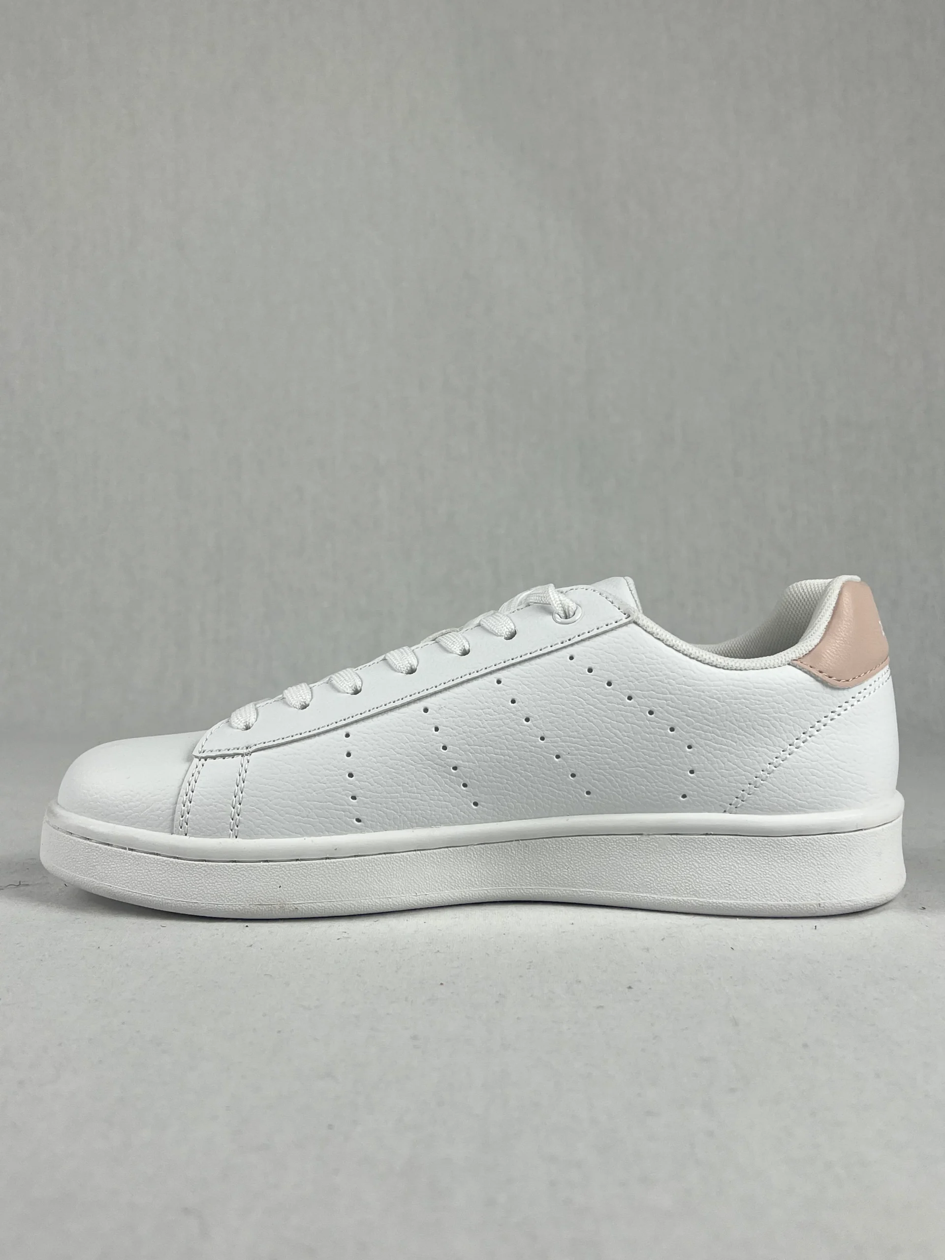 Sneakers au design classique et épuré en cuir, avec un talon contrasté en couleur.