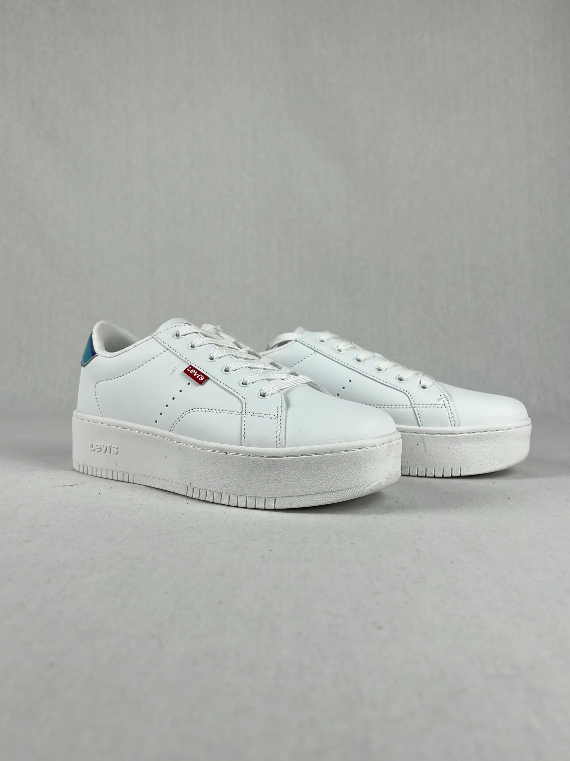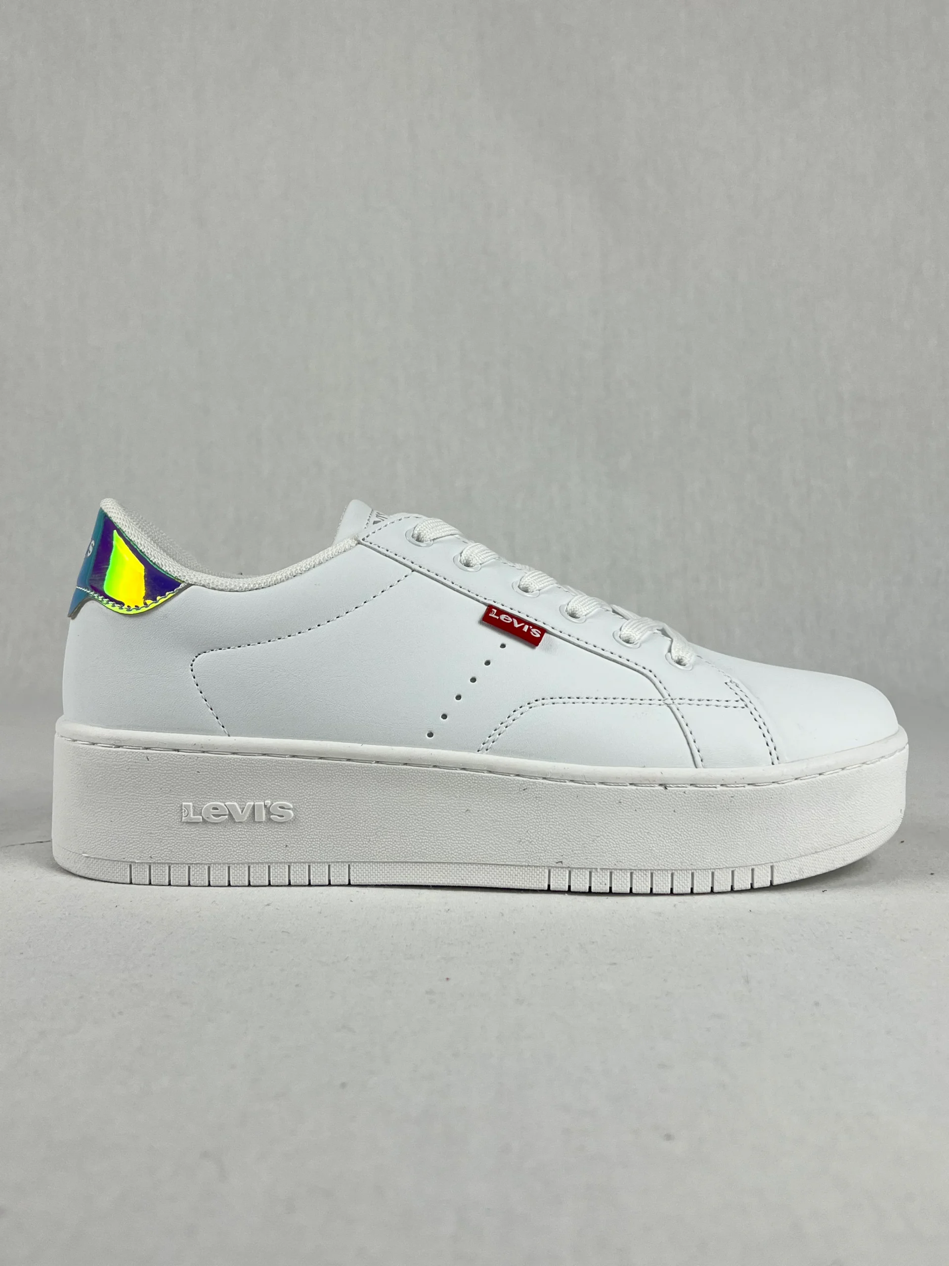 Chaussures de la marque Levis modèle Empire Sneakers au design classique et épuré en cuir, avec un talon à effet caméléon, changeant de couleur. Matières : Cuir