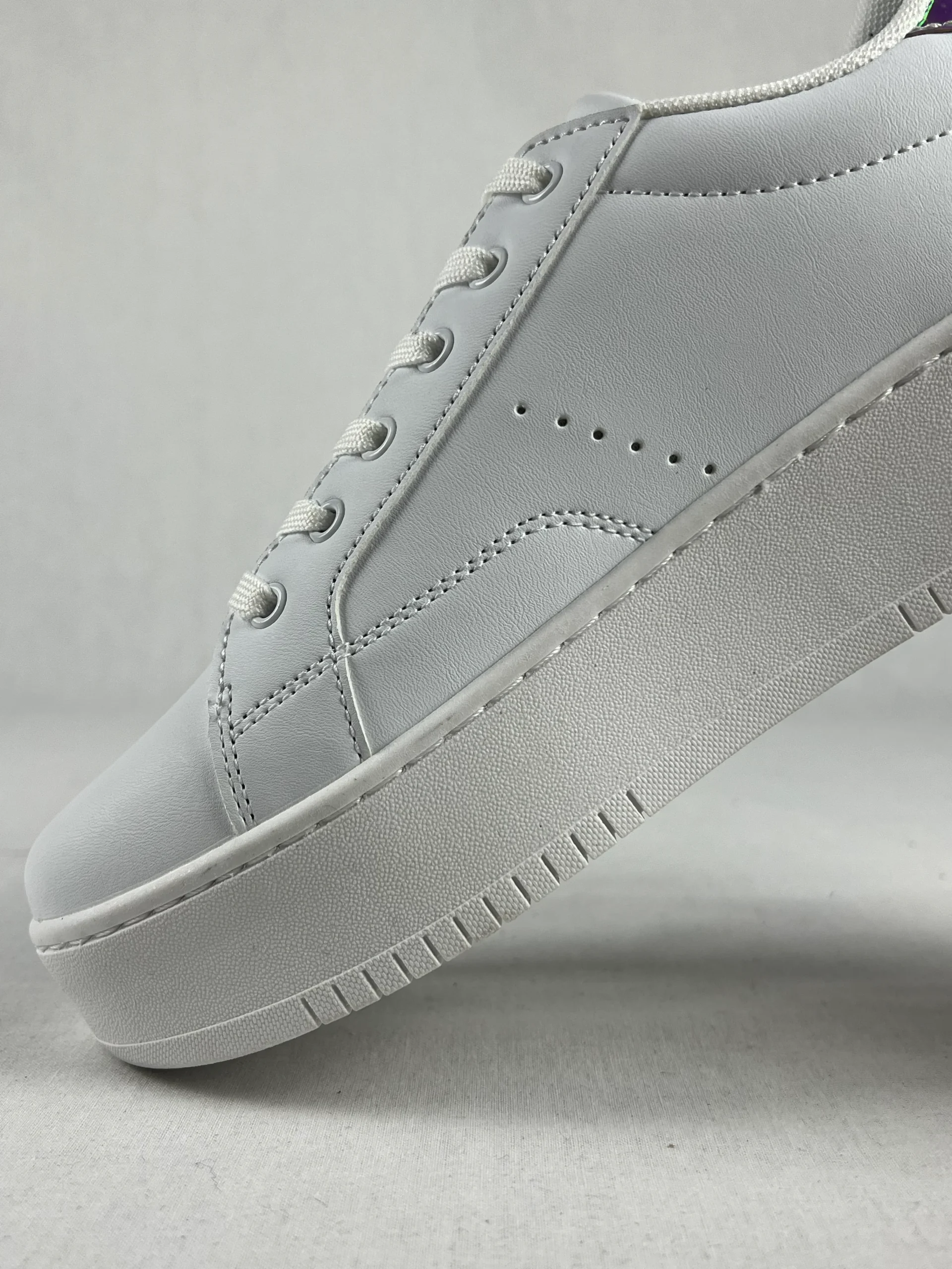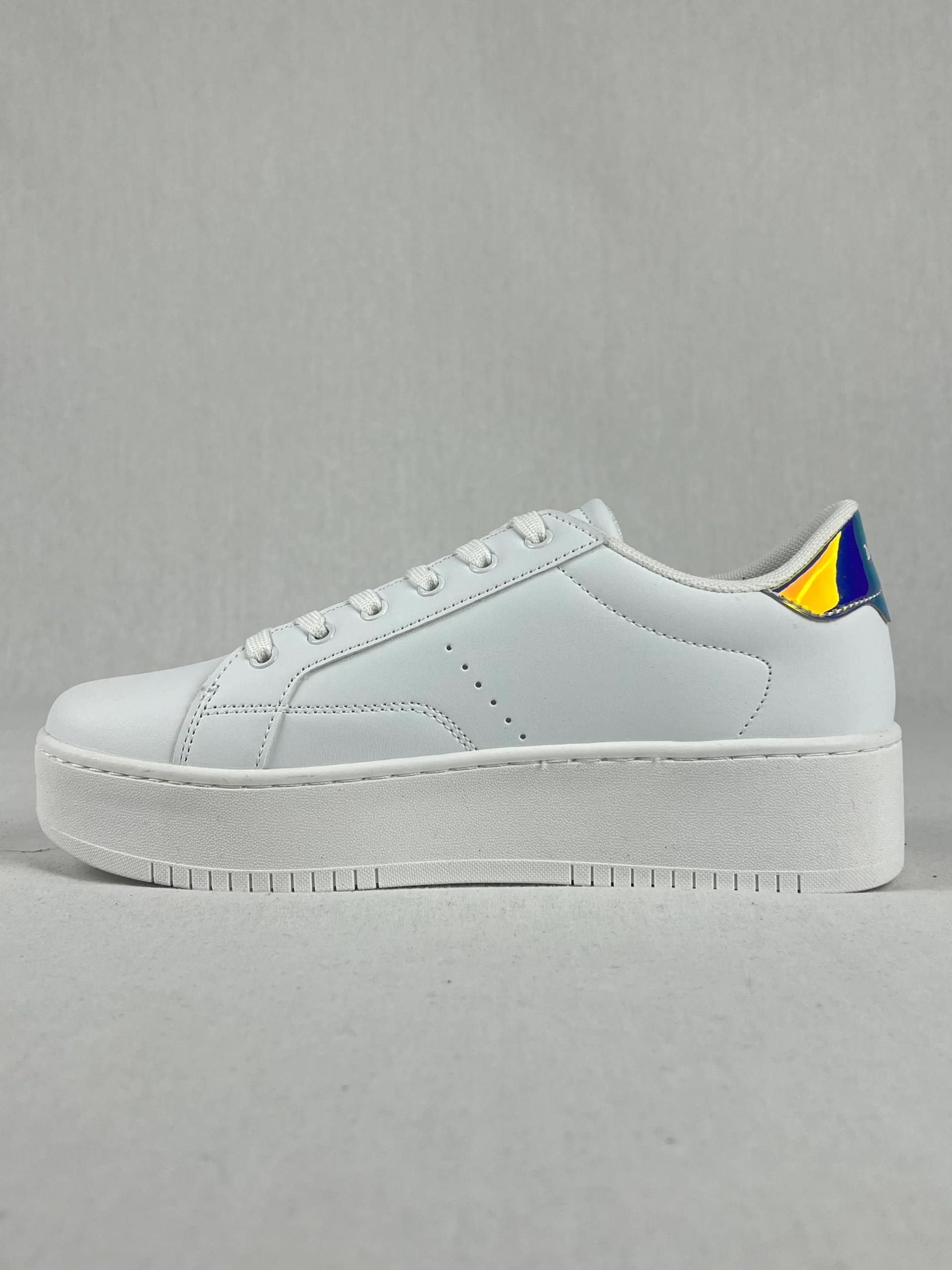 Sneakers au design classique et épuré en cuir, avec un talon à effet caméléon, changeant de couleur.