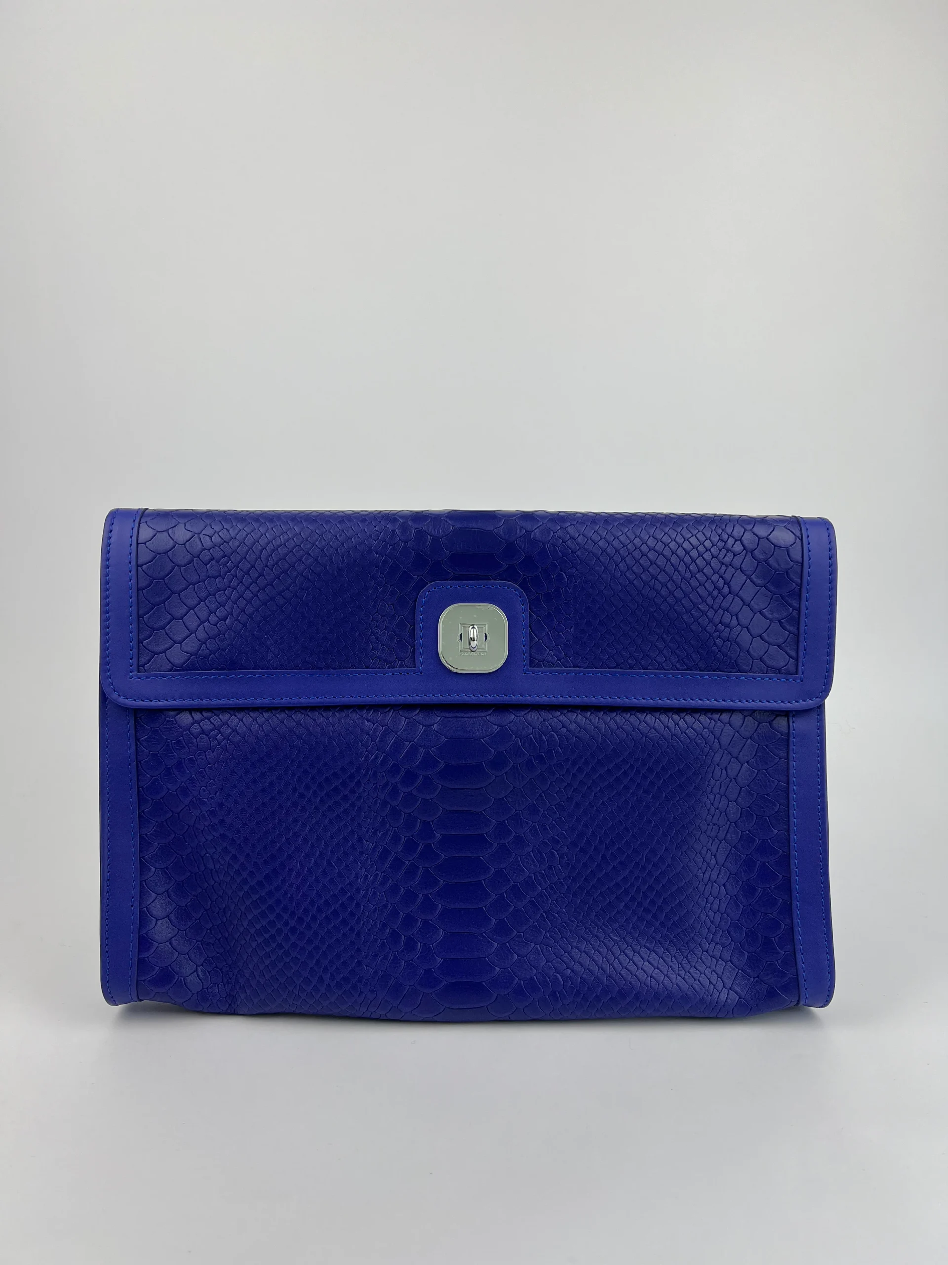 Pochette de la marque Longchamp. Cette pochette est équipé d’une fermeture à bouton magnétique et comprend une poche intérieure zippée. Une pochette de protection est fournie avec ce sac. Matières : Cuir de vachette façon python Taille : 32cm x 23cm x 4cm