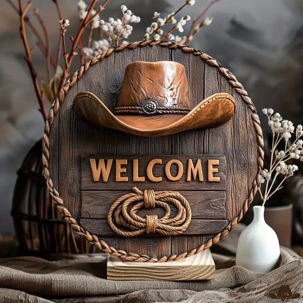 Apportez une touche de Far West à votre entrée ou à votre intérieur avec ce panneau de bienvenue. Avec son design simple, mais évocateur, il accueille vos invités dans une ambiance chaleureuse, rustique et pleine de caractère. Parfait pour les amoureux de l’univers cowboy, ranch ou vintage américain.