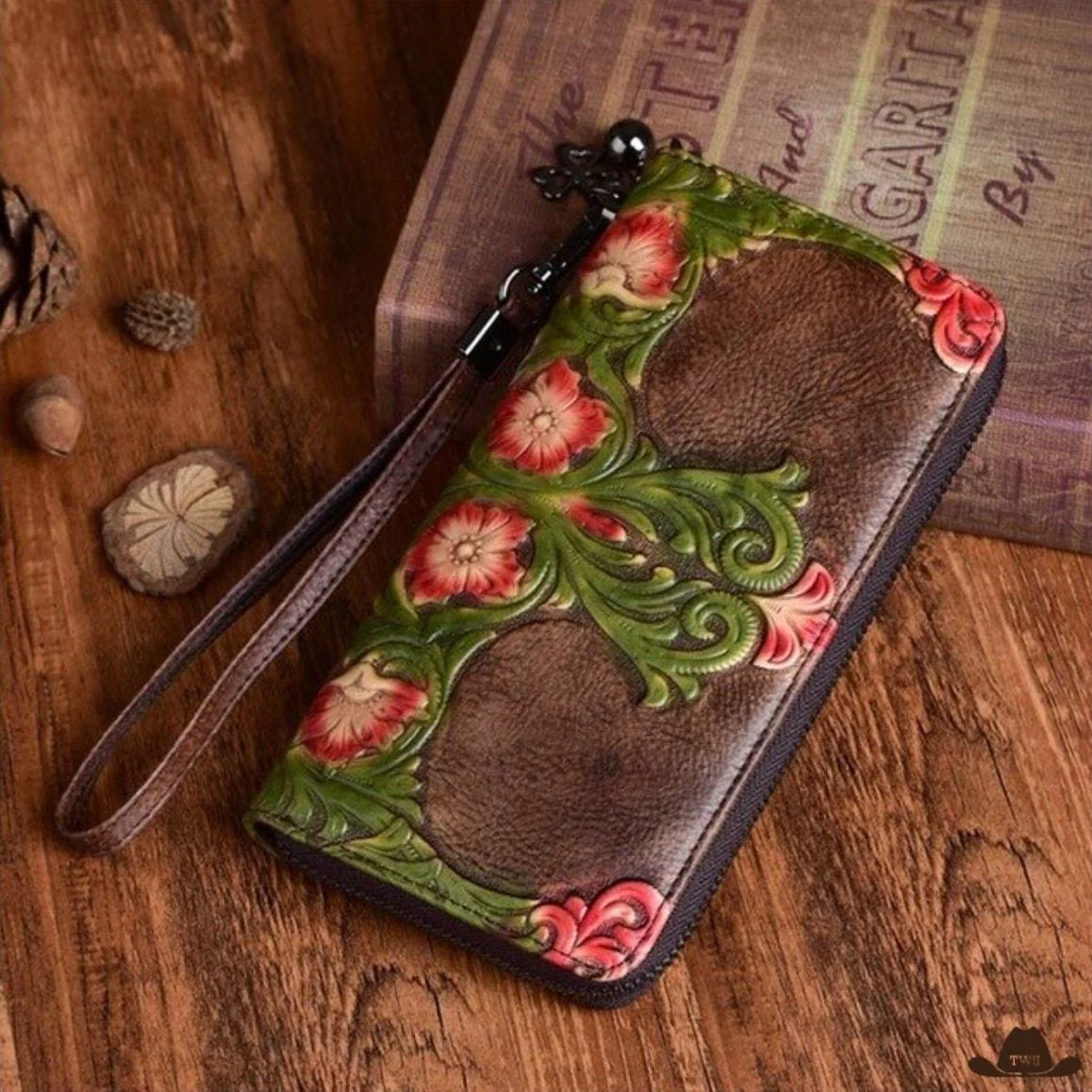 Le portefeuille en cuir au motif floral est un modèle unique alliant authenticité et élégance country. Conçu à la main, en cuir véritable de qualité supérieure, il se distingue par ses motifs floraux en cuir travaillé.
