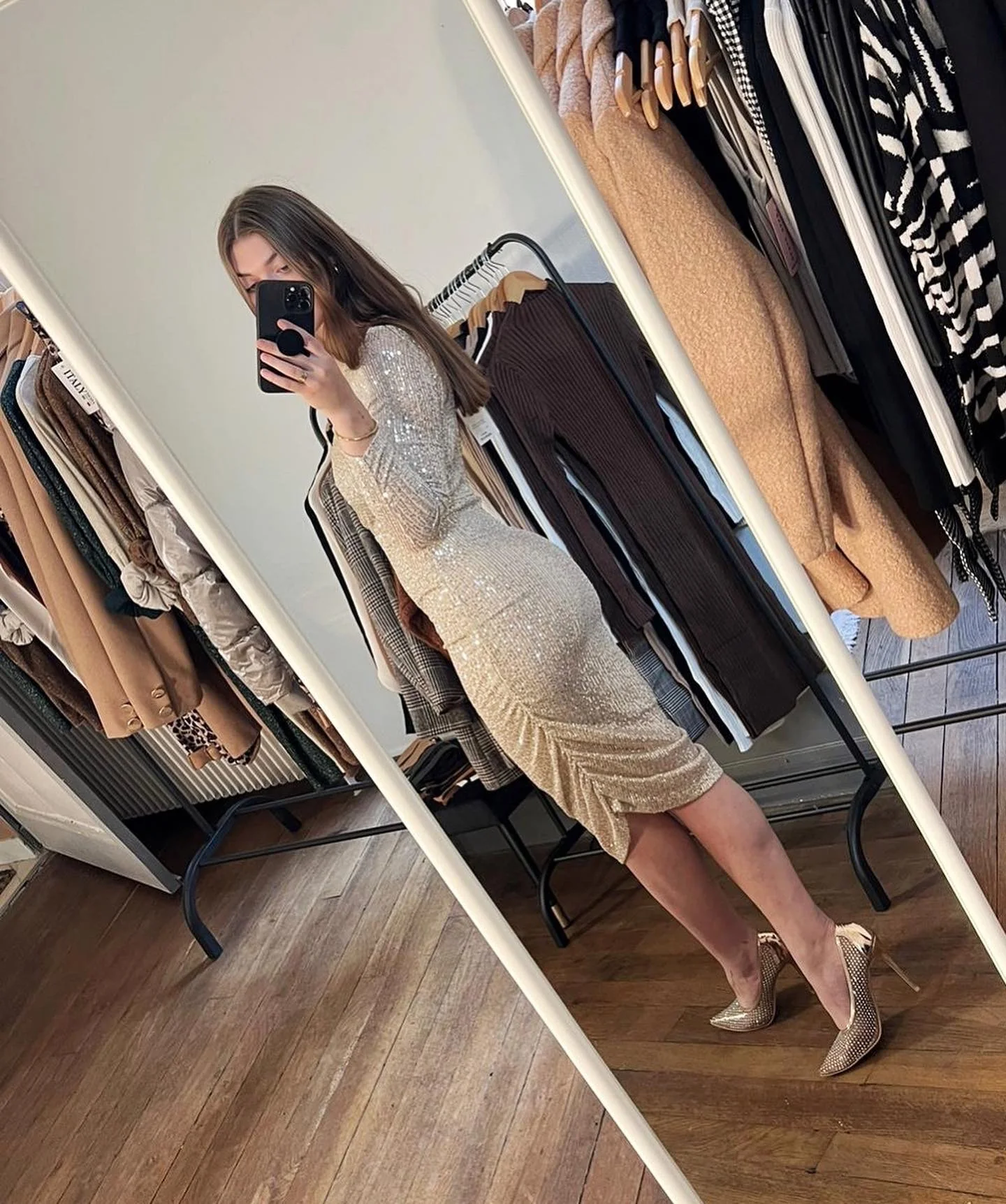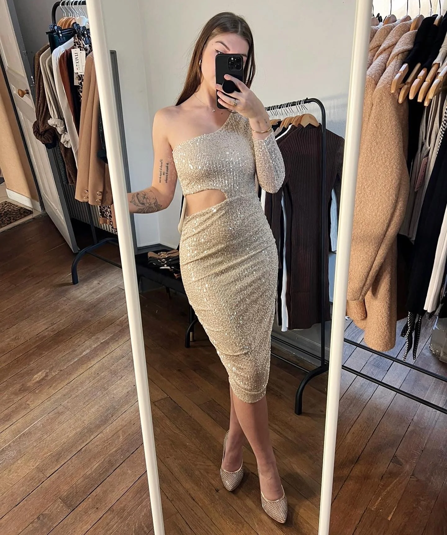 Robe asymétrique en sequin ! Aucun doute, vous serrez la reine de la soirée ✨ Taille : TU ( convient pour : 34 / 36 / 38 ) 2 coloris : Doré / Noir