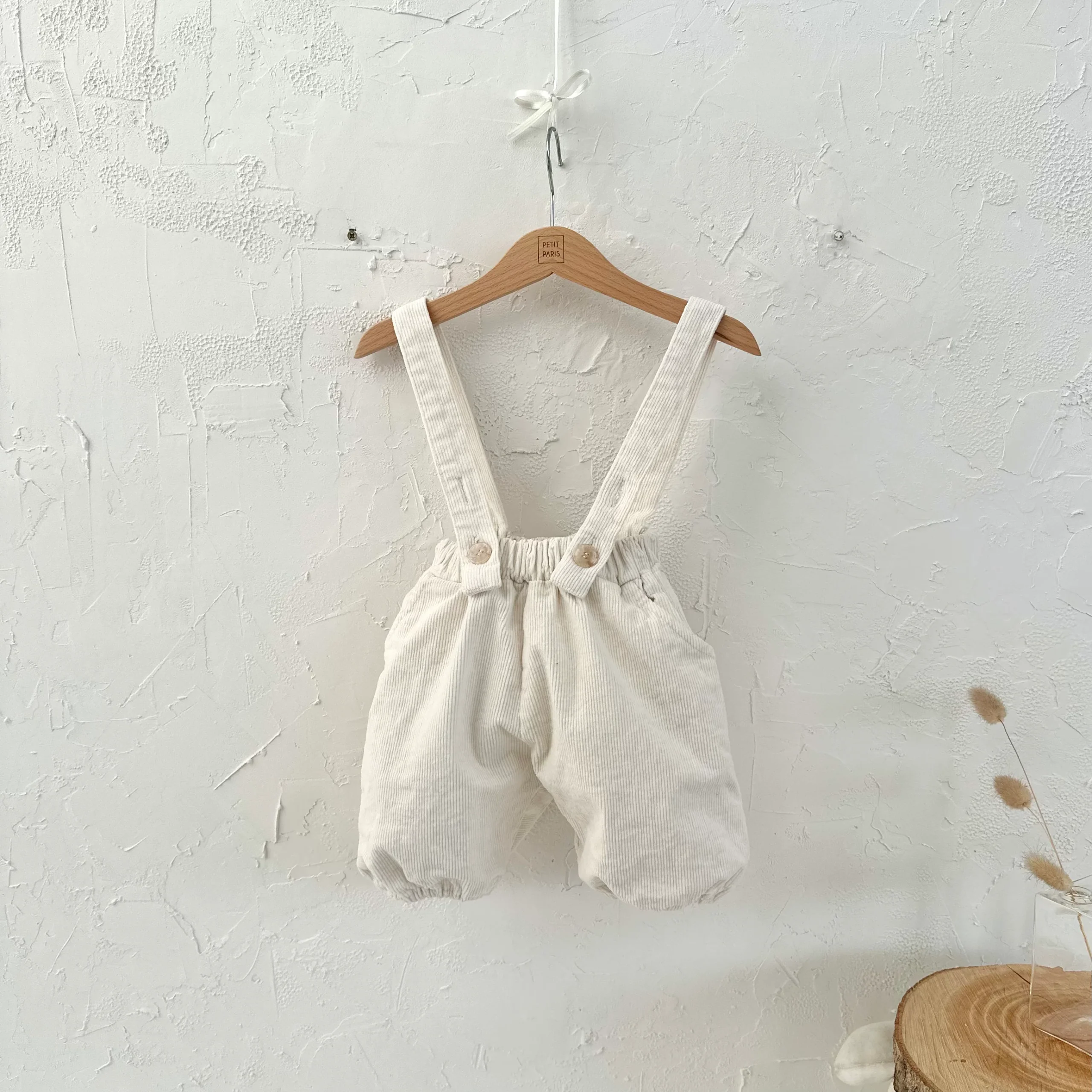 Description : Short bouffant en velour côtelé avec bretelles. Materiaux: 100% coton Entretien: Lavage délicat à froid. Laver avec couleur similaire. Repassage à température basse. Pas de séche linge. Ne pas utiliser de javel. Ne pas tordre pour essorer.