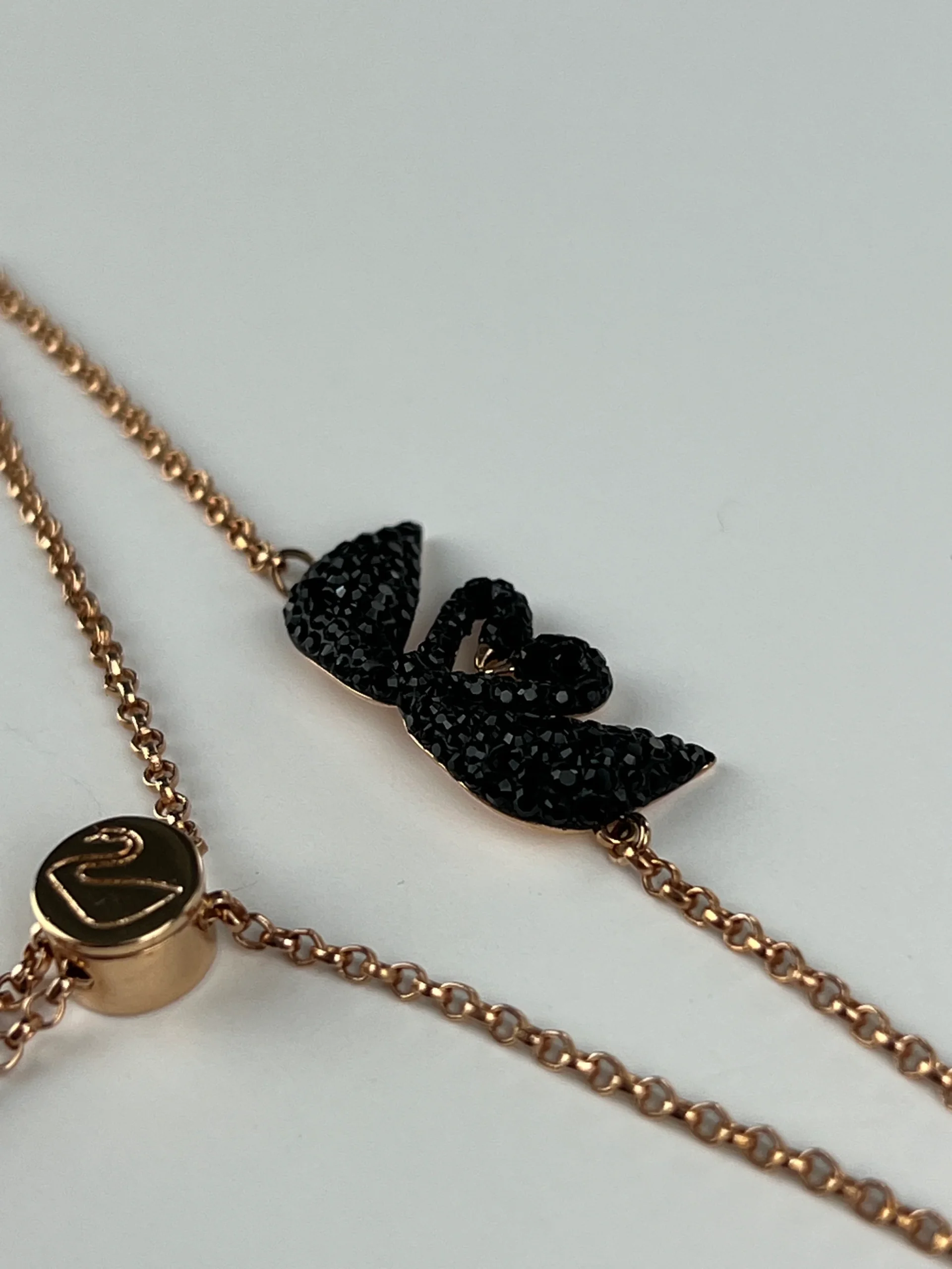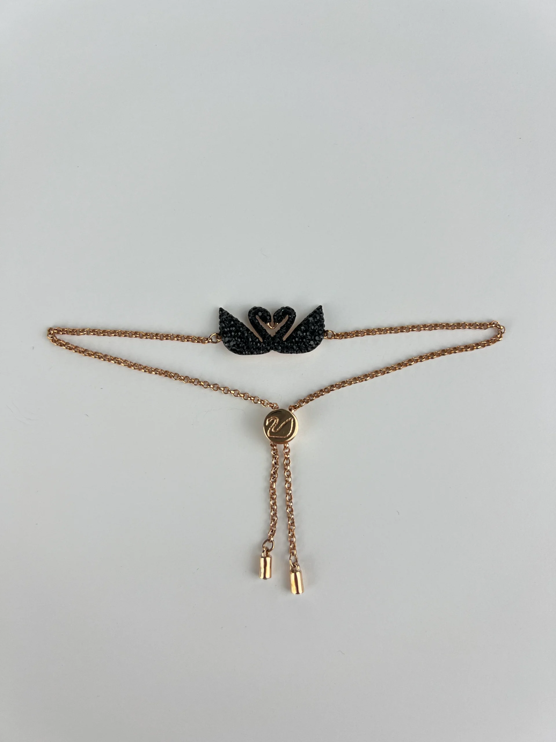 Bracelet de la marque Swarovski. Revisitez notre motif iconic double swan avec ce merveilleux bracelet. Il est rehaussé d’un fermoir coulissant innovant pour une tenue ajustée à votre poignet. Matériaux: Cristal Swarovski / Placage de ton Or Rose
