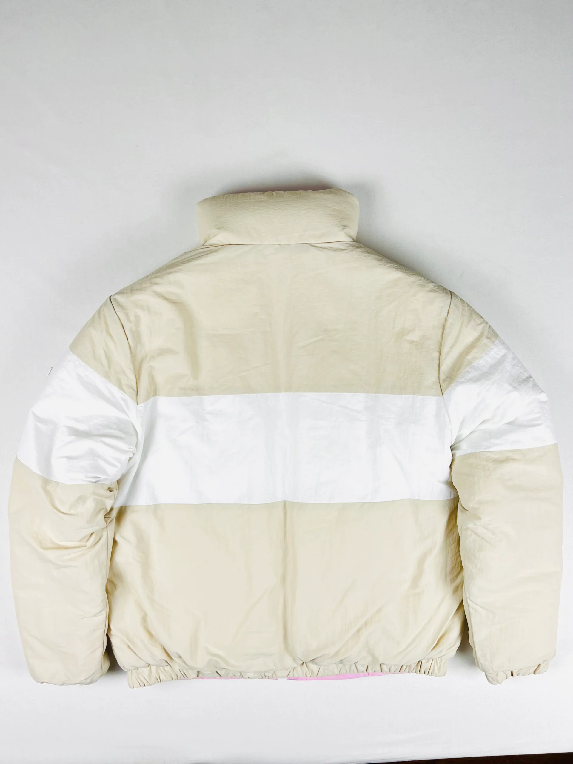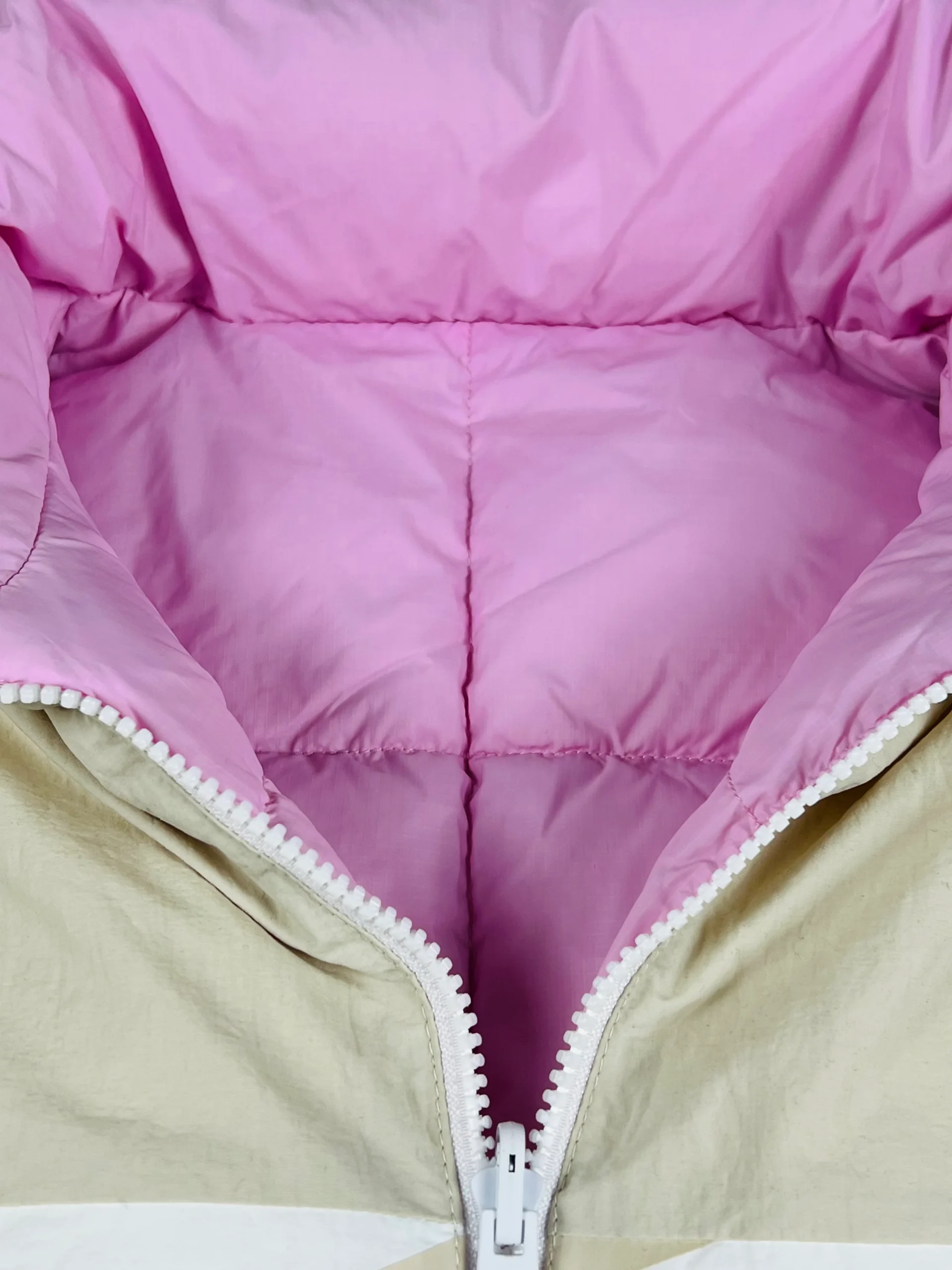 Un manteau réversible, offrant un côté beige ou rose selon vos préférences, dans le modèle emblématique puffer de la marque.