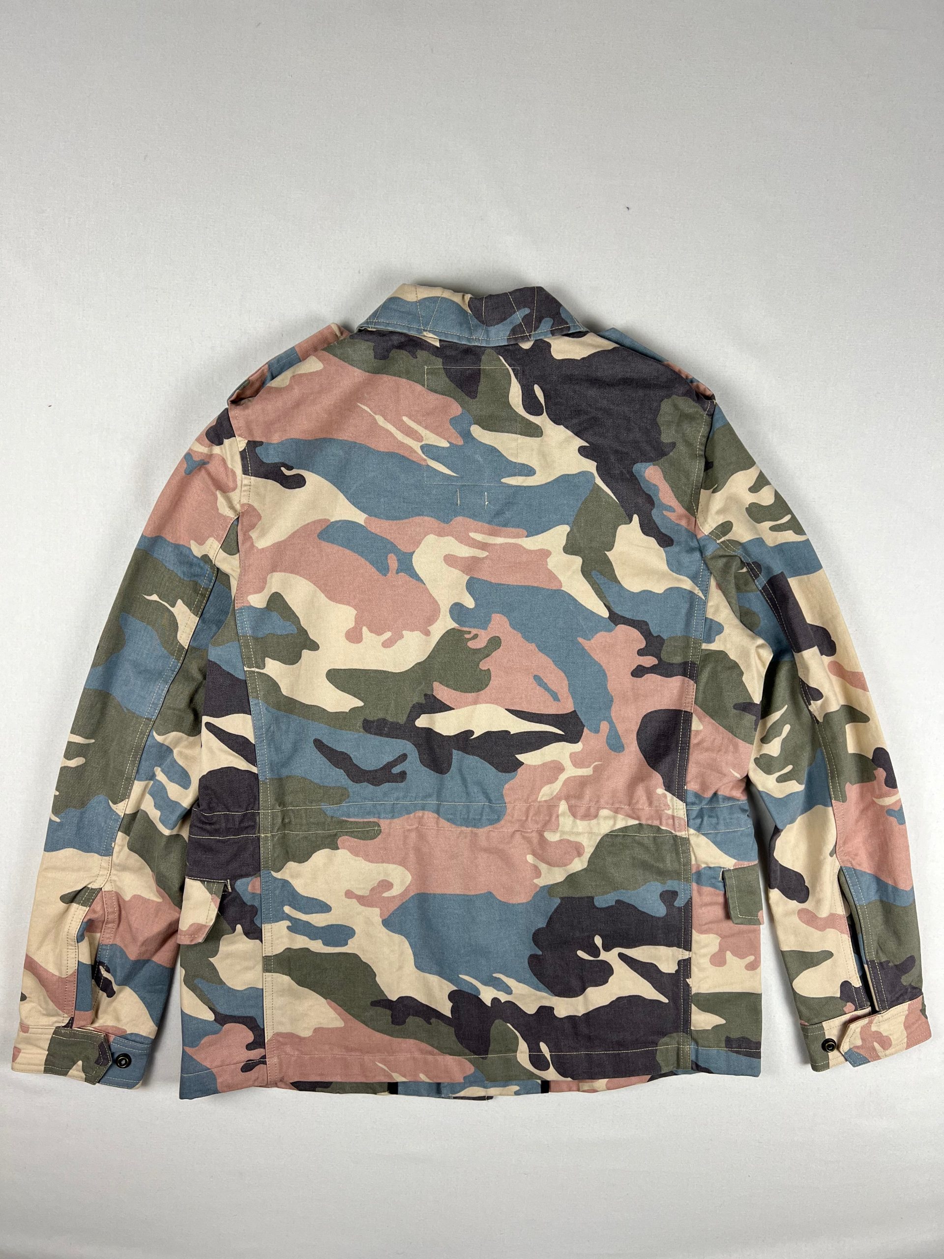 Cette veste présente un motif camouflage qui lui confère un look audacieux et tendance. Sa coupe est ajustée, et elle est dotée d’une fermeture éclair avec un rabat à bouton-pression, offrant à la fois praticité et esthétique.
